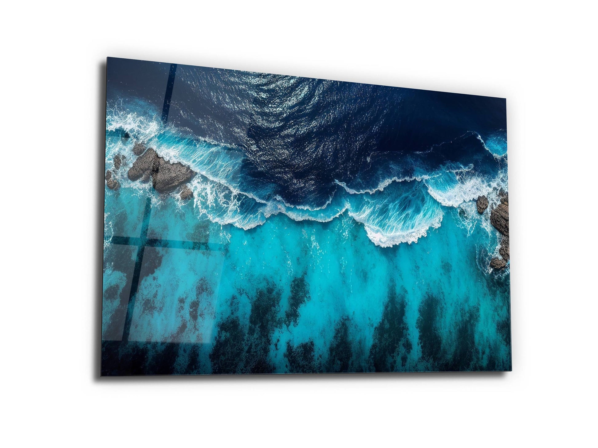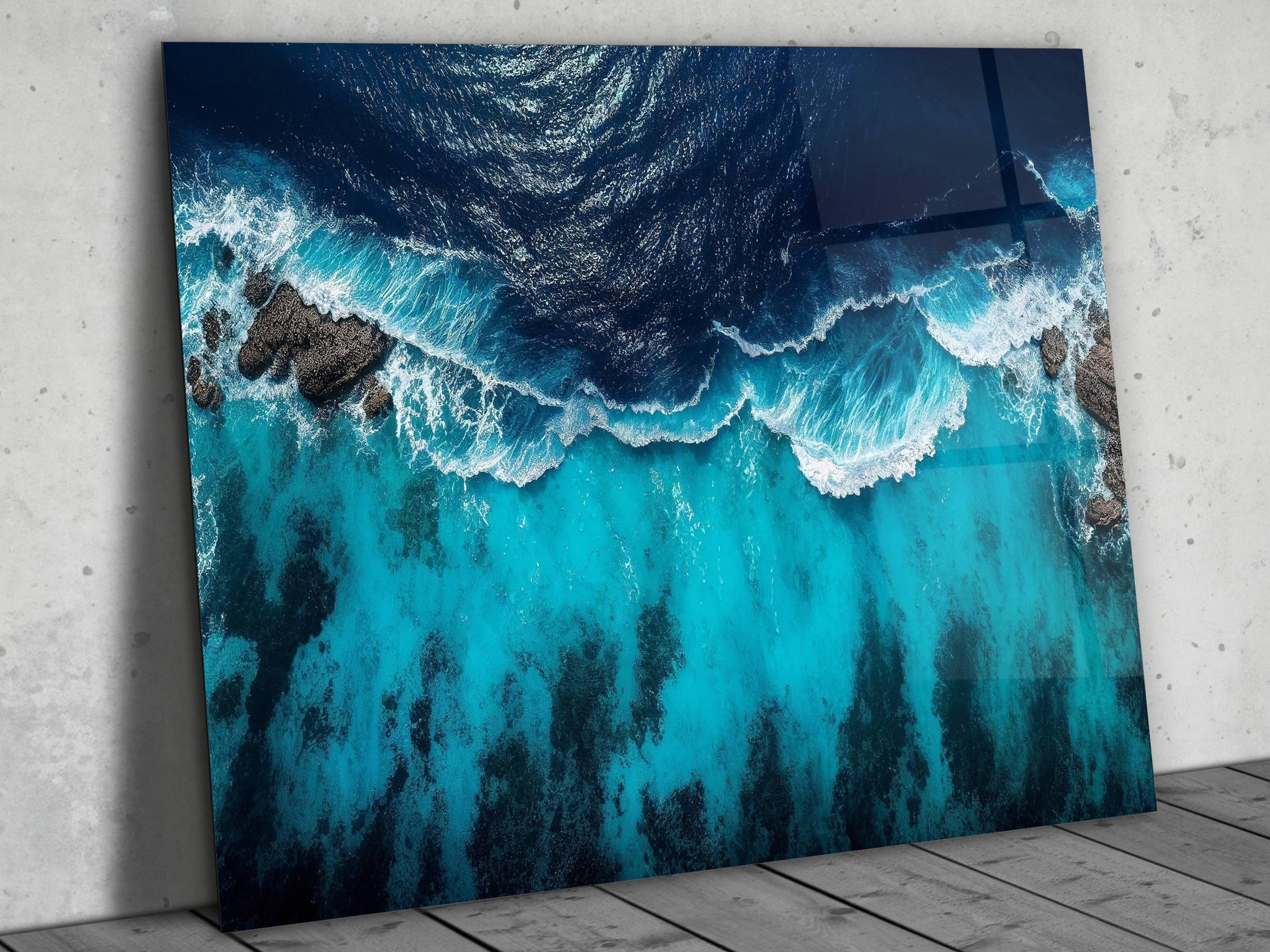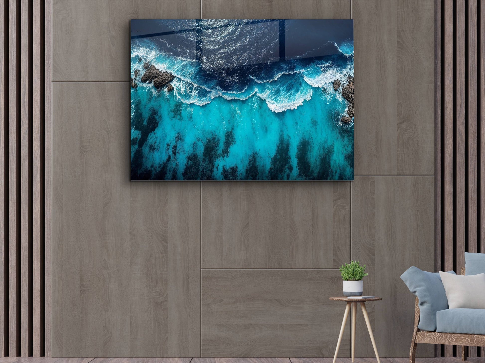 Okyanus Dalgaları Cam Tablo – Mavi Dekoratif Ev ve Ofis Tablosu