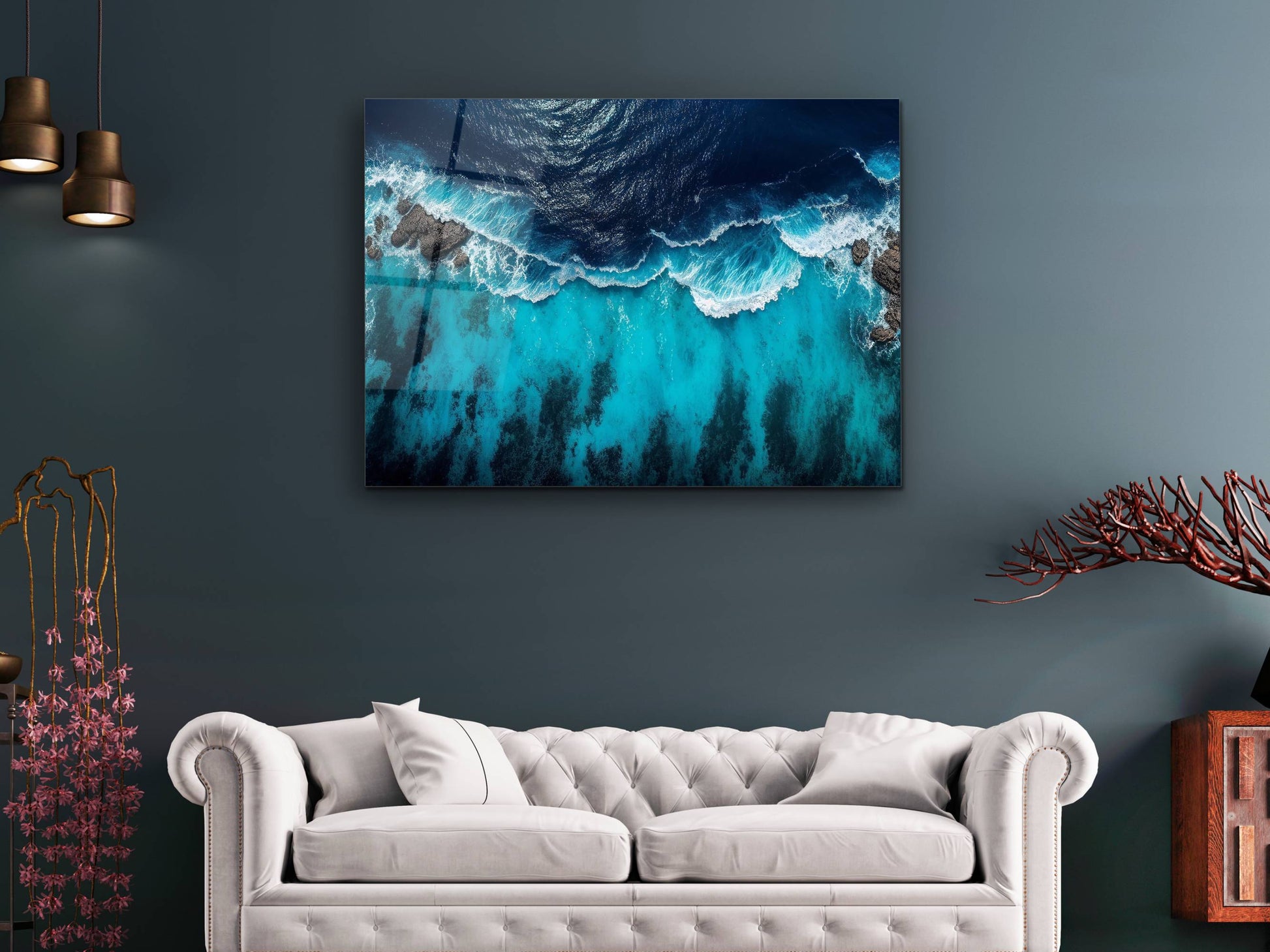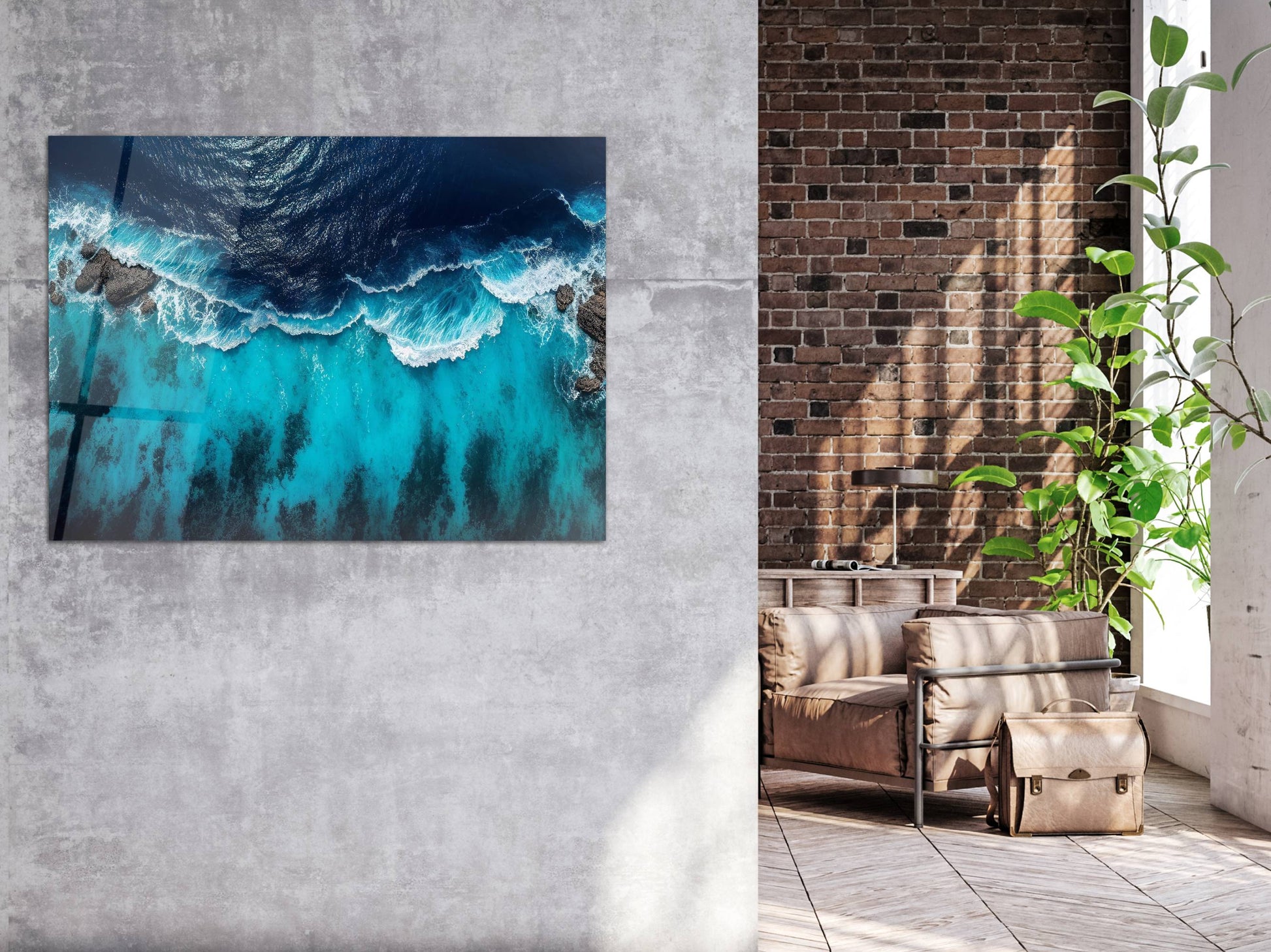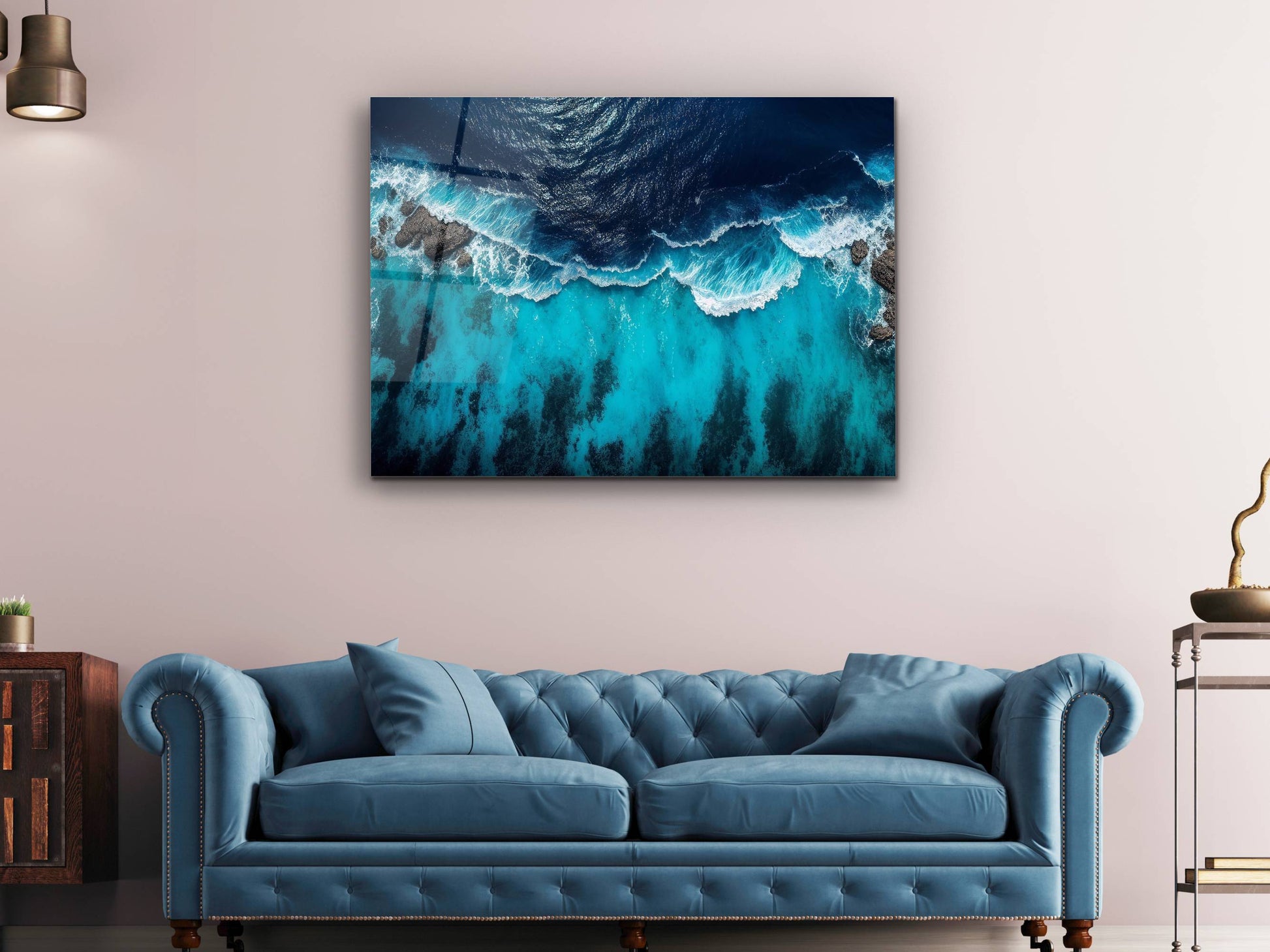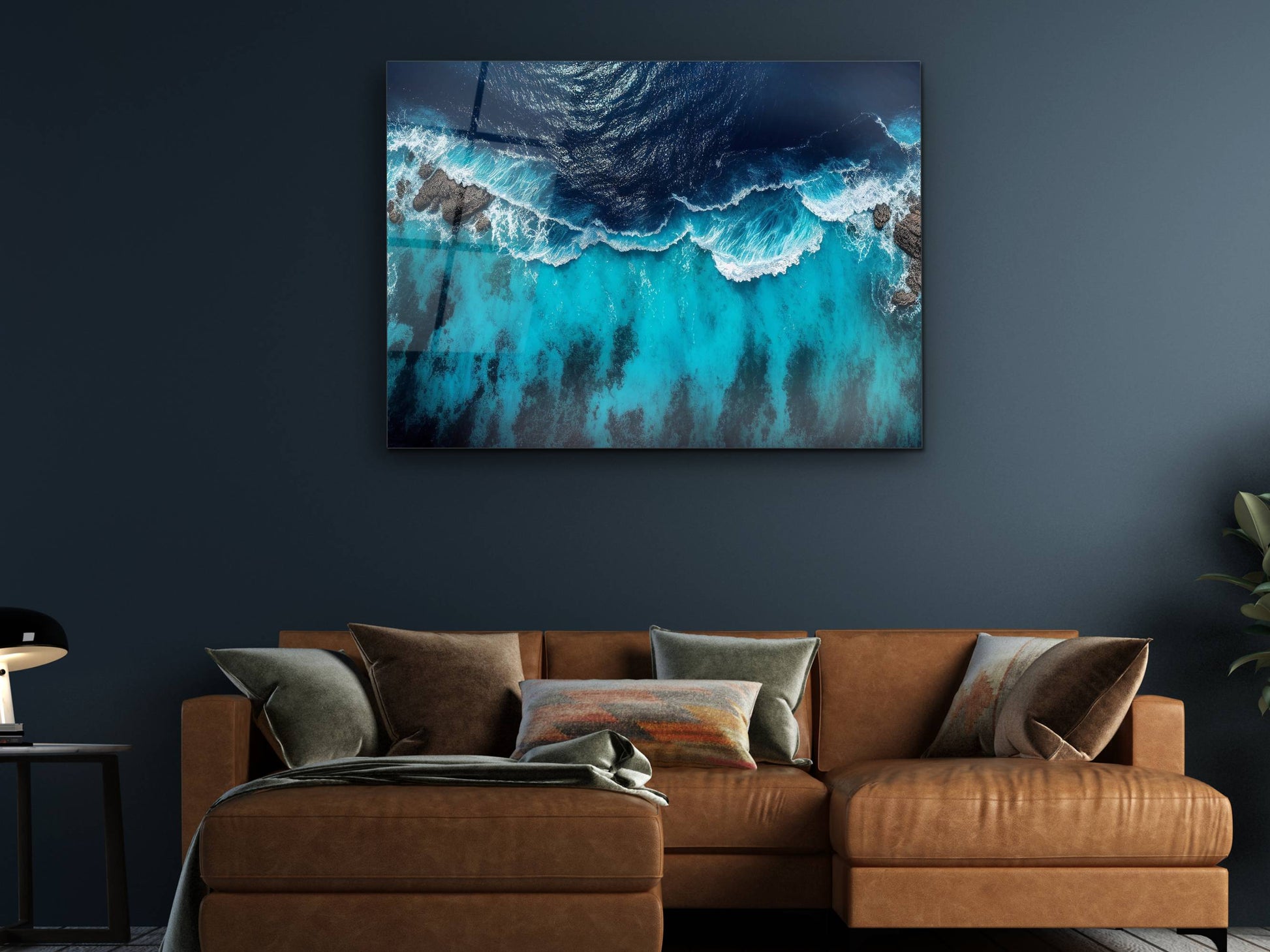 Okyanus Dalgaları Cam Tablo – Mavi Dekoratif Ev ve Ofis Tablosu
