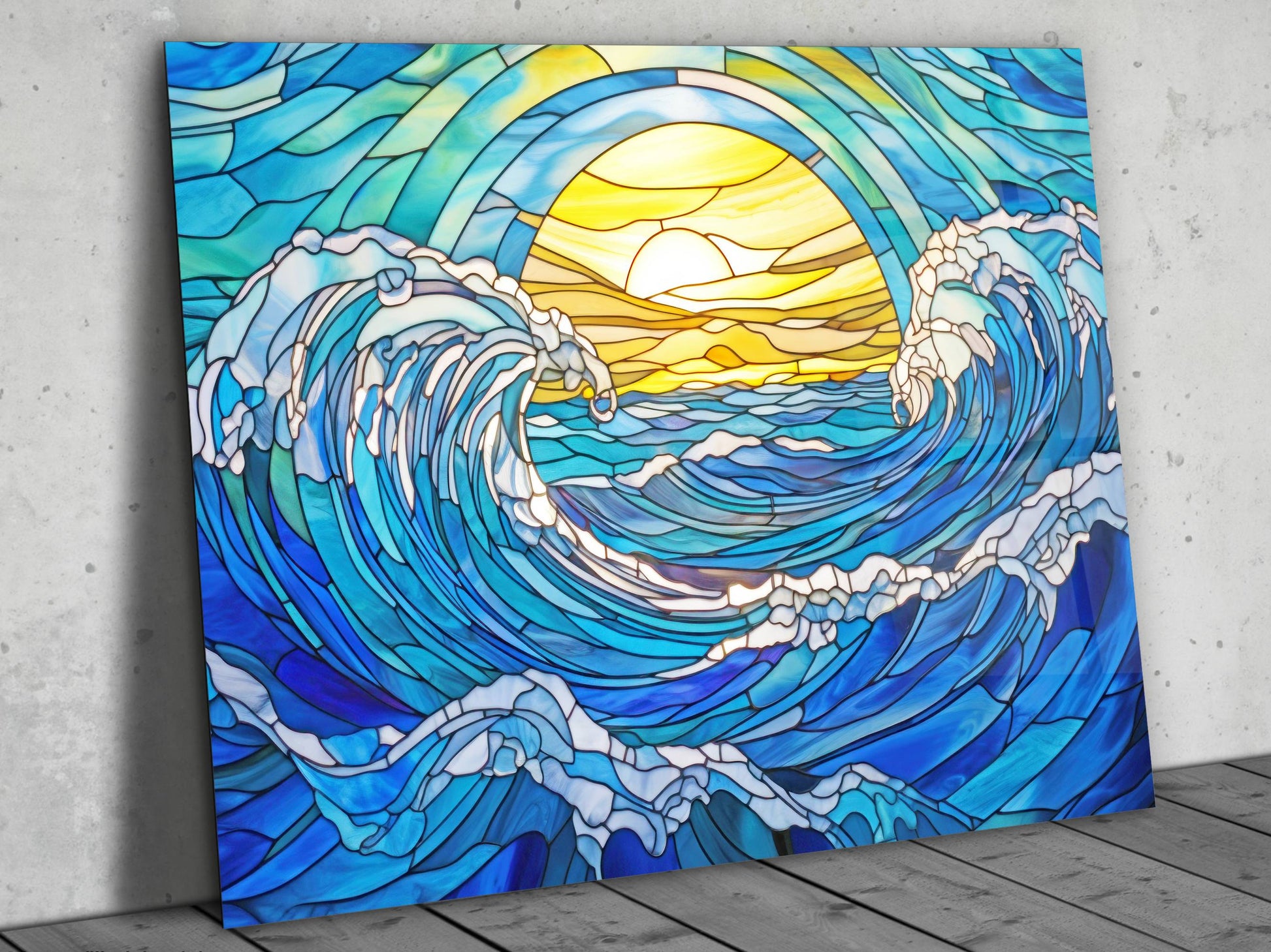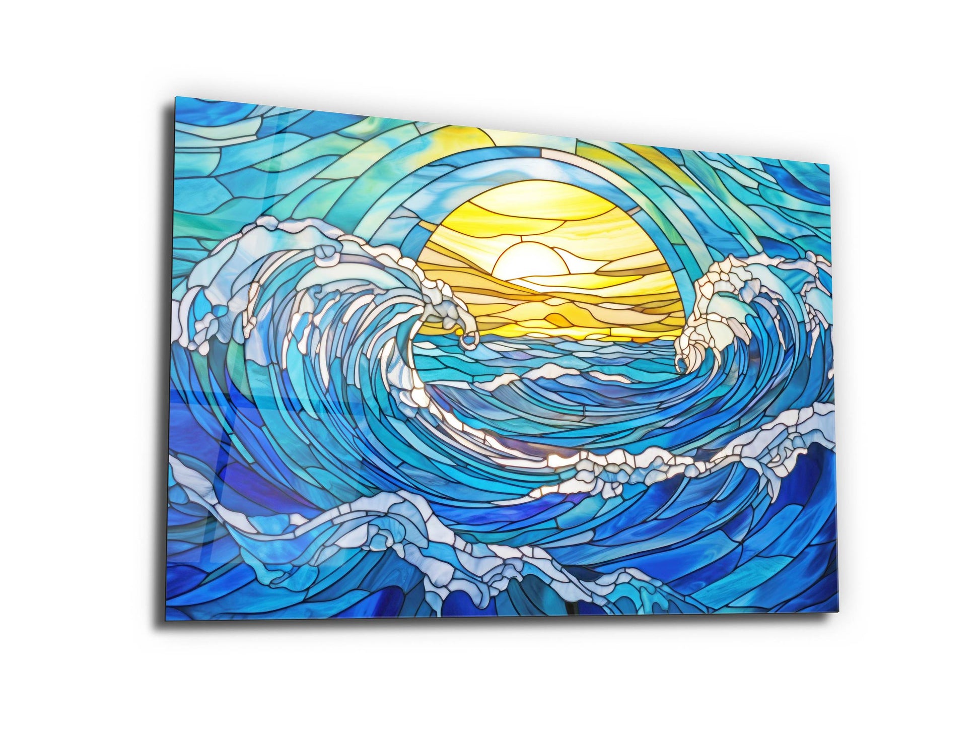 Okyanus Vitray Cam Tablo - Gün Batımı Duvar Dekoru