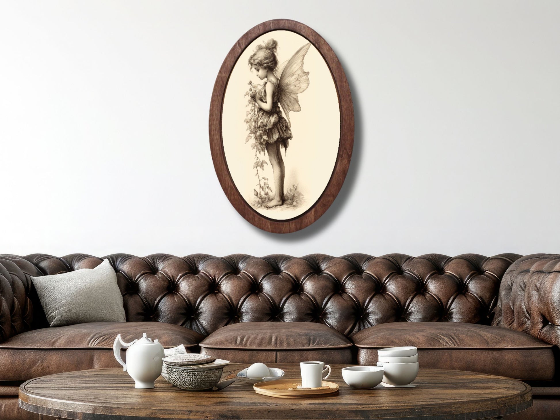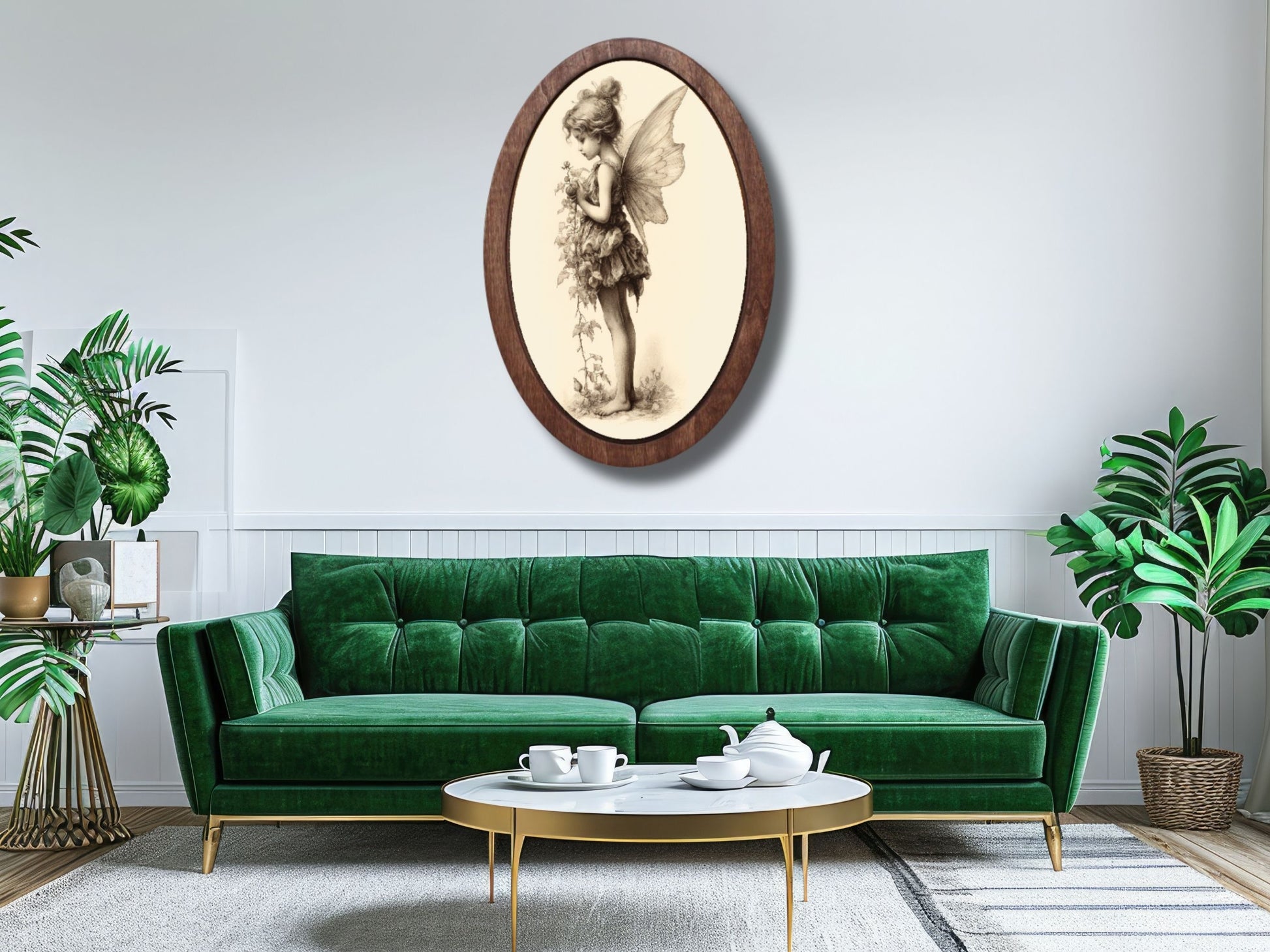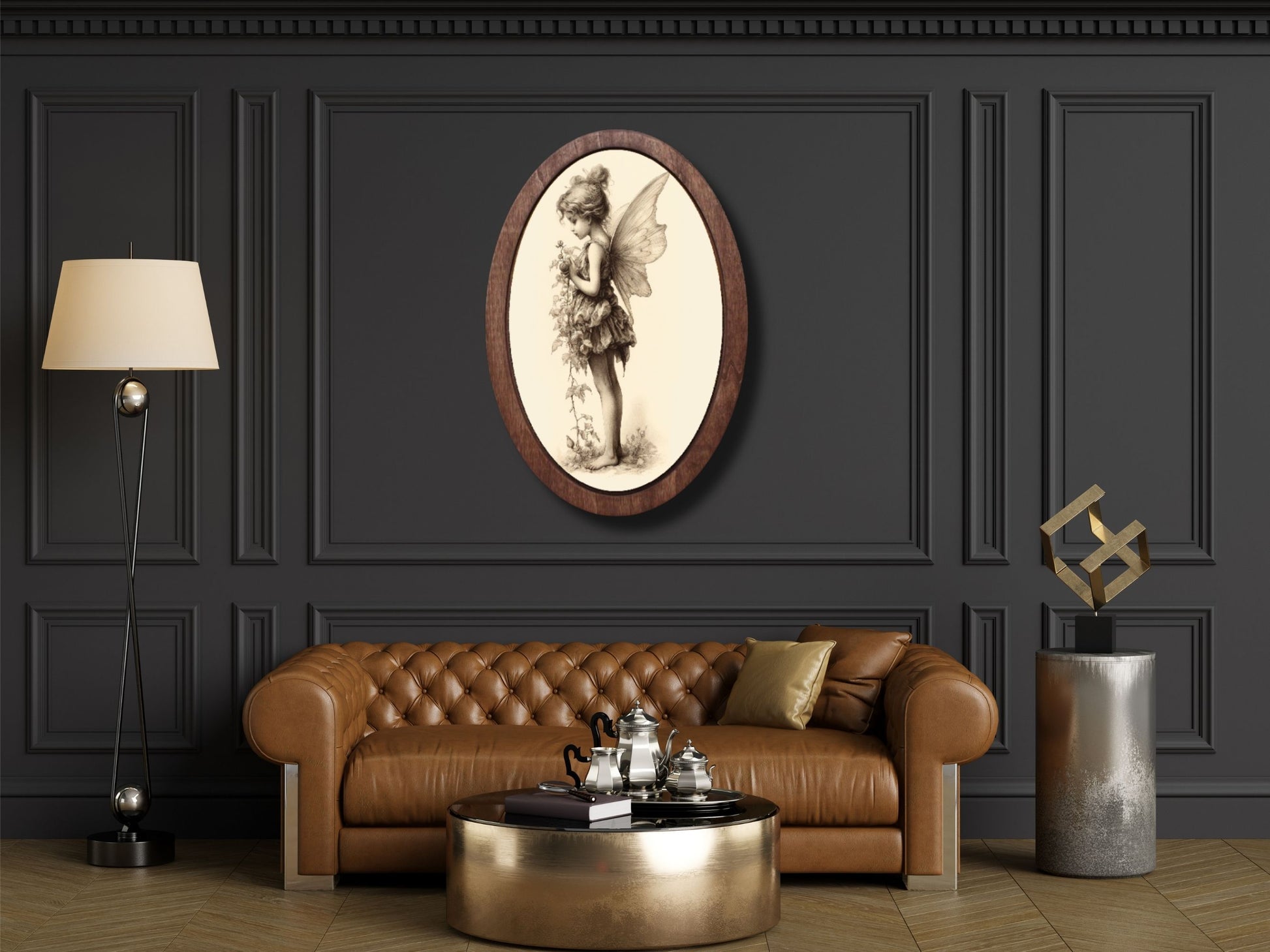 Peri Kız Figürlü Ahşap Tablo – Masalsı & Fantastik Stil Oval Duvar Dekoru