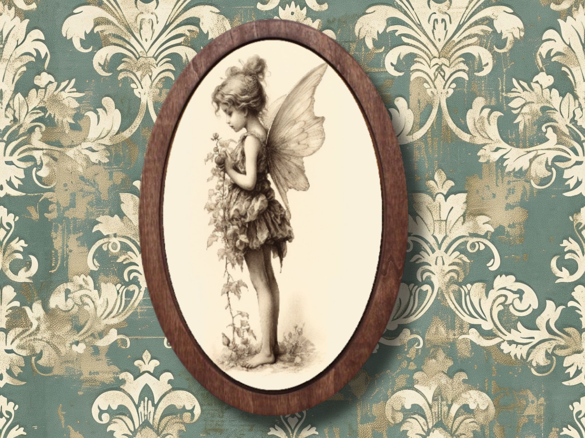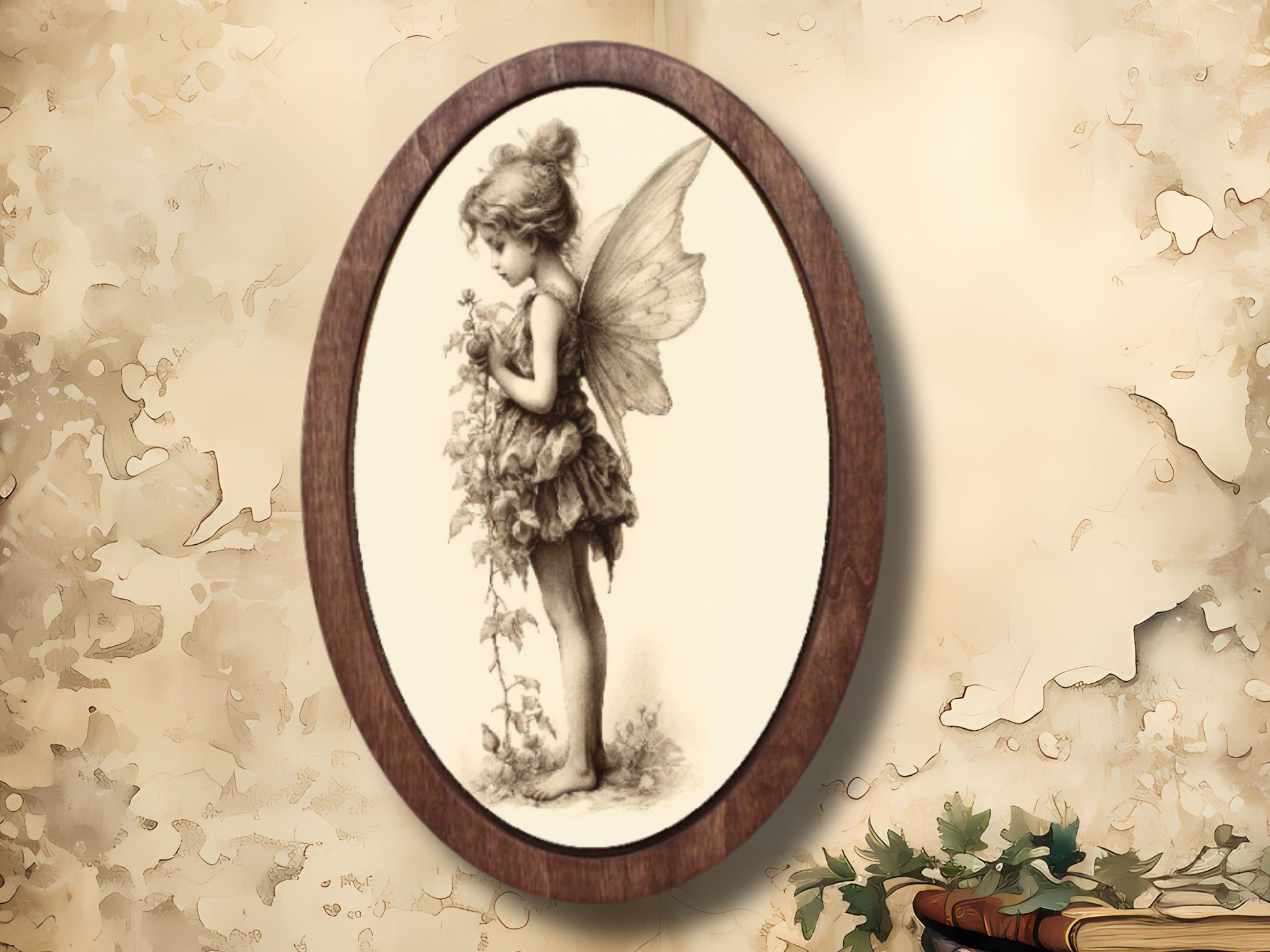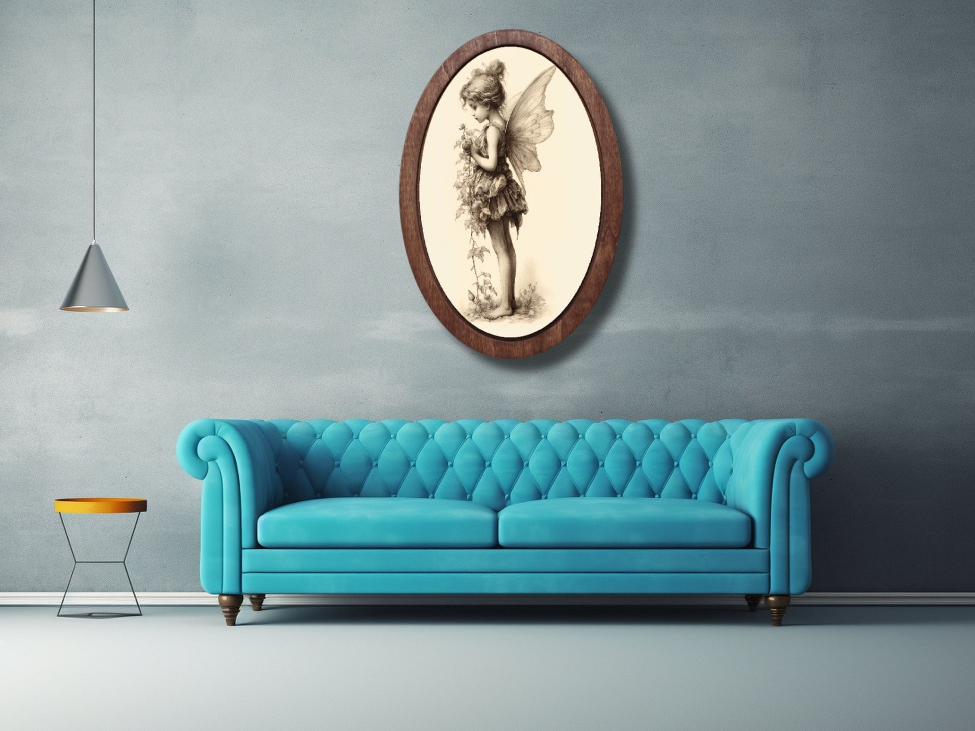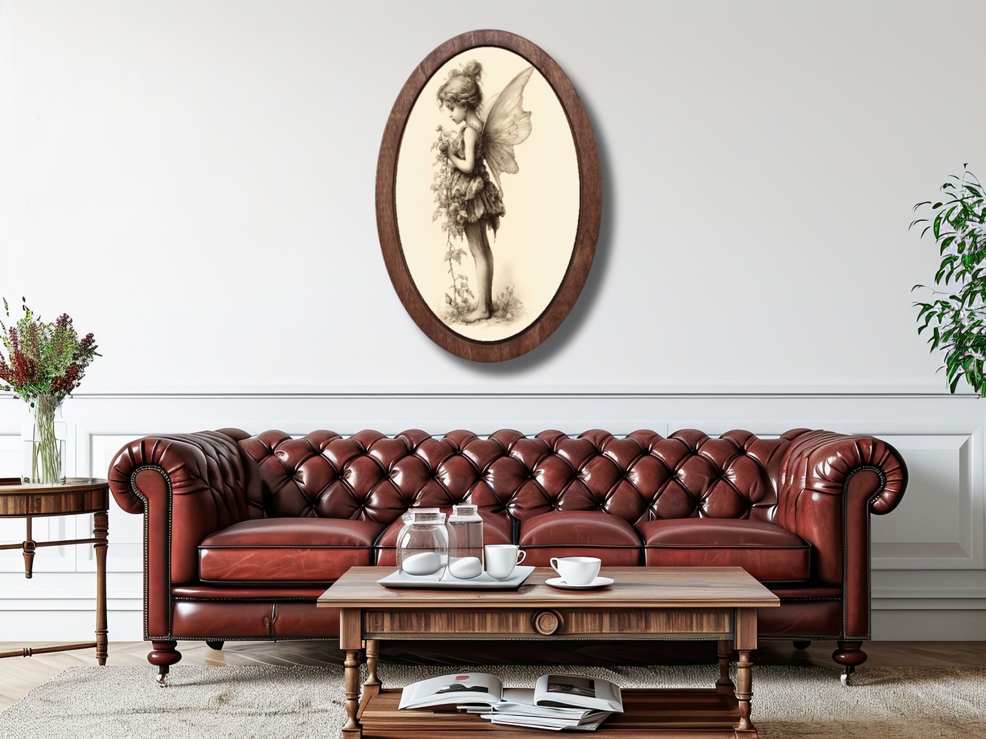 Peri Kız Figürlü Ahşap Tablo – Masalsı & Fantastik Stil Oval Duvar Dekoru