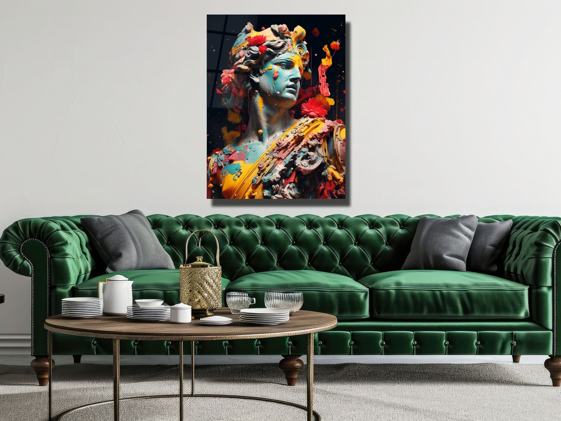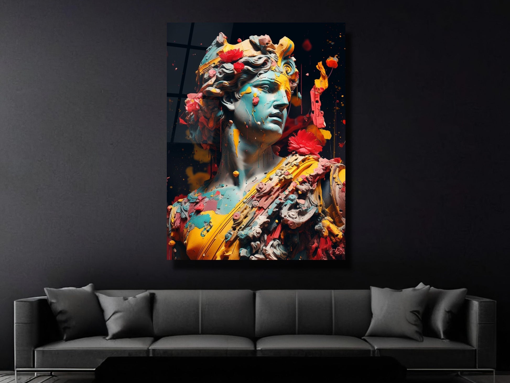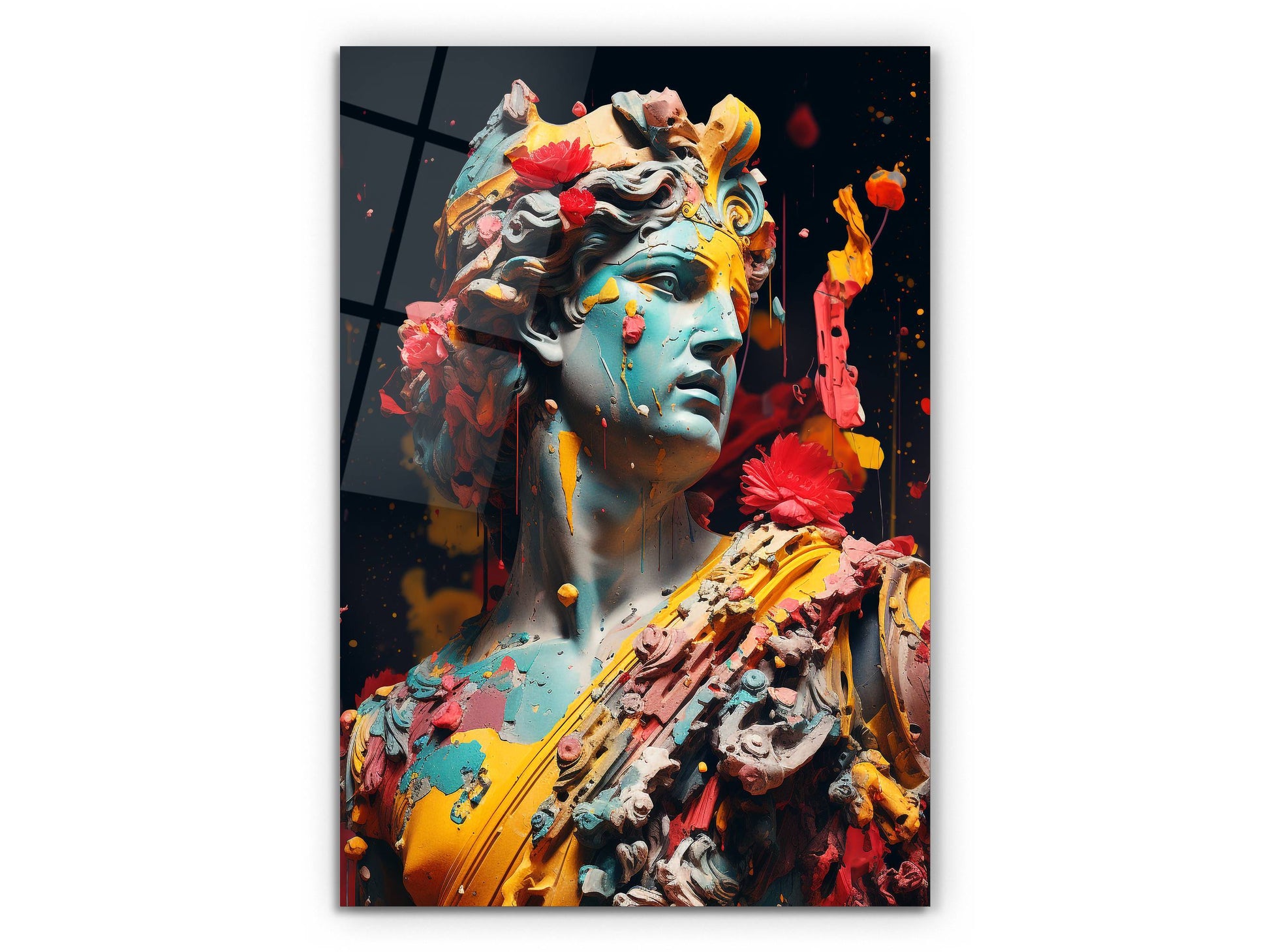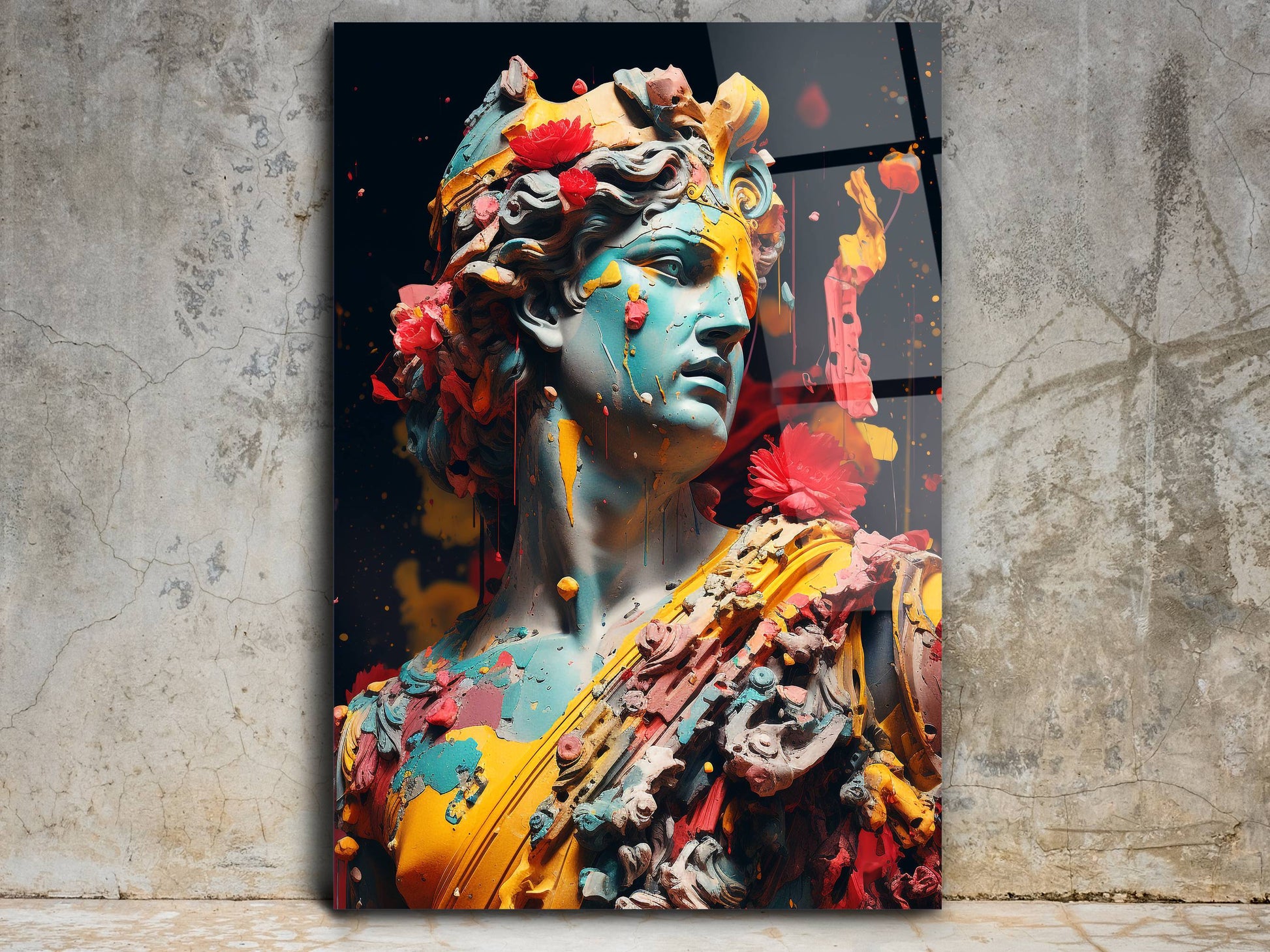 Renkli Antik Heykel Cam Tablo - Dekoratif Tablo - Modern Ev ve Ofis Dekoru