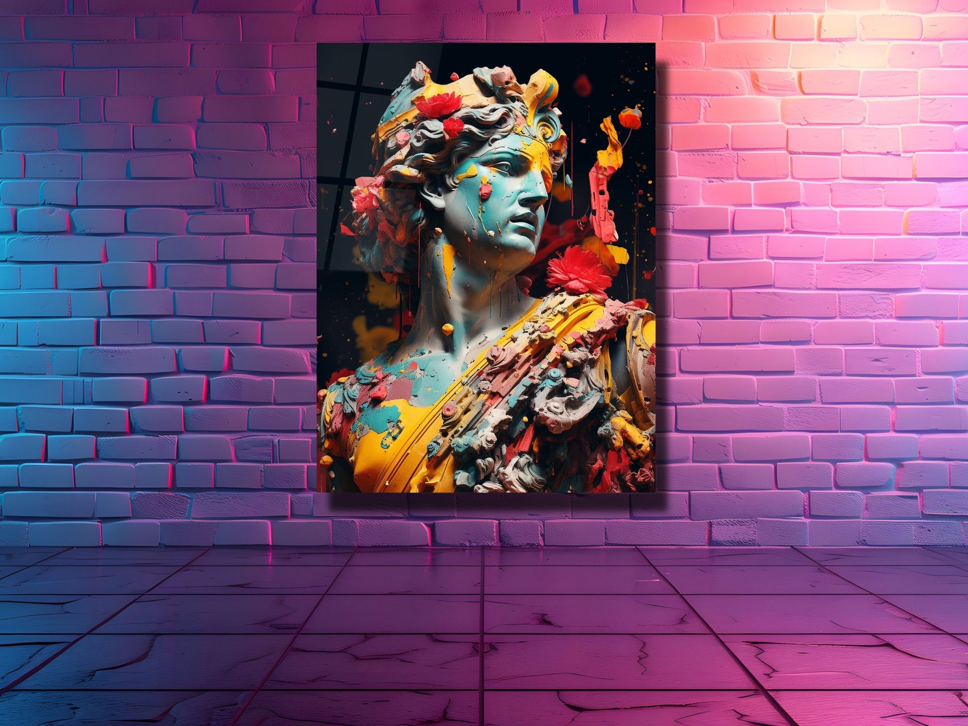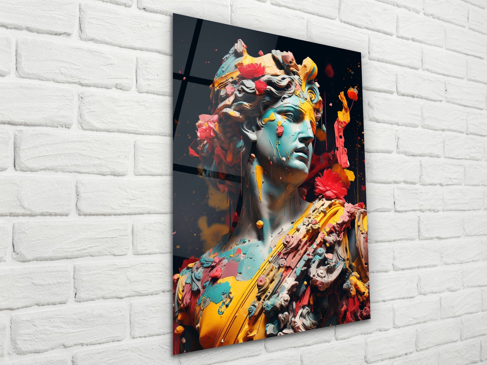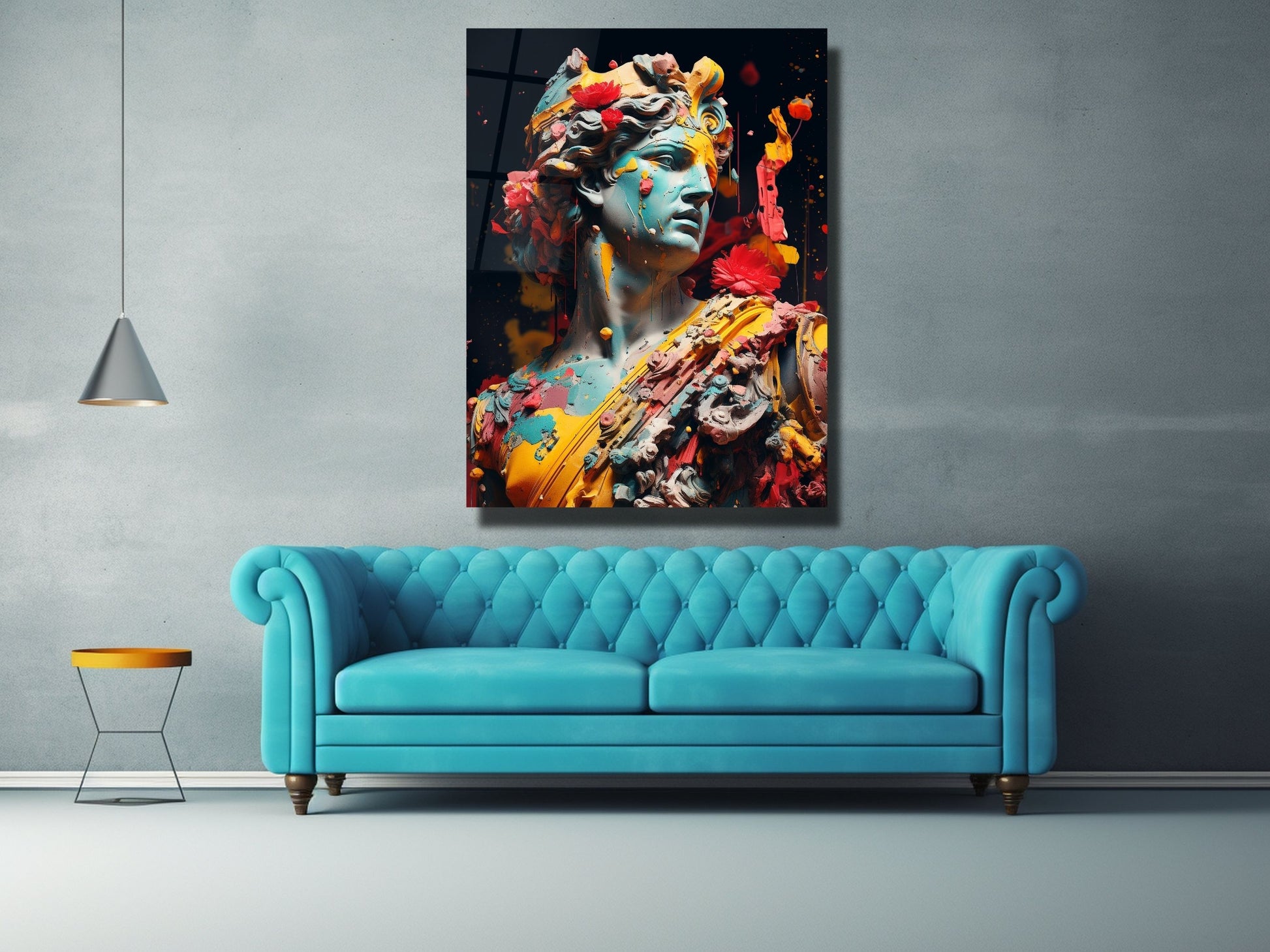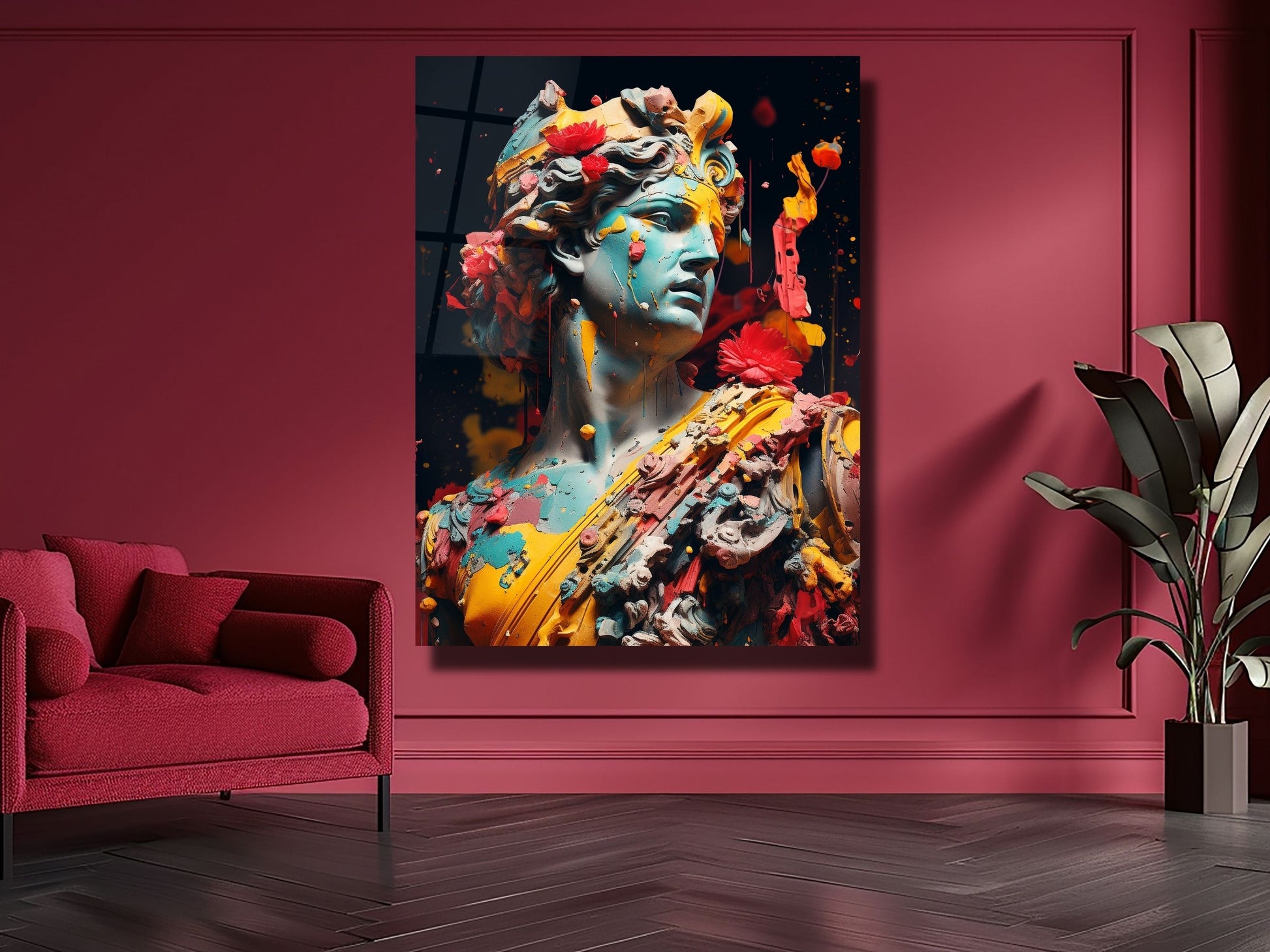 Renkli Antik Heykel Cam Tablo - Dekoratif Tablo - Modern Ev ve Ofis Dekoru