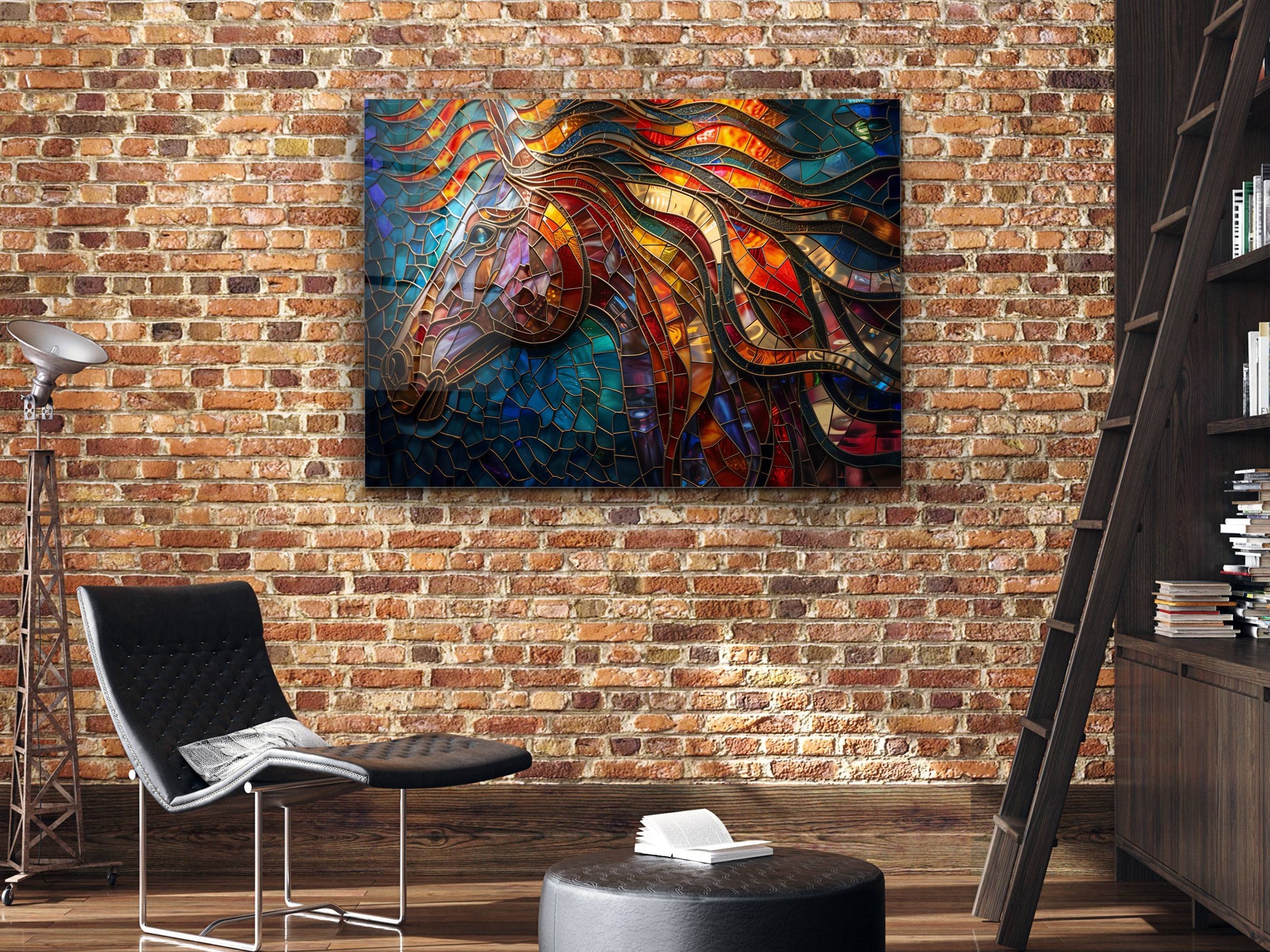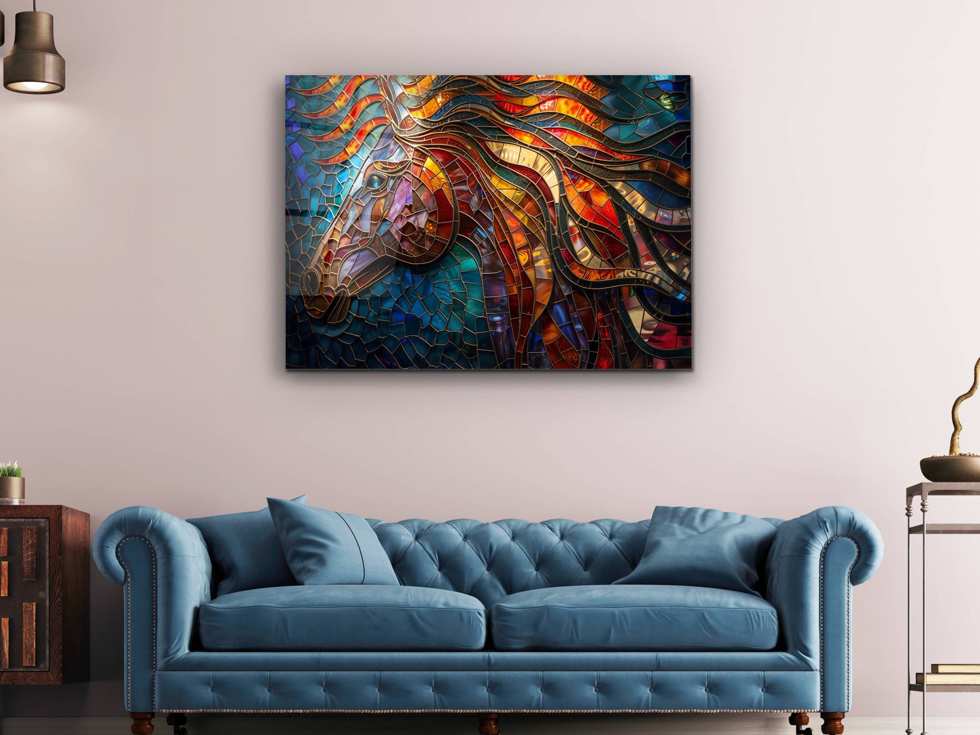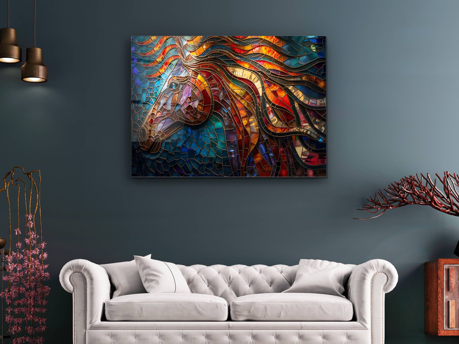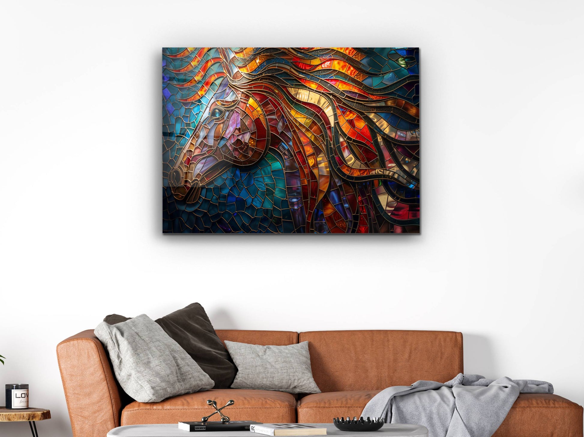 Renkli At Desen Vitray Tablo - Soyut Cam Tablo - Duvar Tablosu