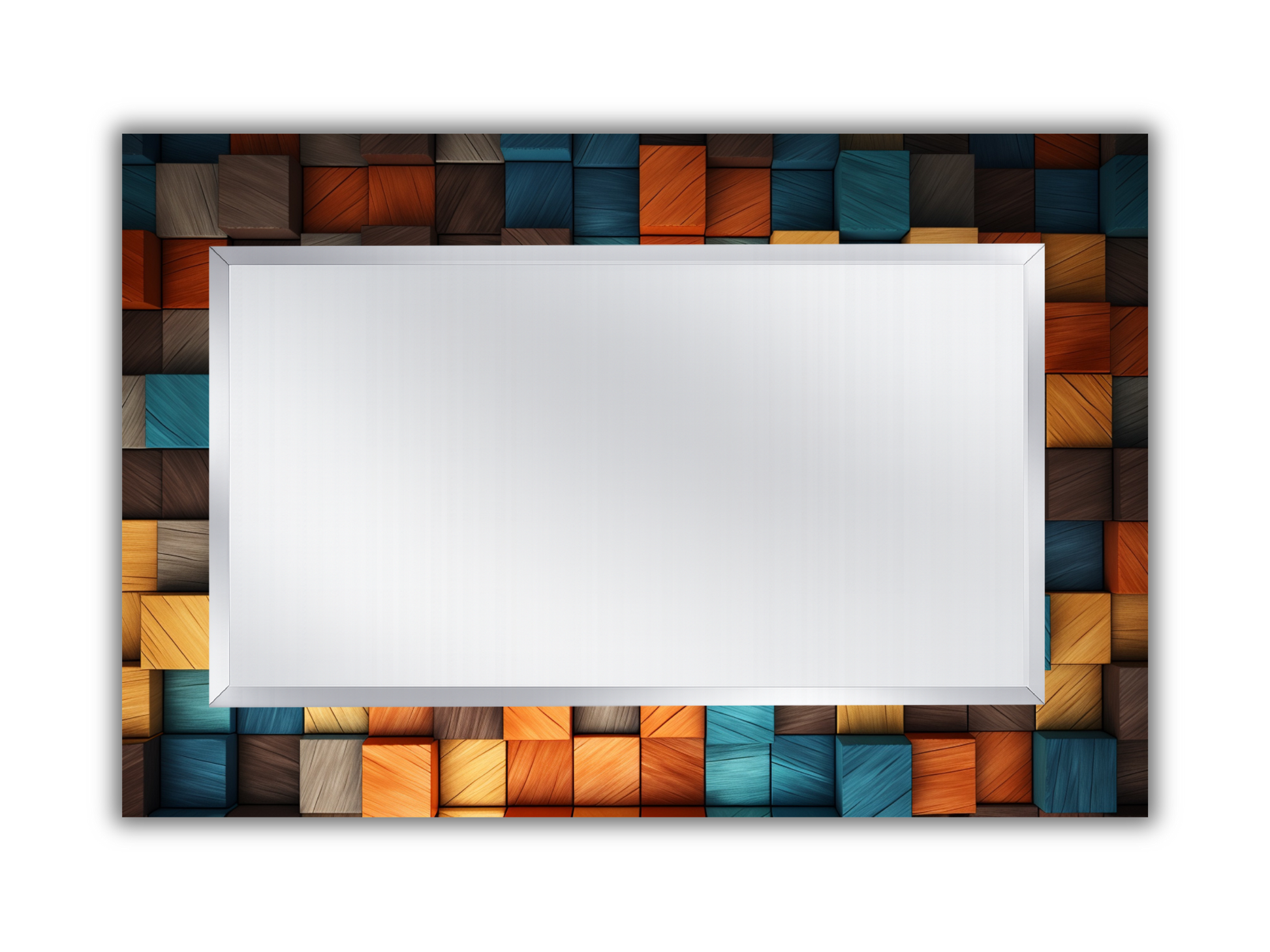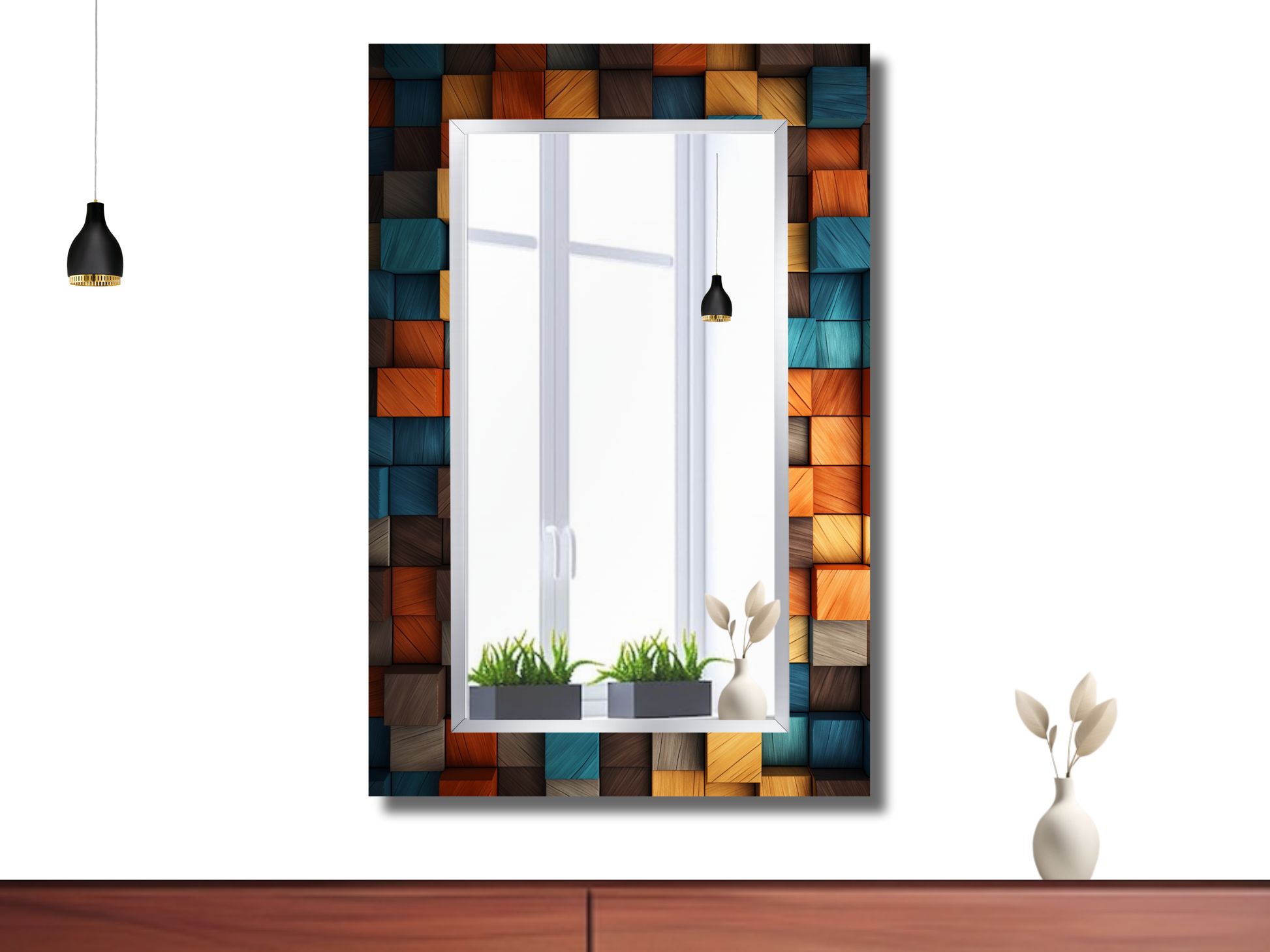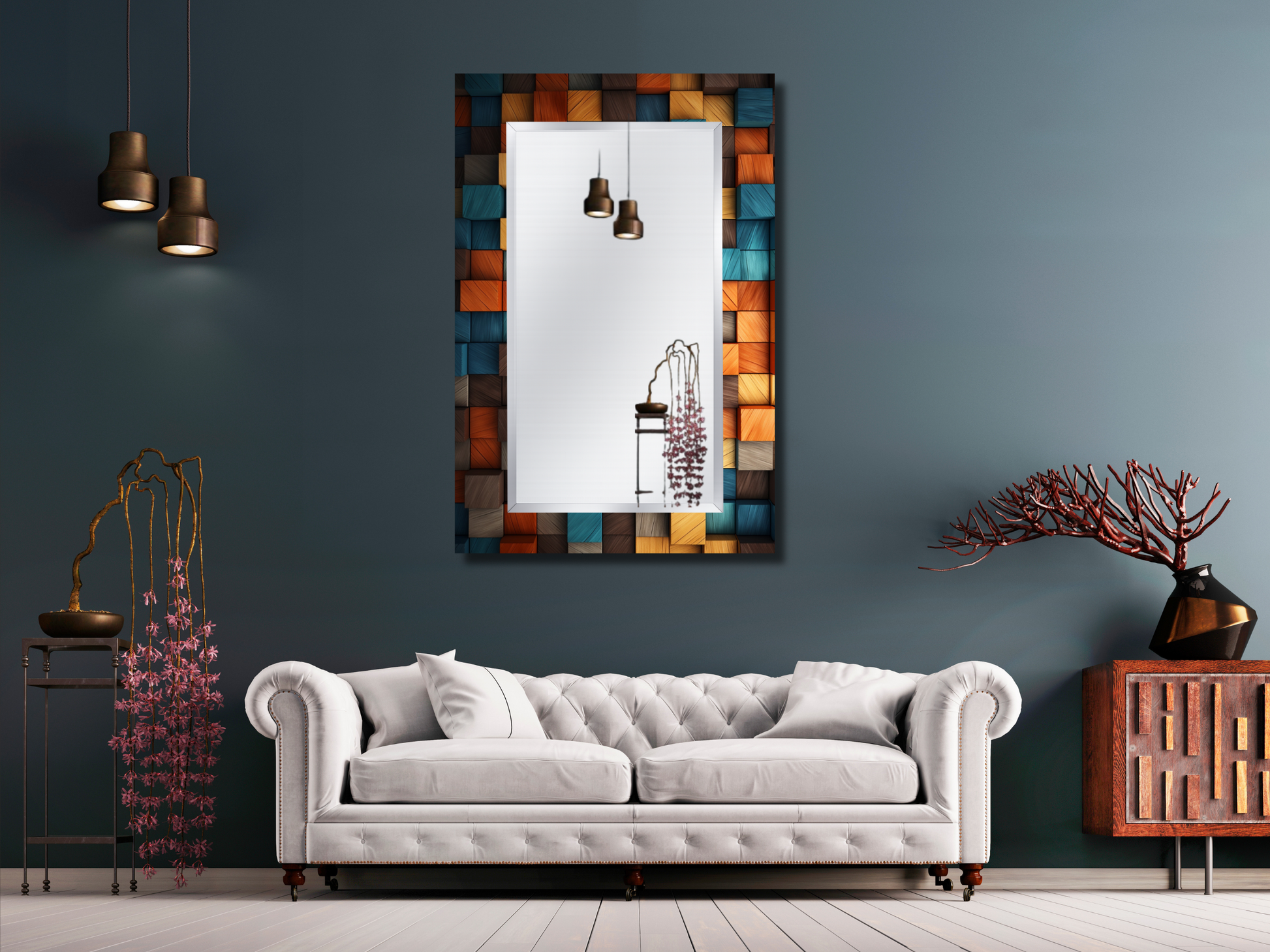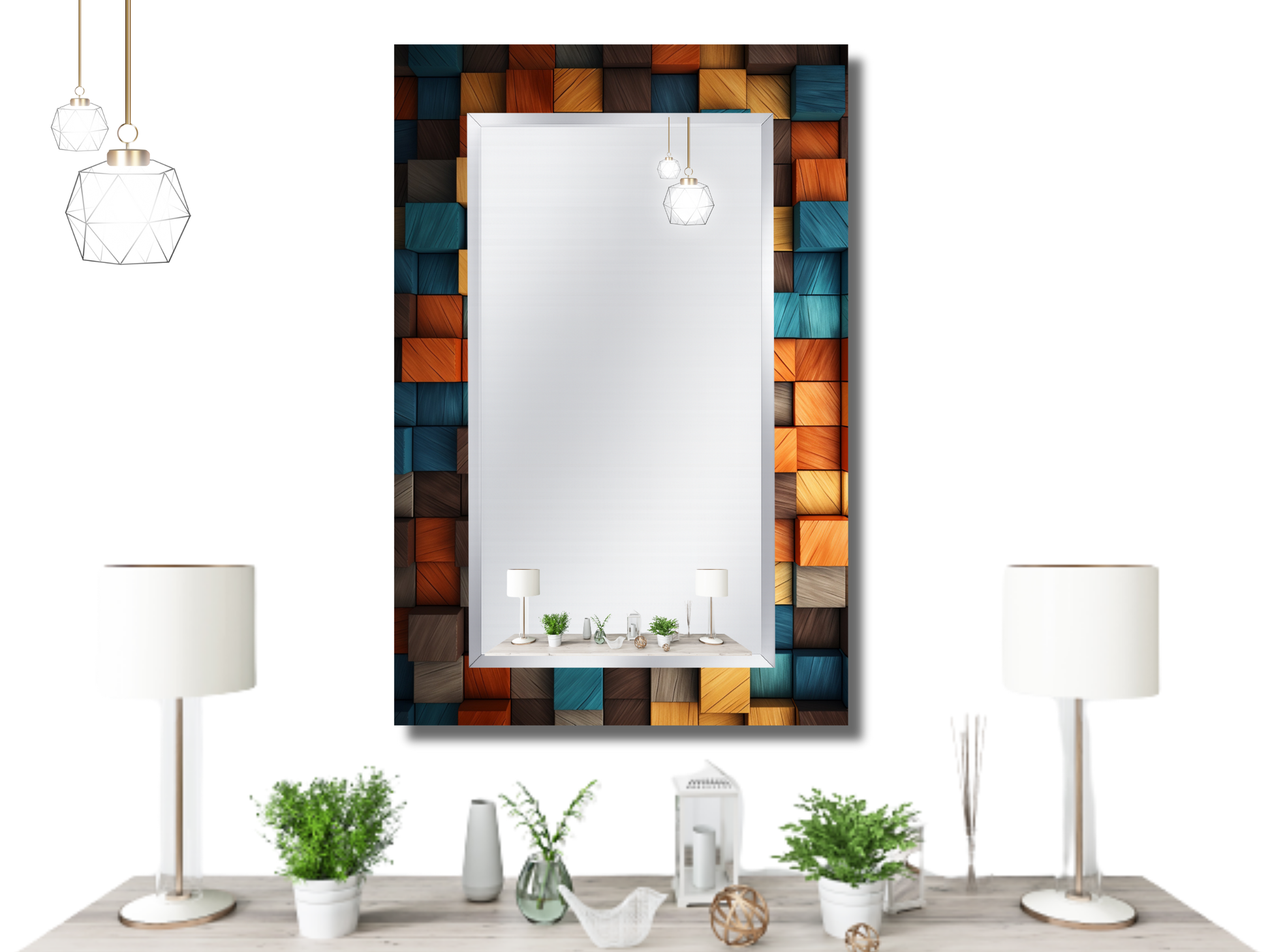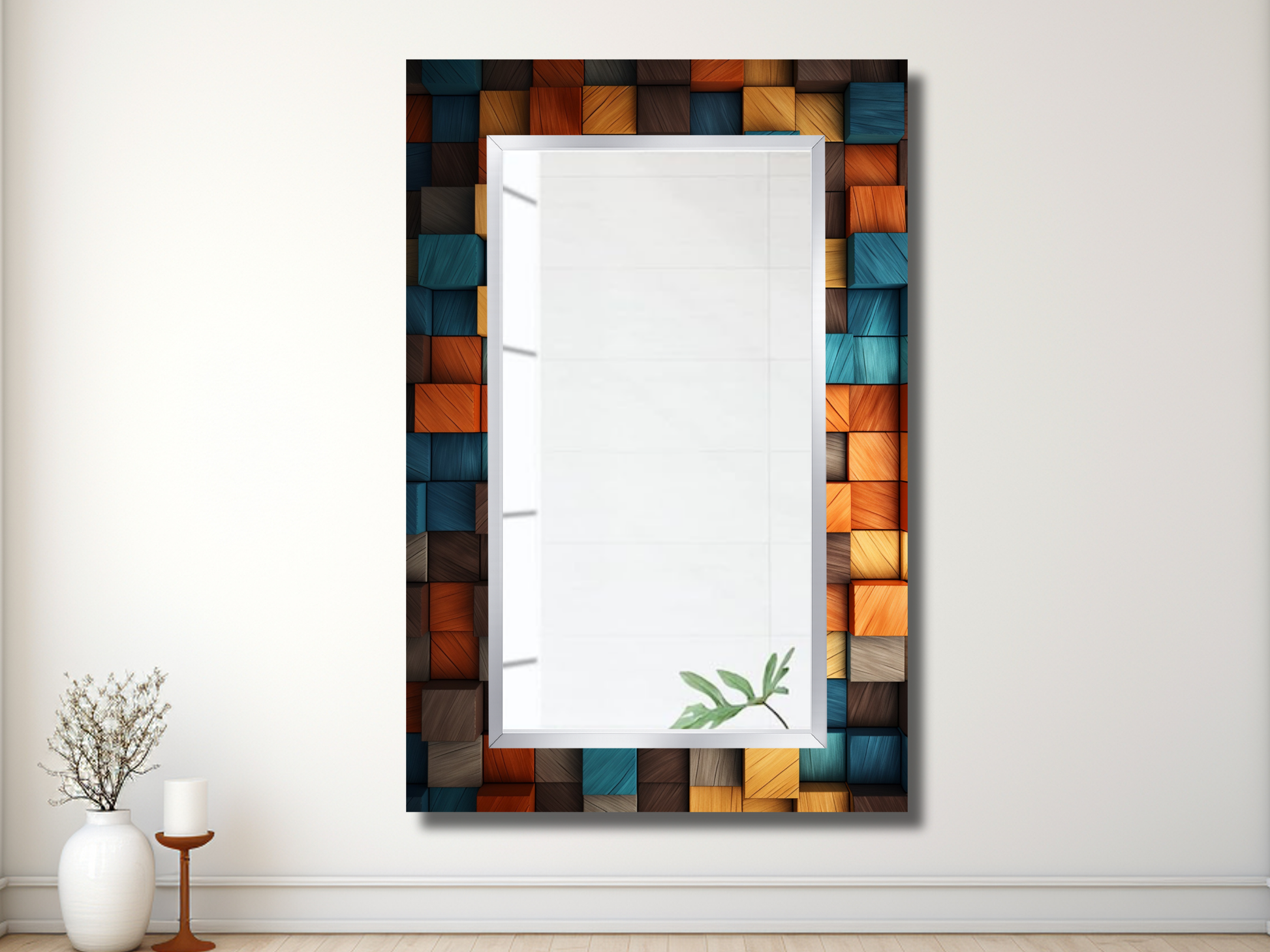 Renkli Desenli Ayna - Ahşap Görünümlü 3D Tasarım Ayna - Banyo Aynası - Antre&Hol Aynası