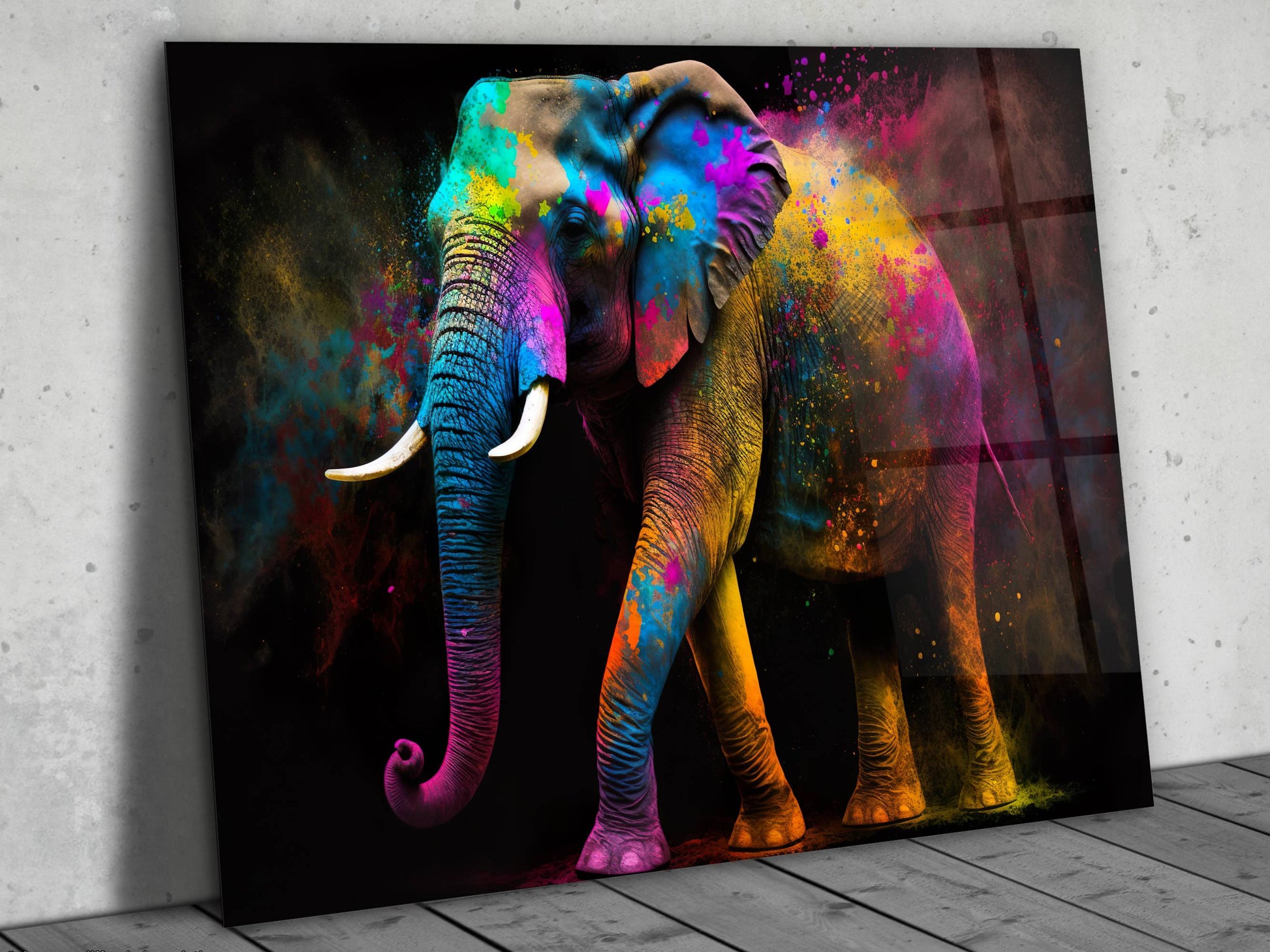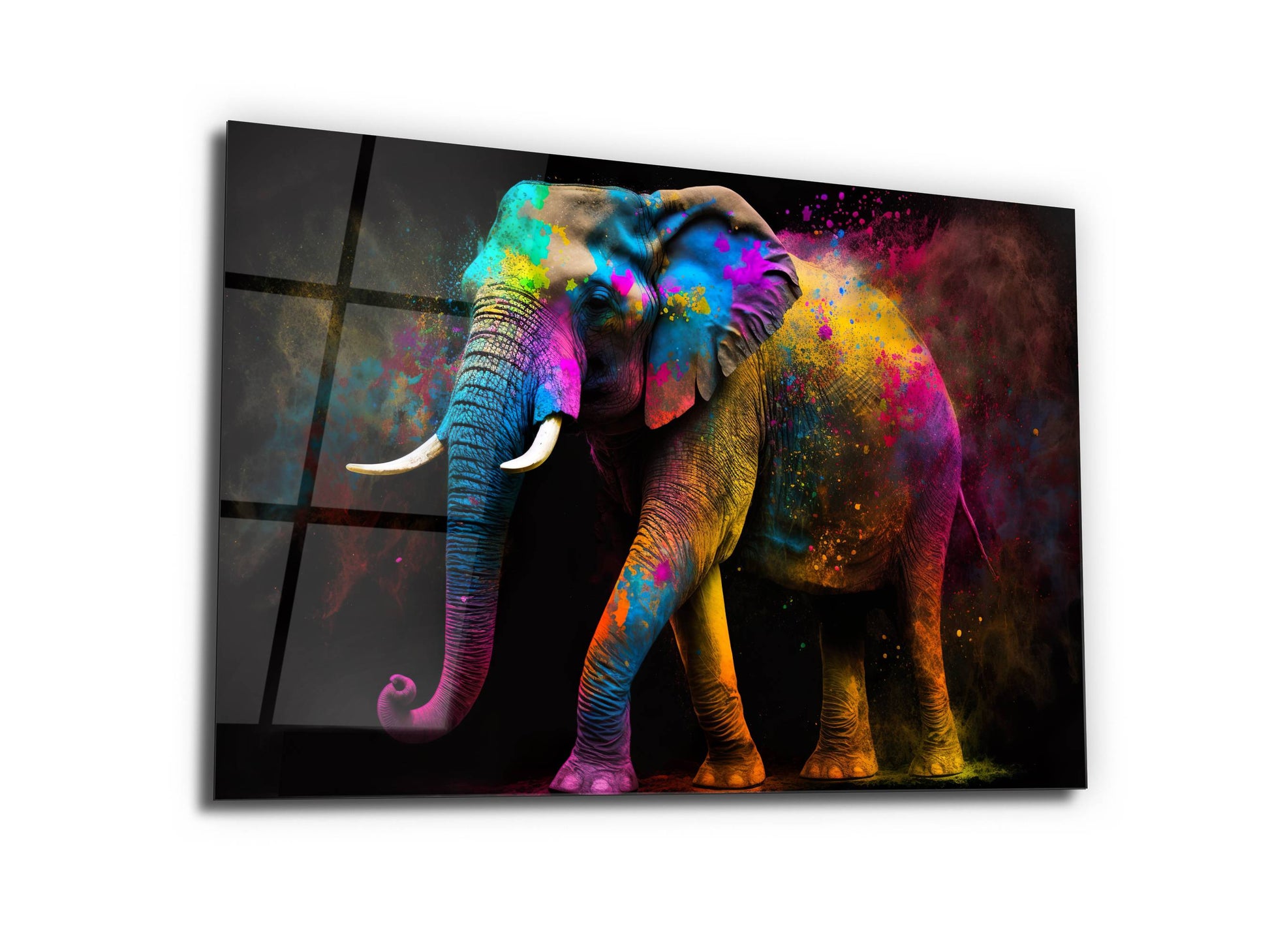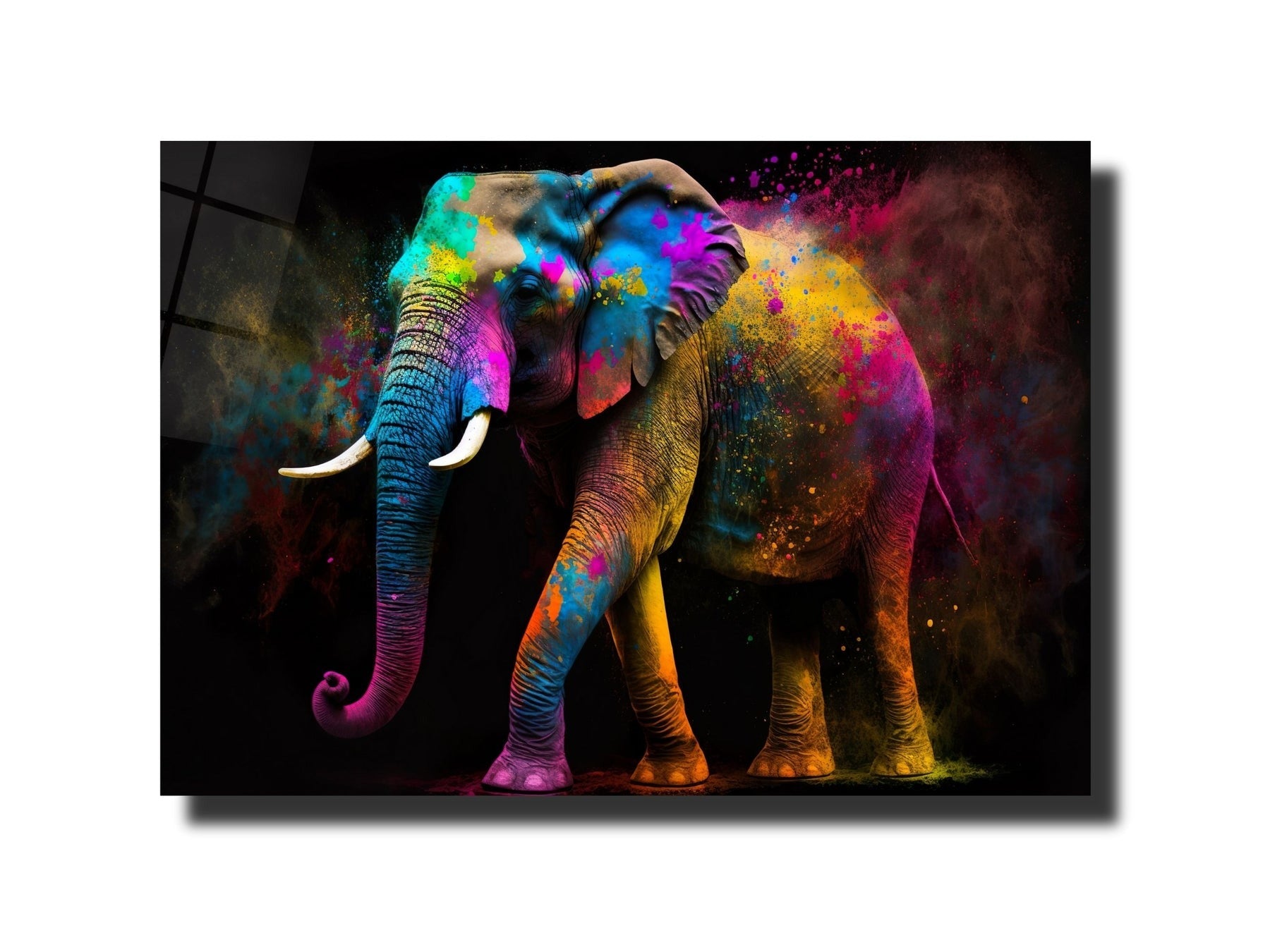 Renkli Fil Cam Duvar Tablosu – Modern Dekoratif Ev Ofis Duvar Tablosu