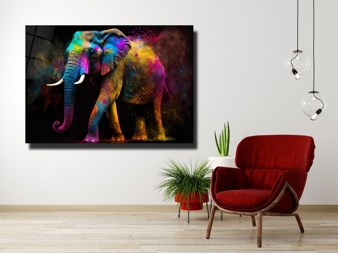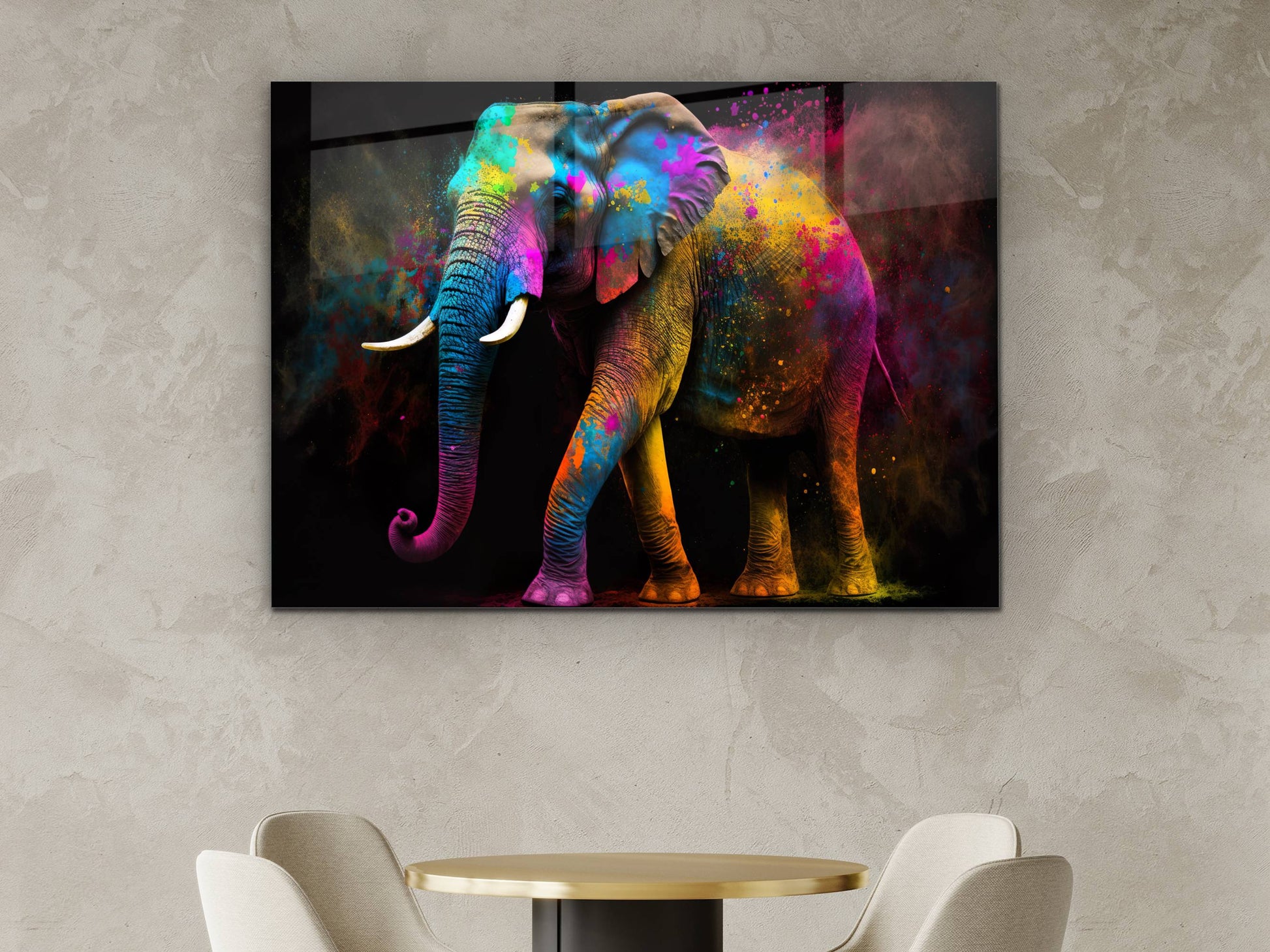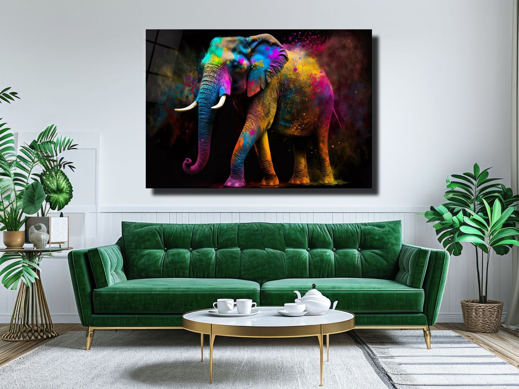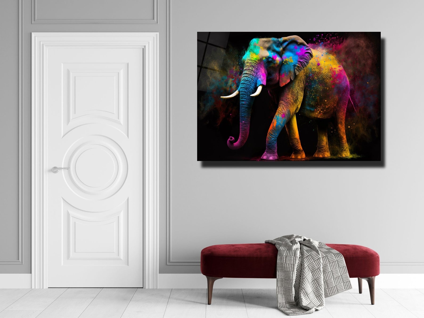 Renkli Fil Cam Duvar Tablosu – Modern Dekoratif Ev Ofis Duvar Tablosu