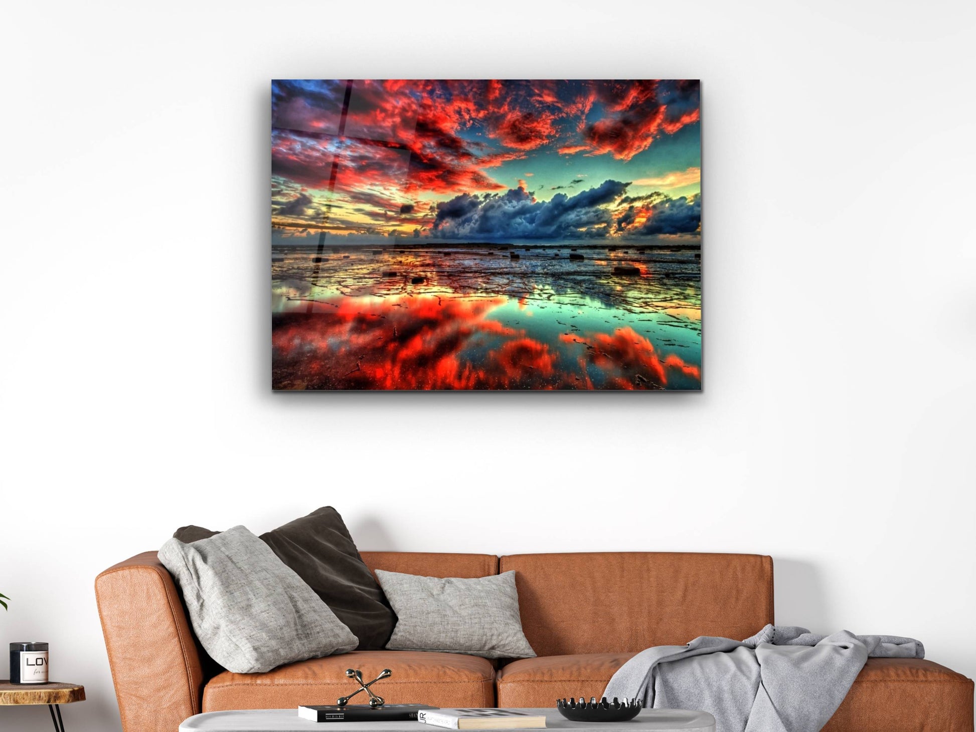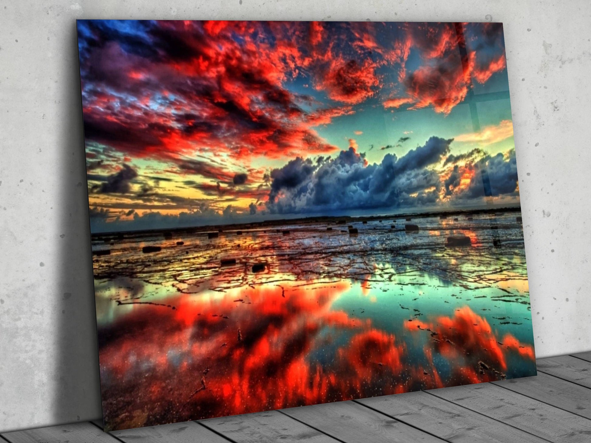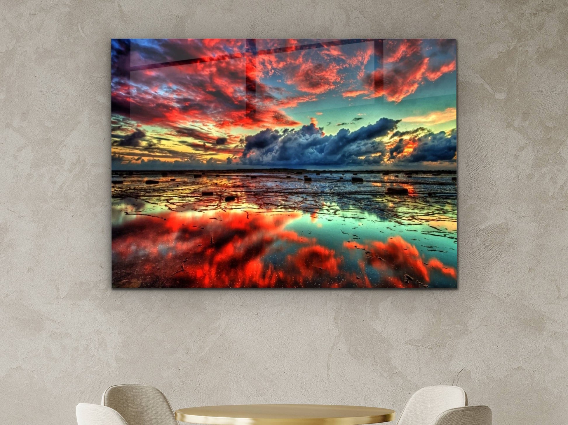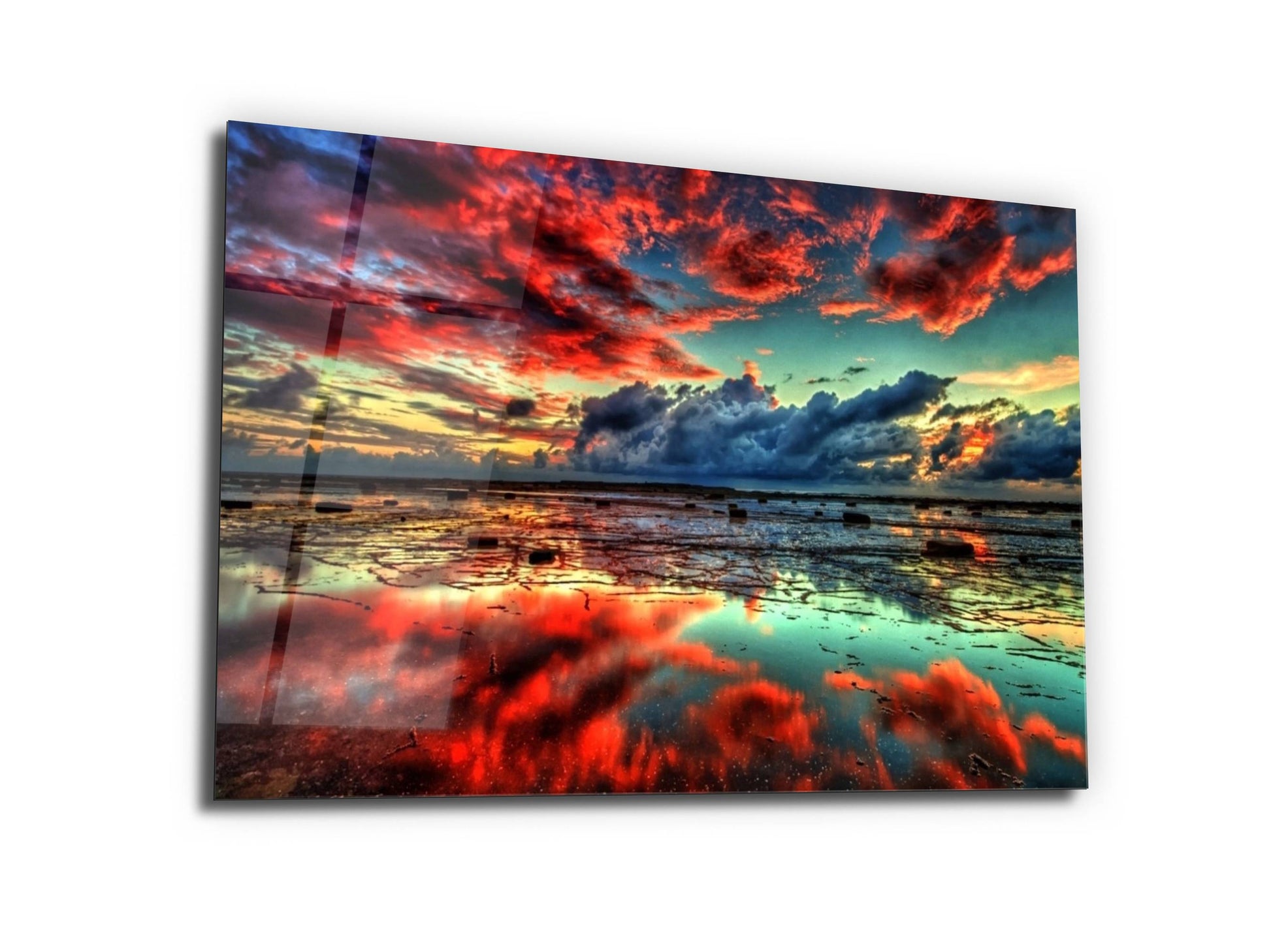 Renkli Gün Batımı ve Deniz Manzaralı Duvar Dekoru – Modern Cam Tablo