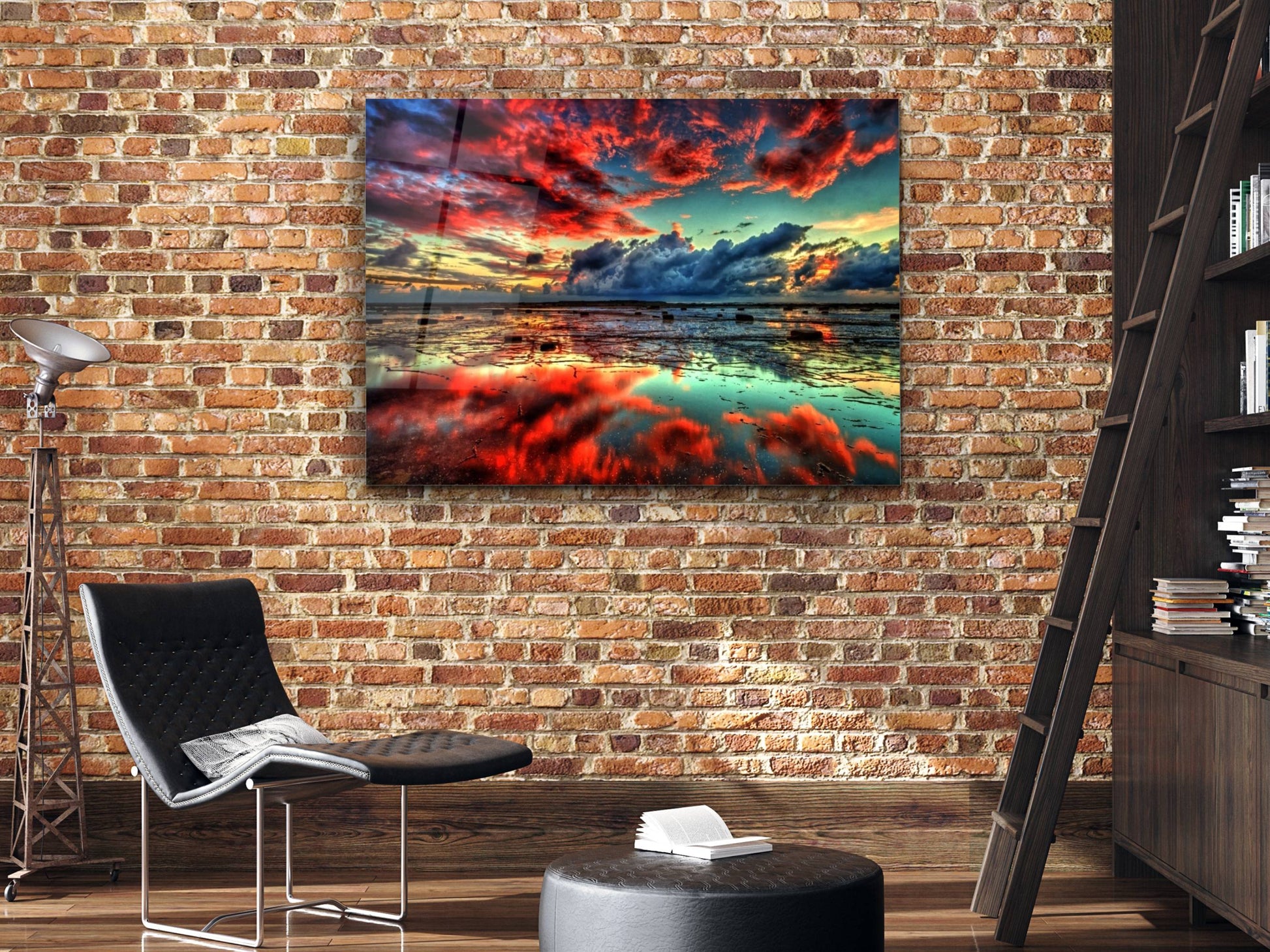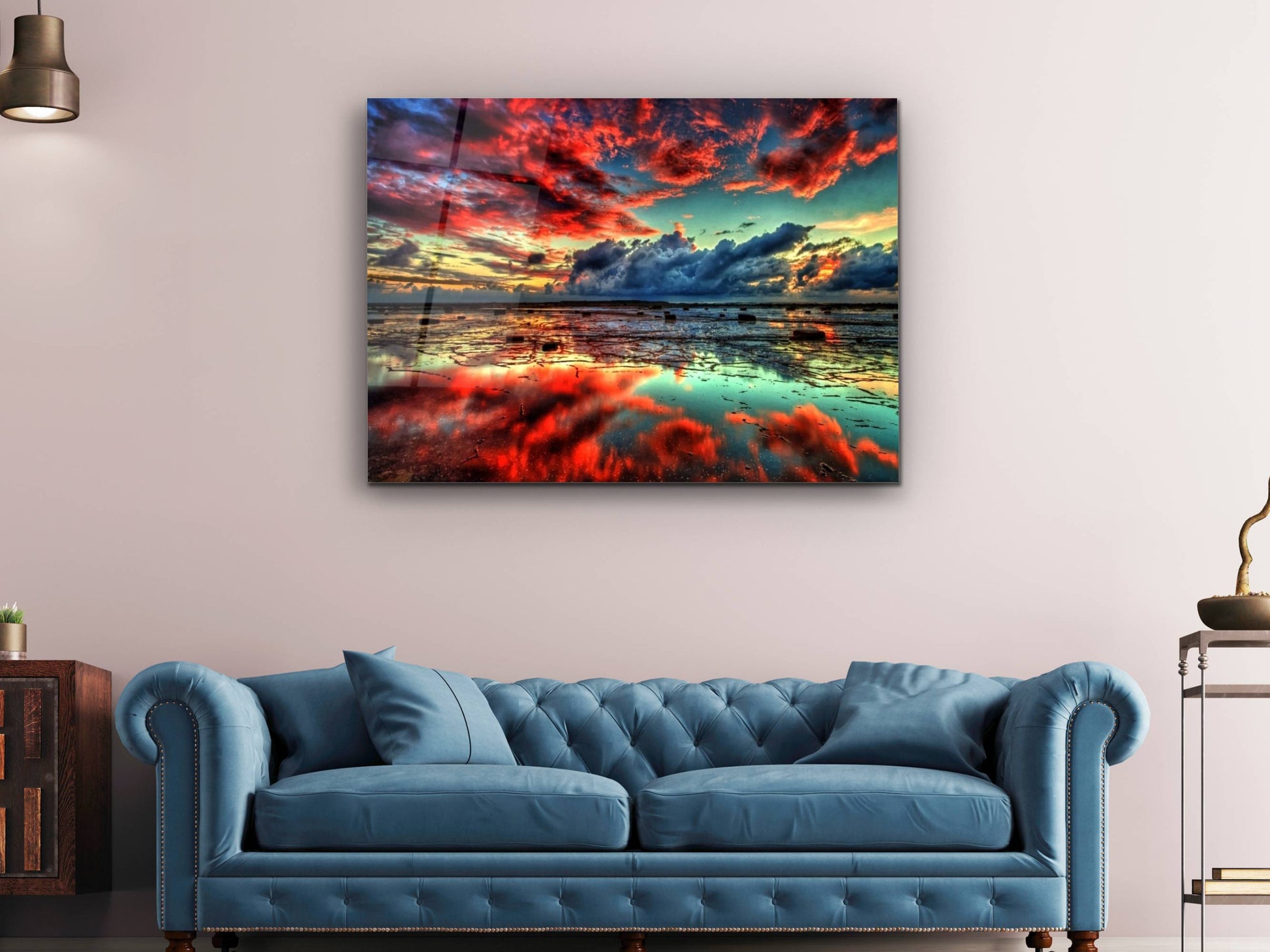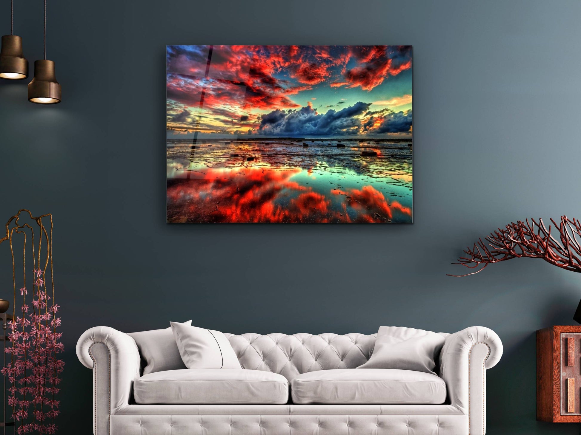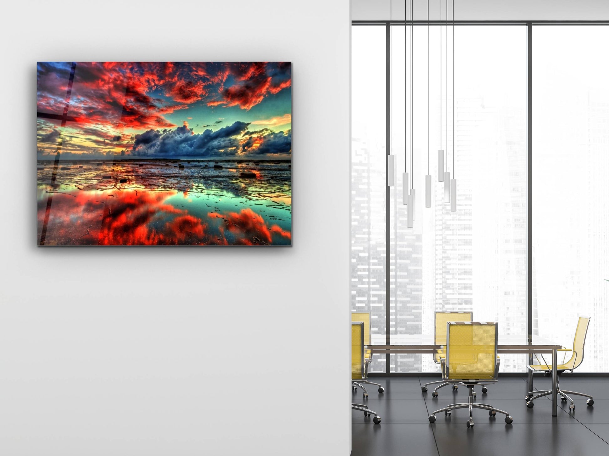 Renkli Gün Batımı ve Deniz Manzaralı Duvar Dekoru – Modern Cam Tablo