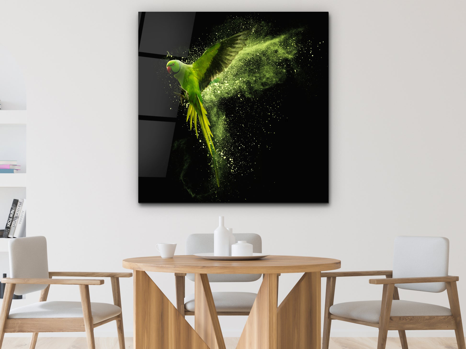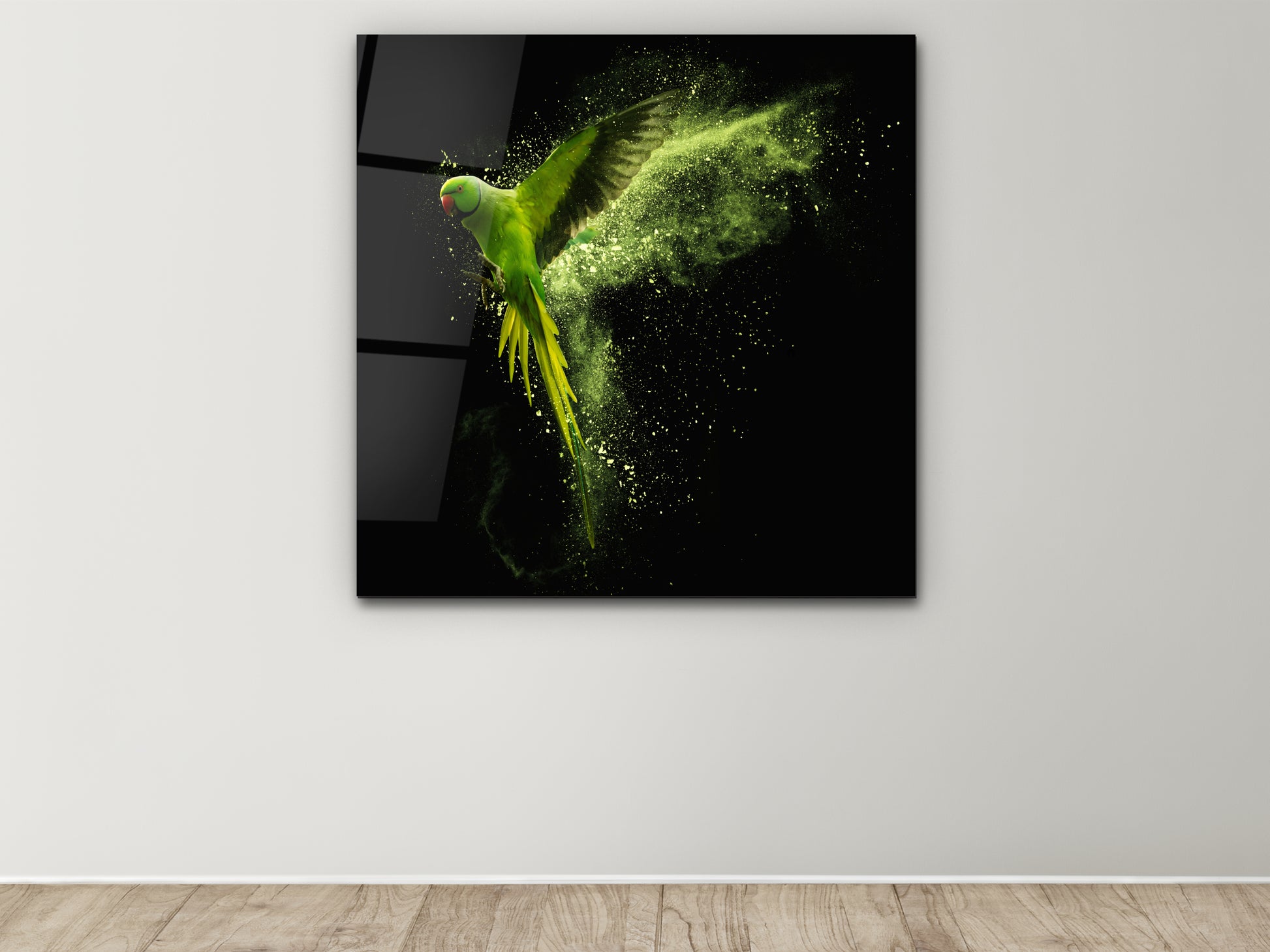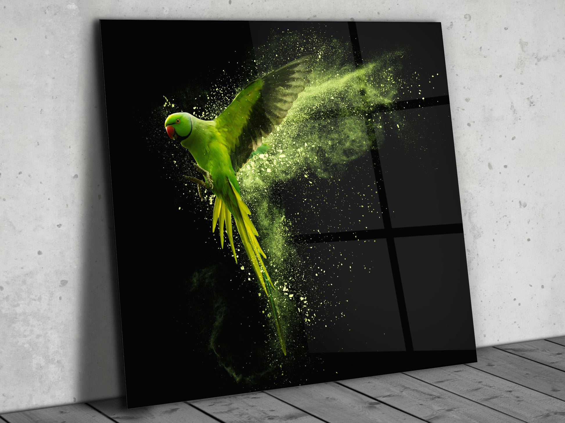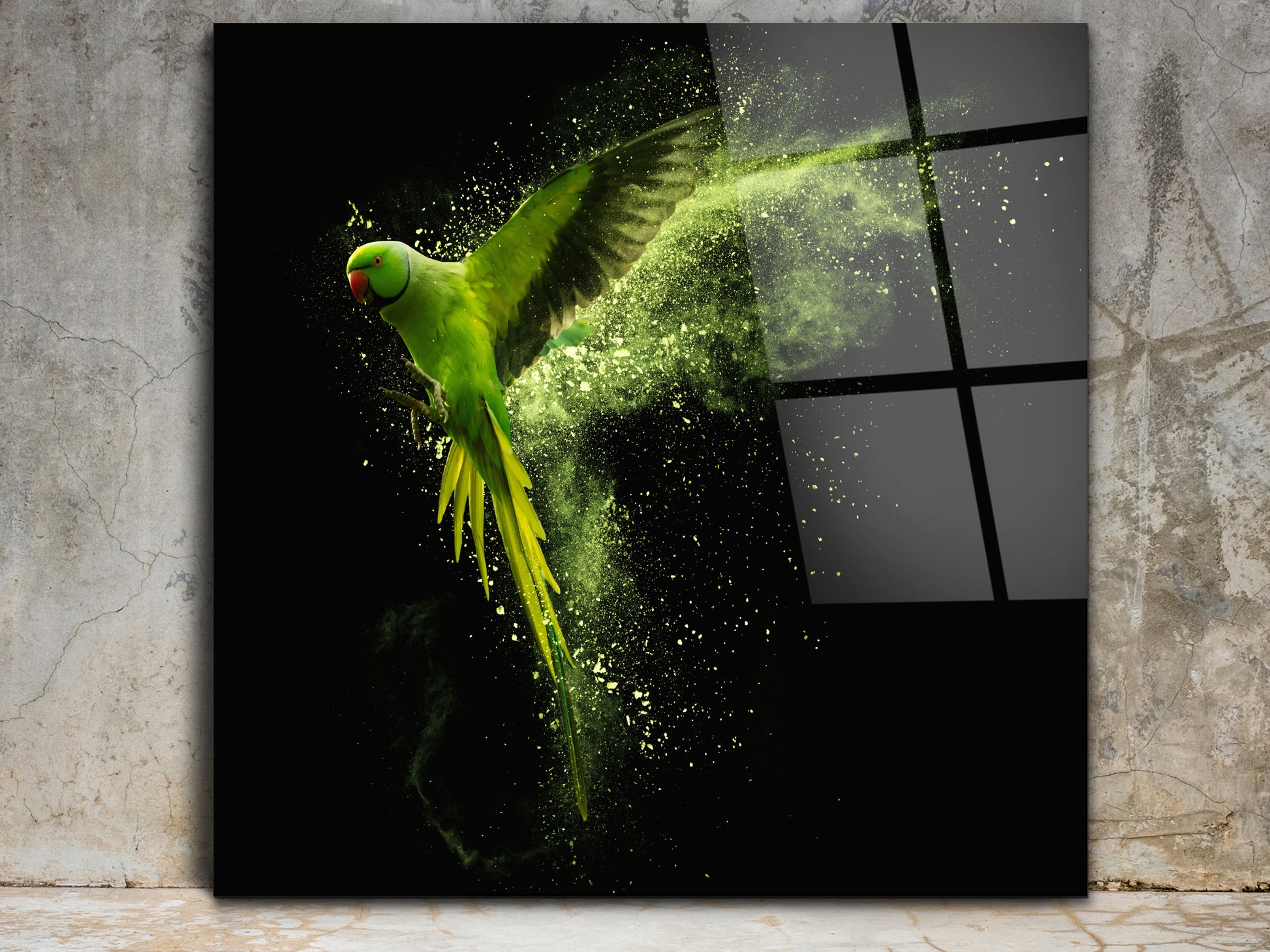 Yeşil Papağan Soyut Cam Tablo – Dekoratif Tablo - Modern Ev ve Ofis Dekoru