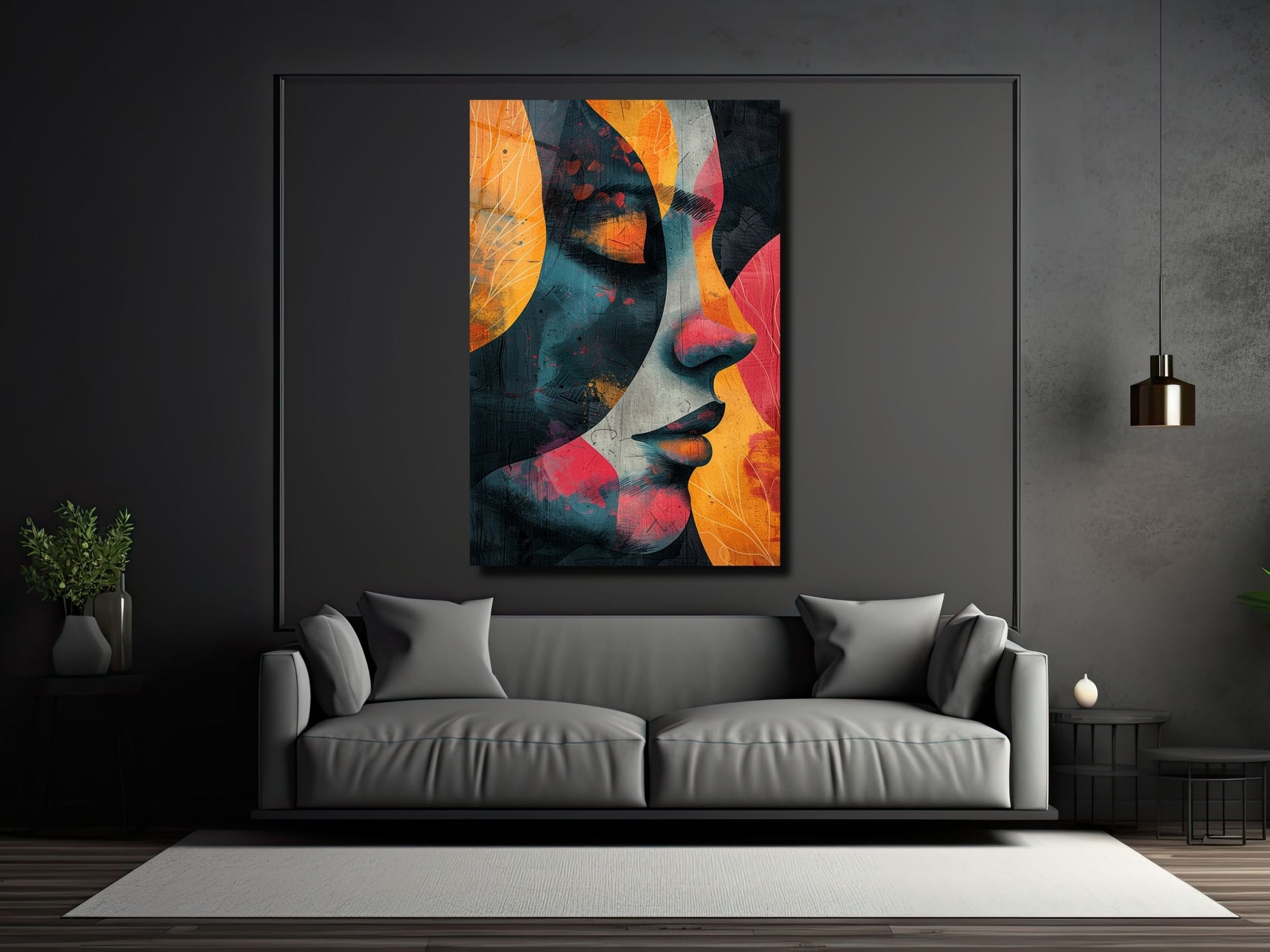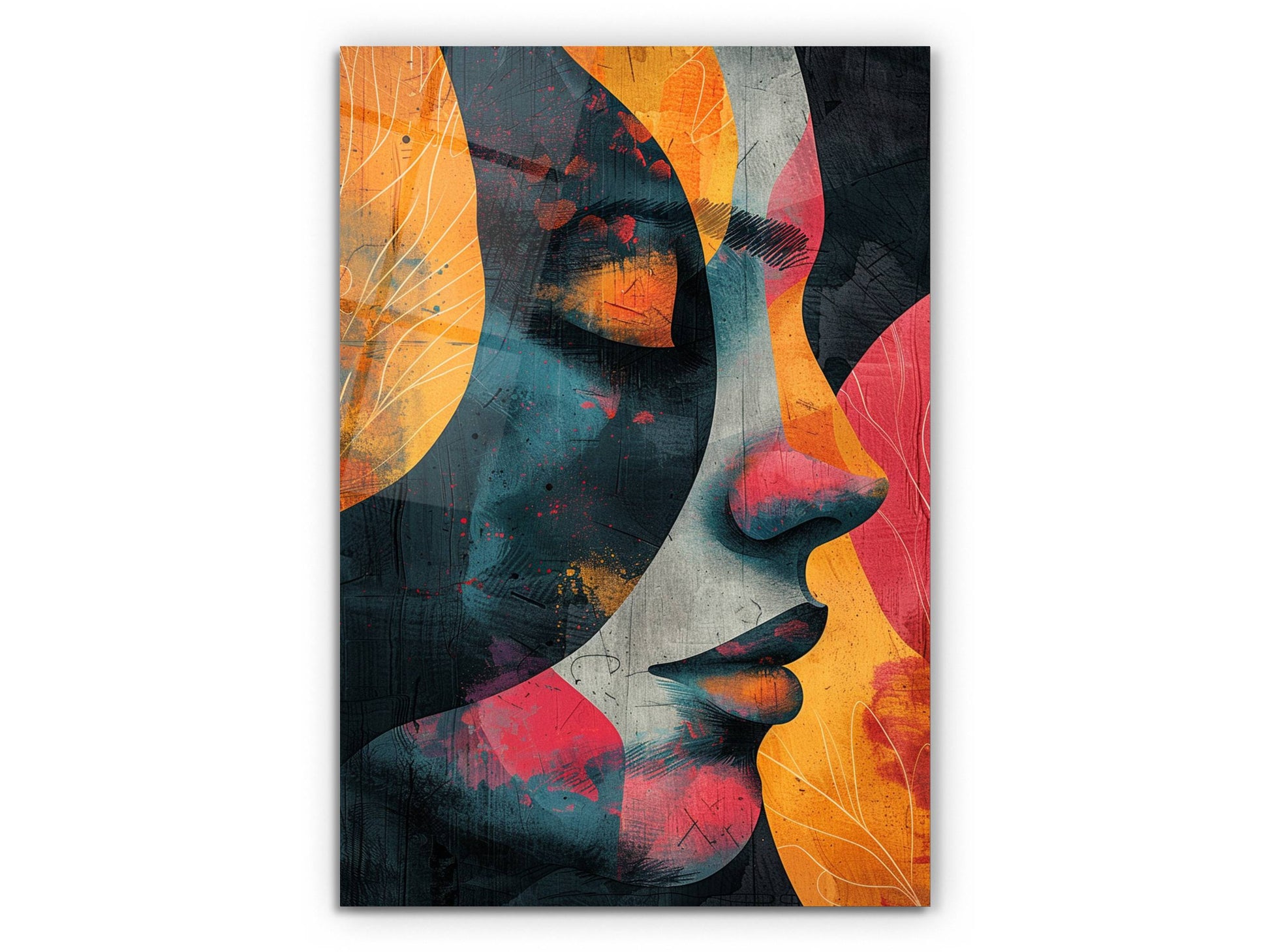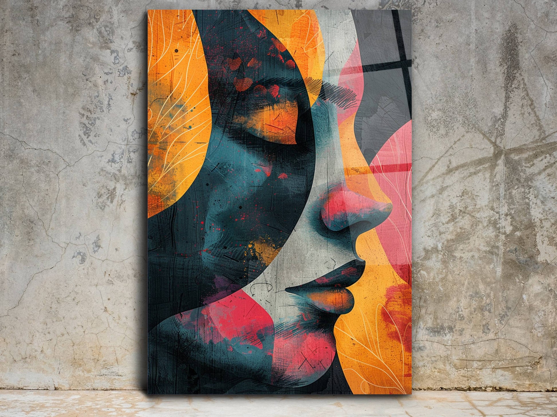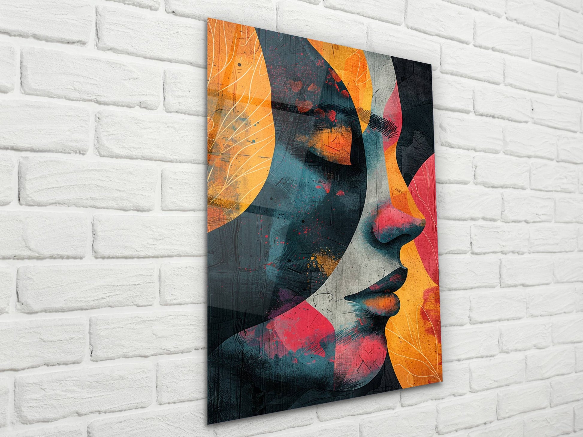 Renkli Soyut Kadın Portresi Cam Tablo - Ev ve Ofis Dekoratif Tablo
