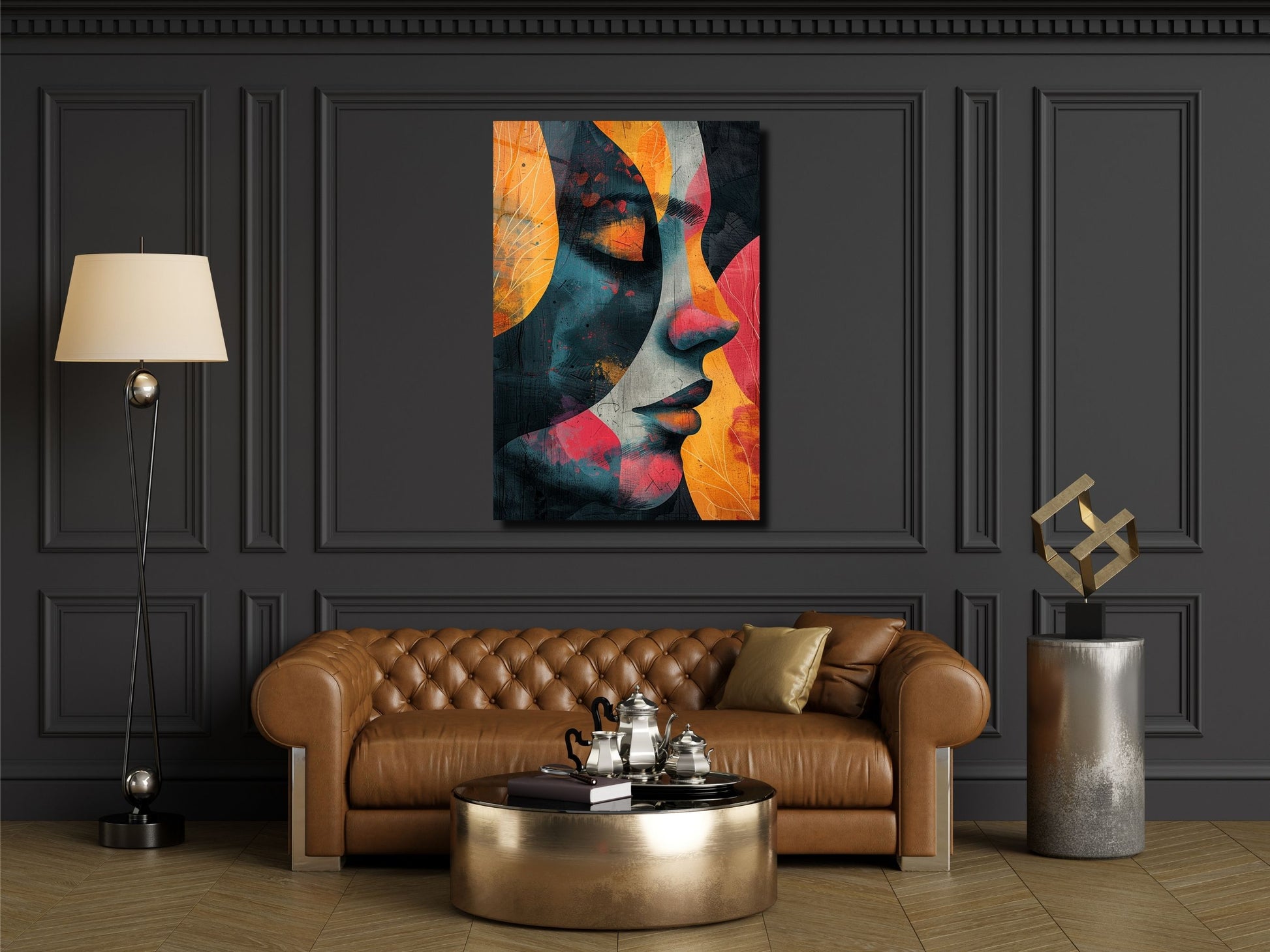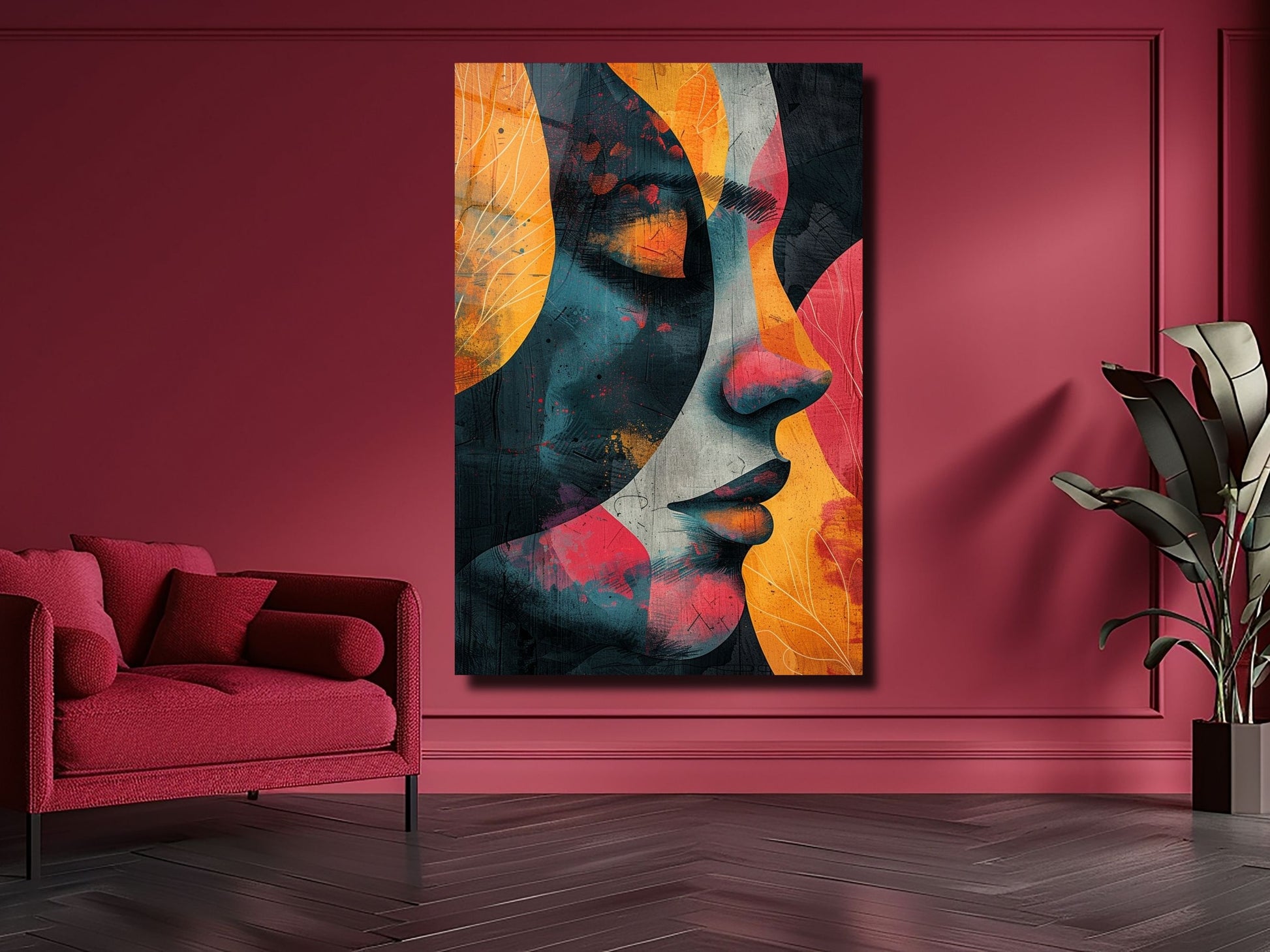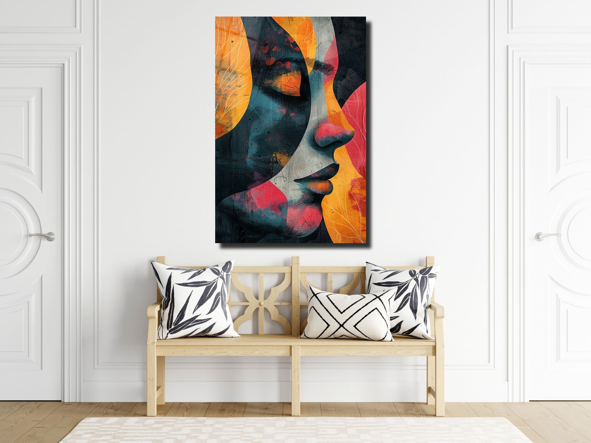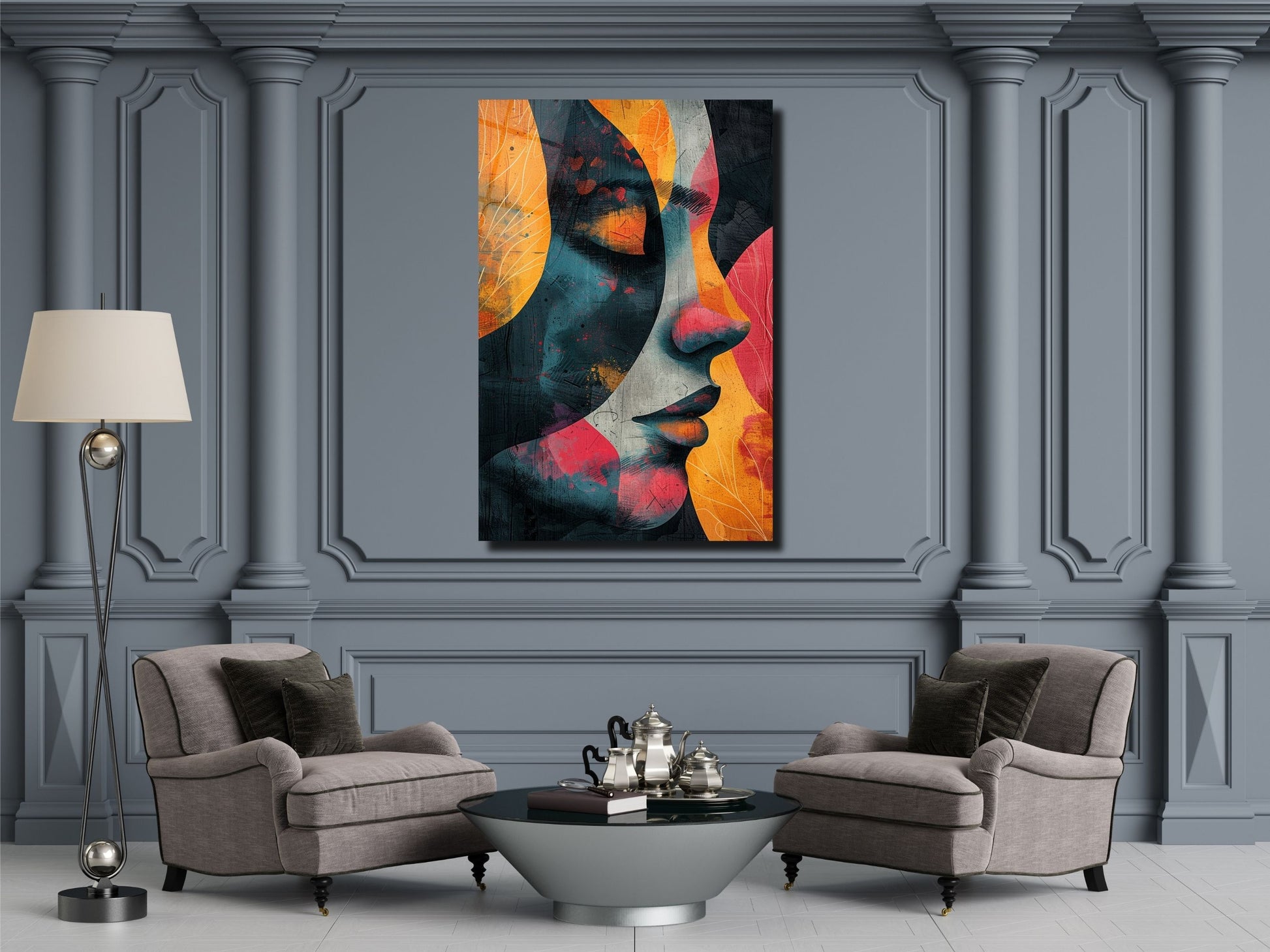 Renkli Soyut Kadın Portresi Cam Tablo - Ev ve Ofis Dekoratif Tablo