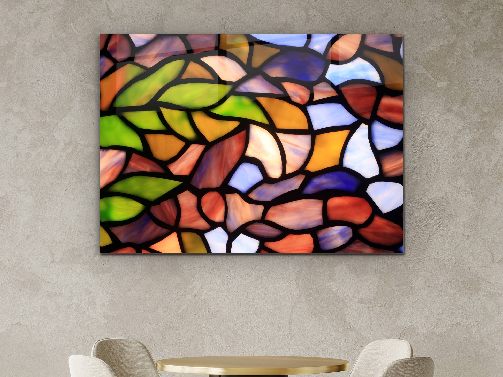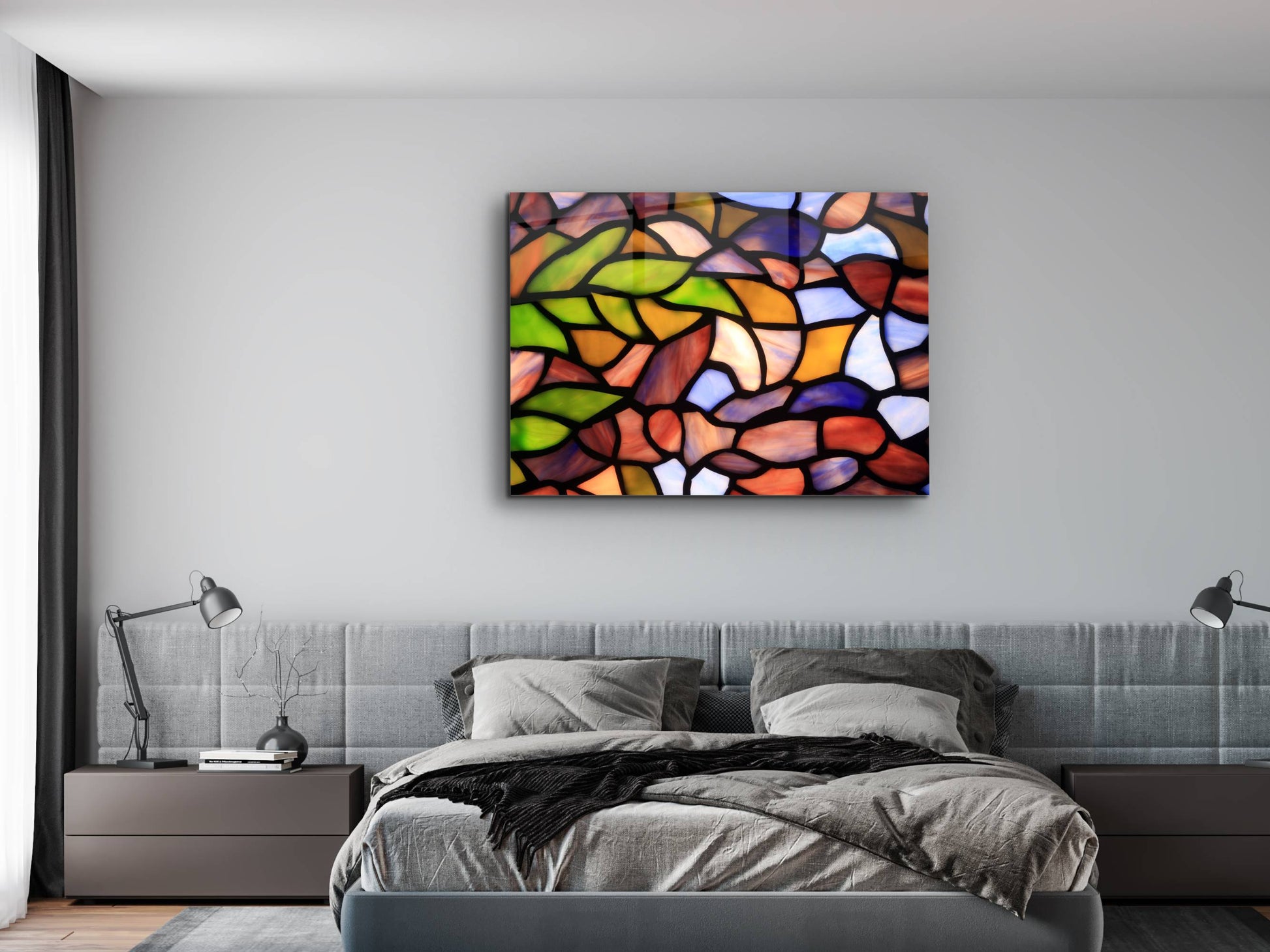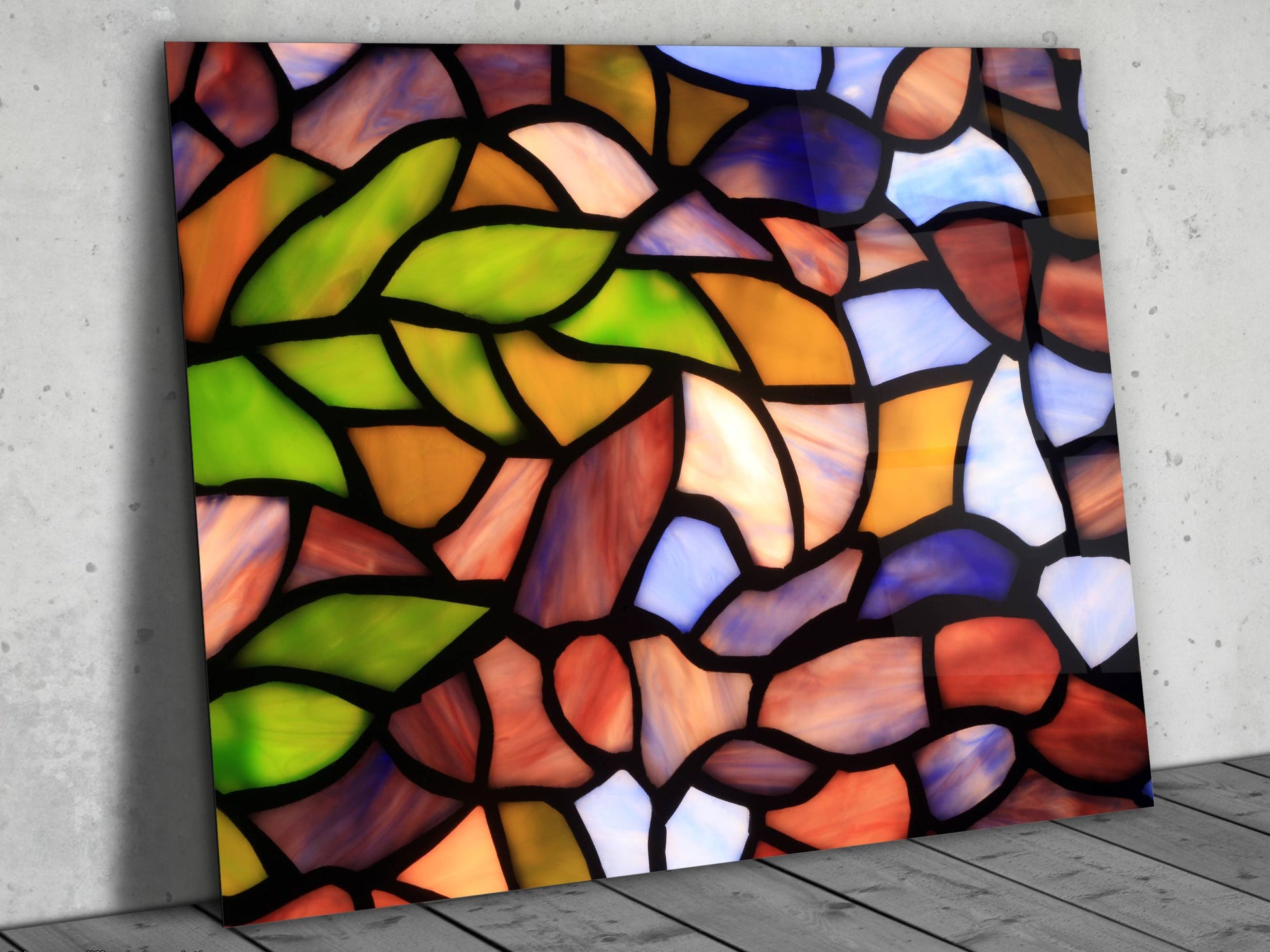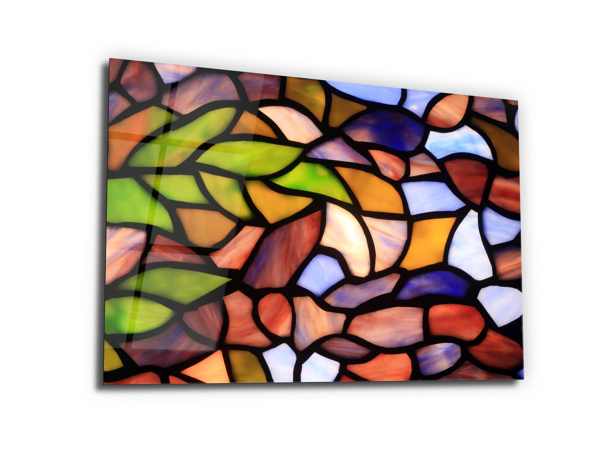 Renkli Soyut Vitray Cam Tablo - Temperli Cam Üzerine Vitray Desen - Dekoratif Duvar Tablosu