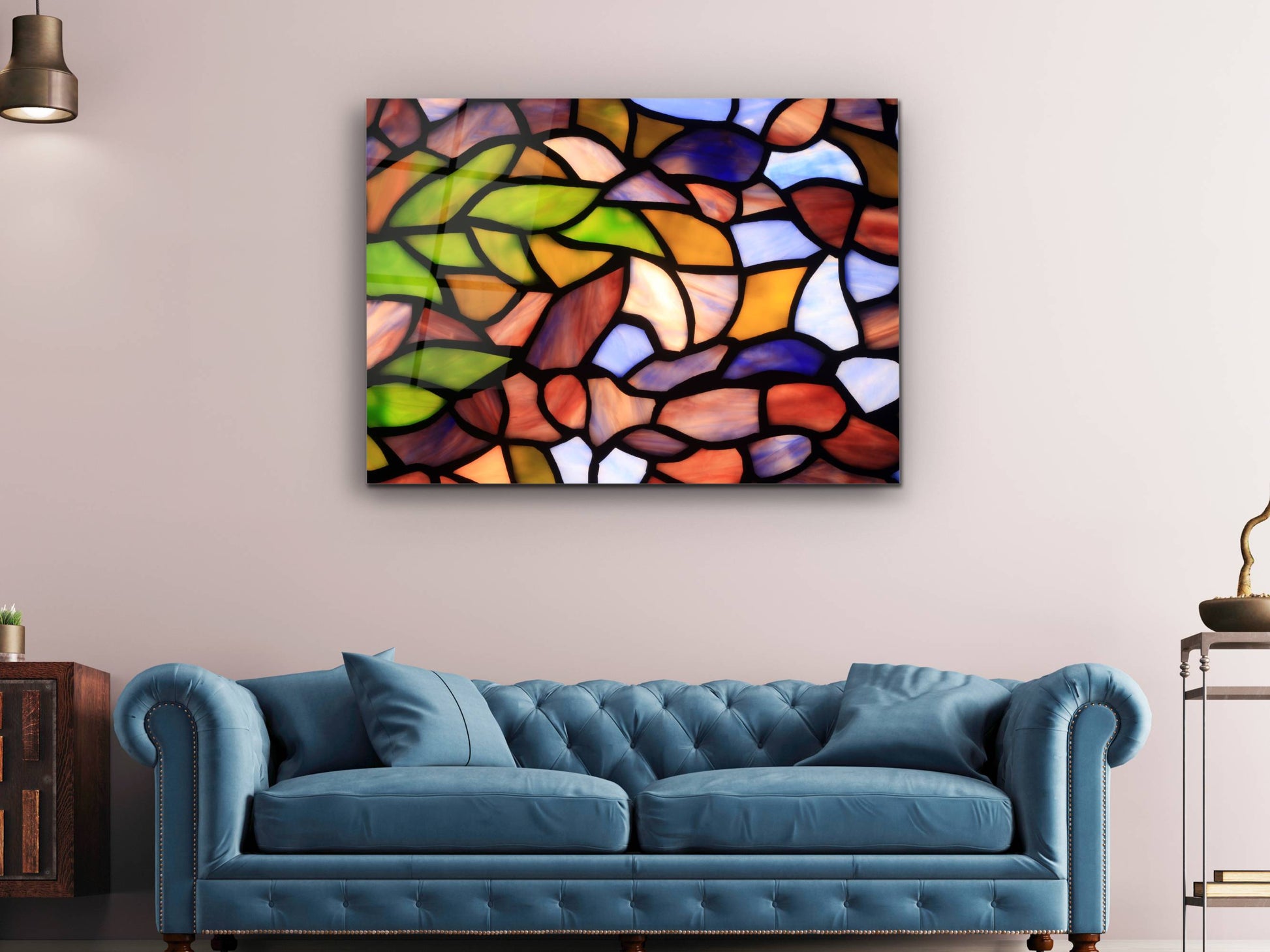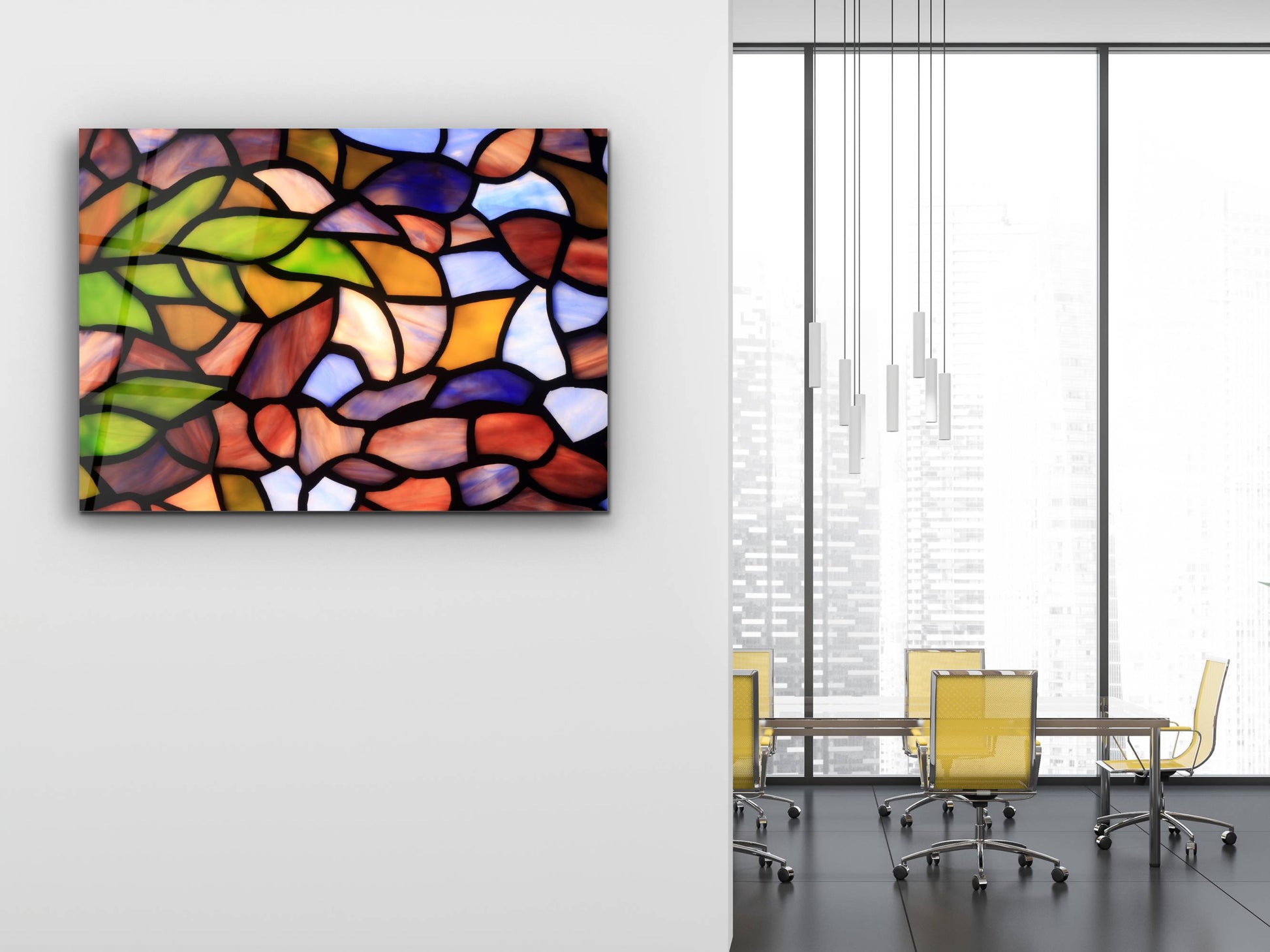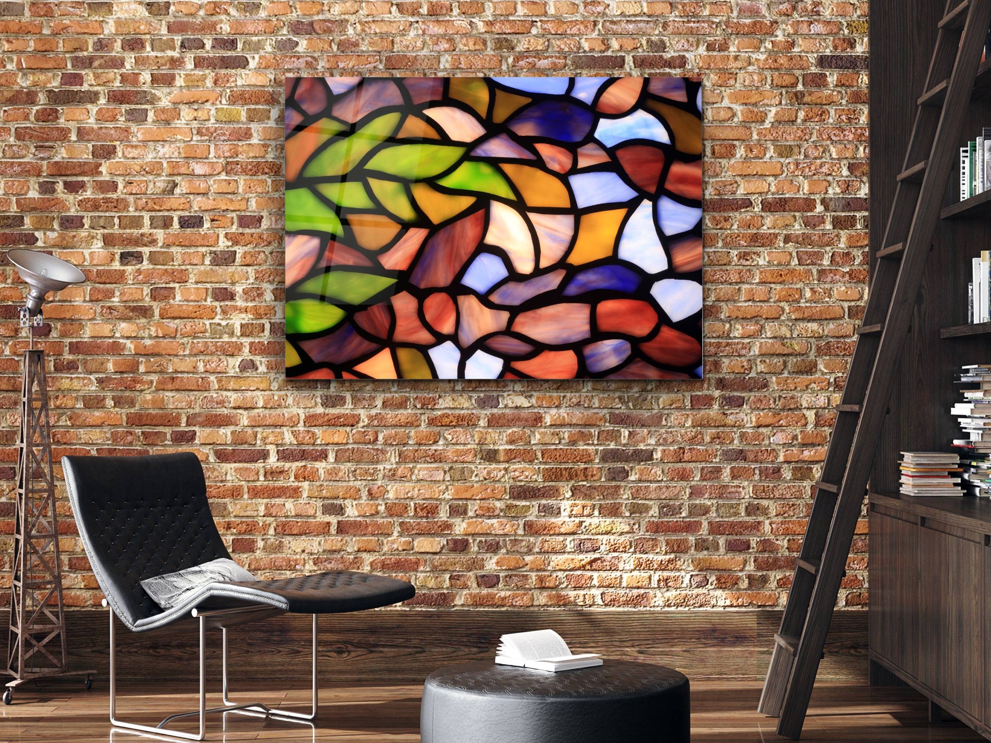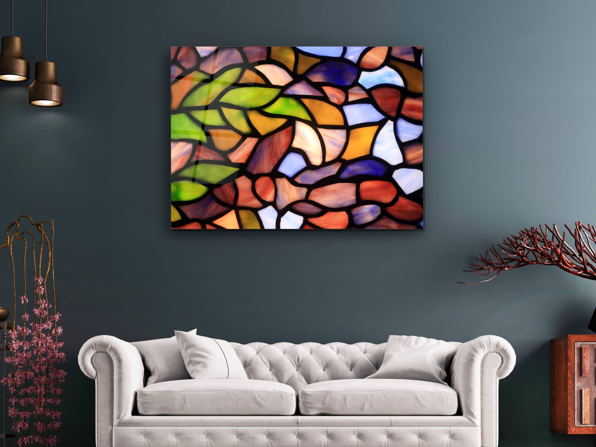 Renkli Soyut Vitray Cam Tablo - Temperli Cam Üzerine Vitray Desen - Dekoratif Duvar Tablosu