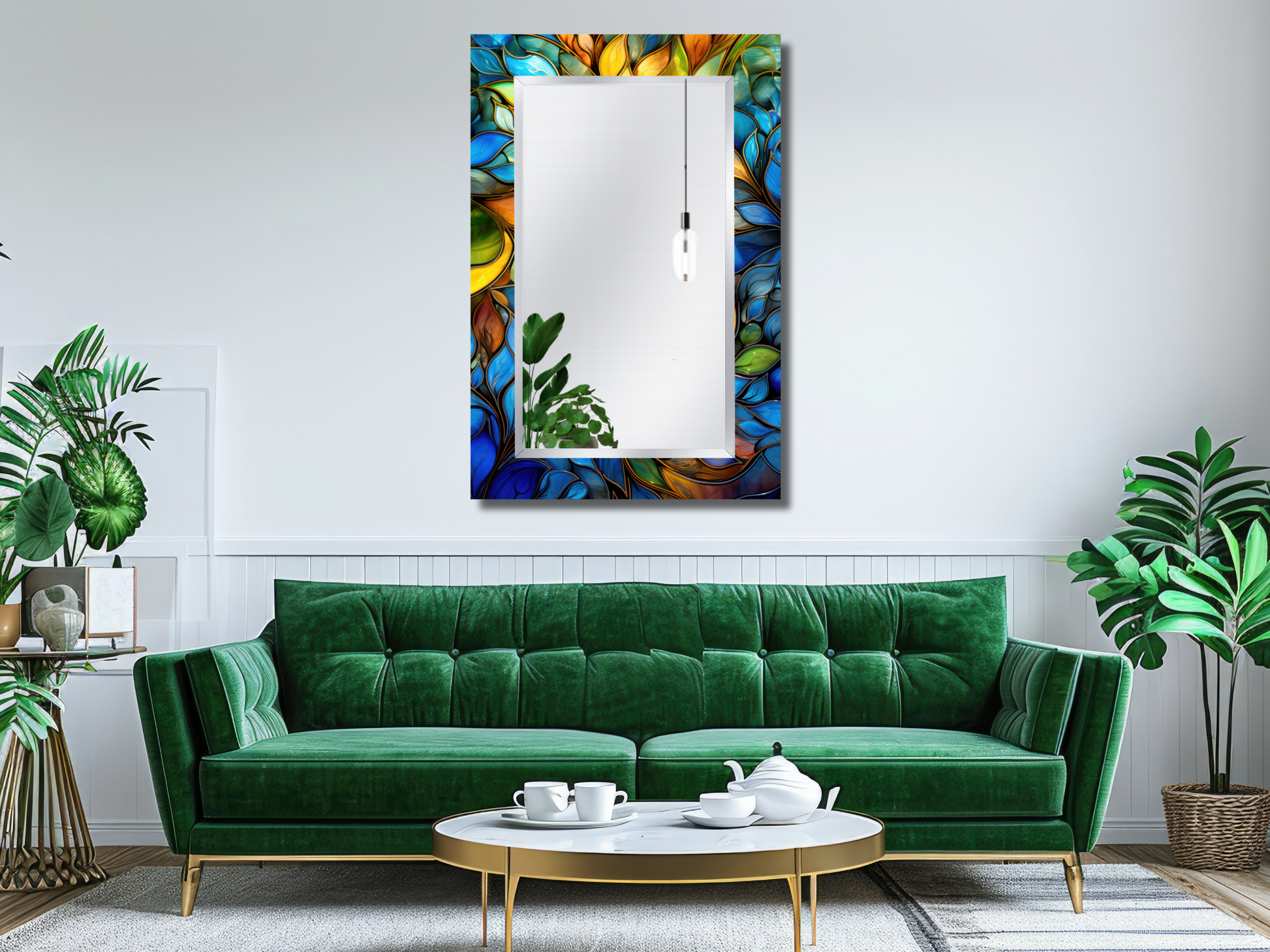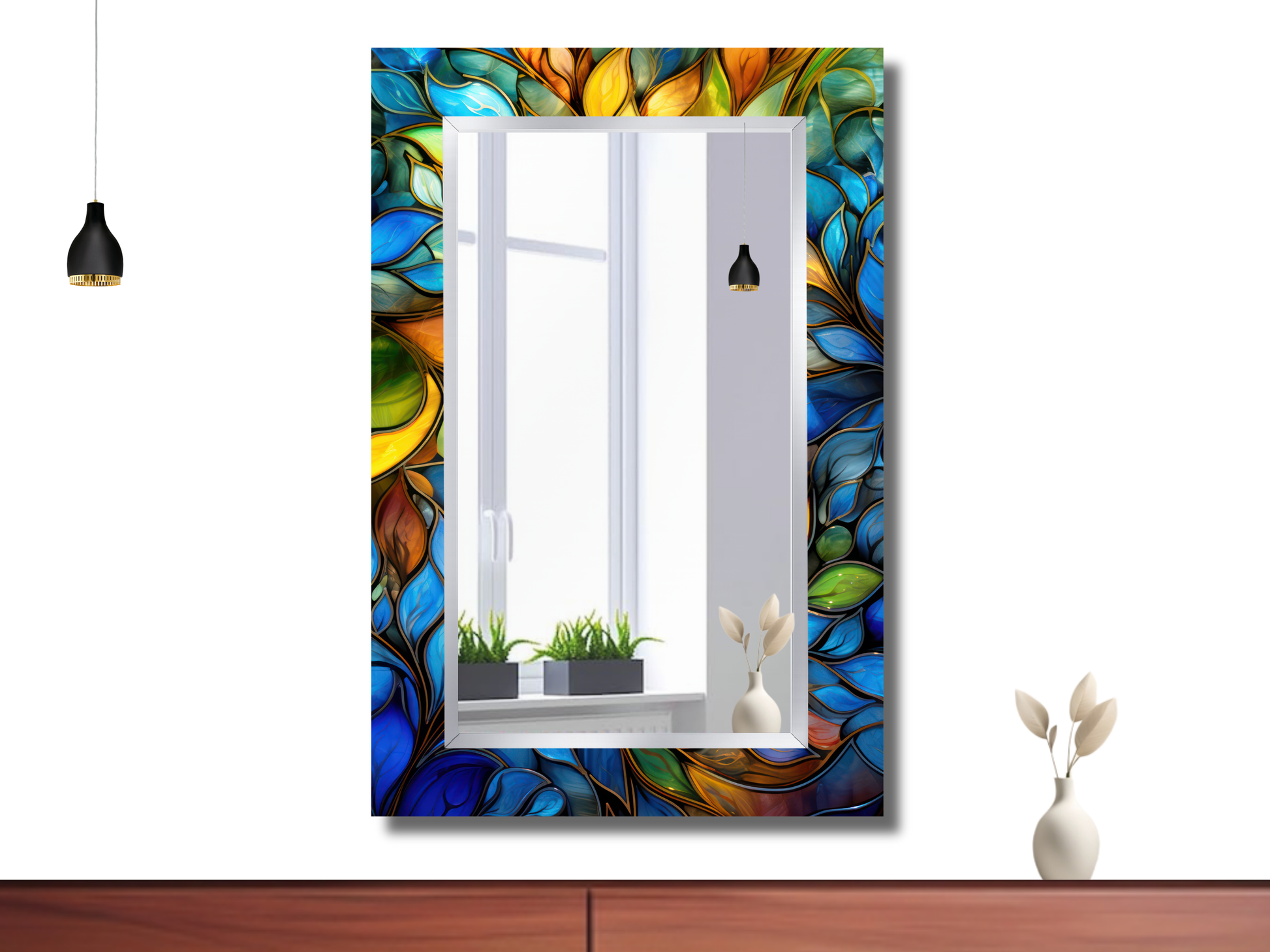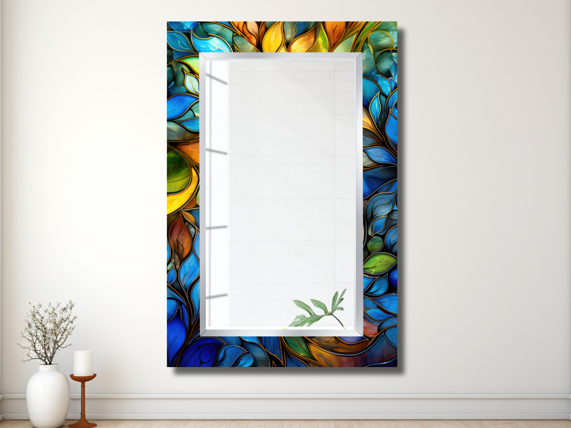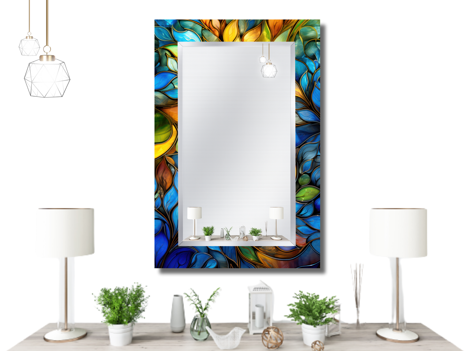 Renkli Vitray Desenli Ayna - Dekoratif Ayna - Boy Aynası - Banyo Aynası - Ev Ofis Dekoru