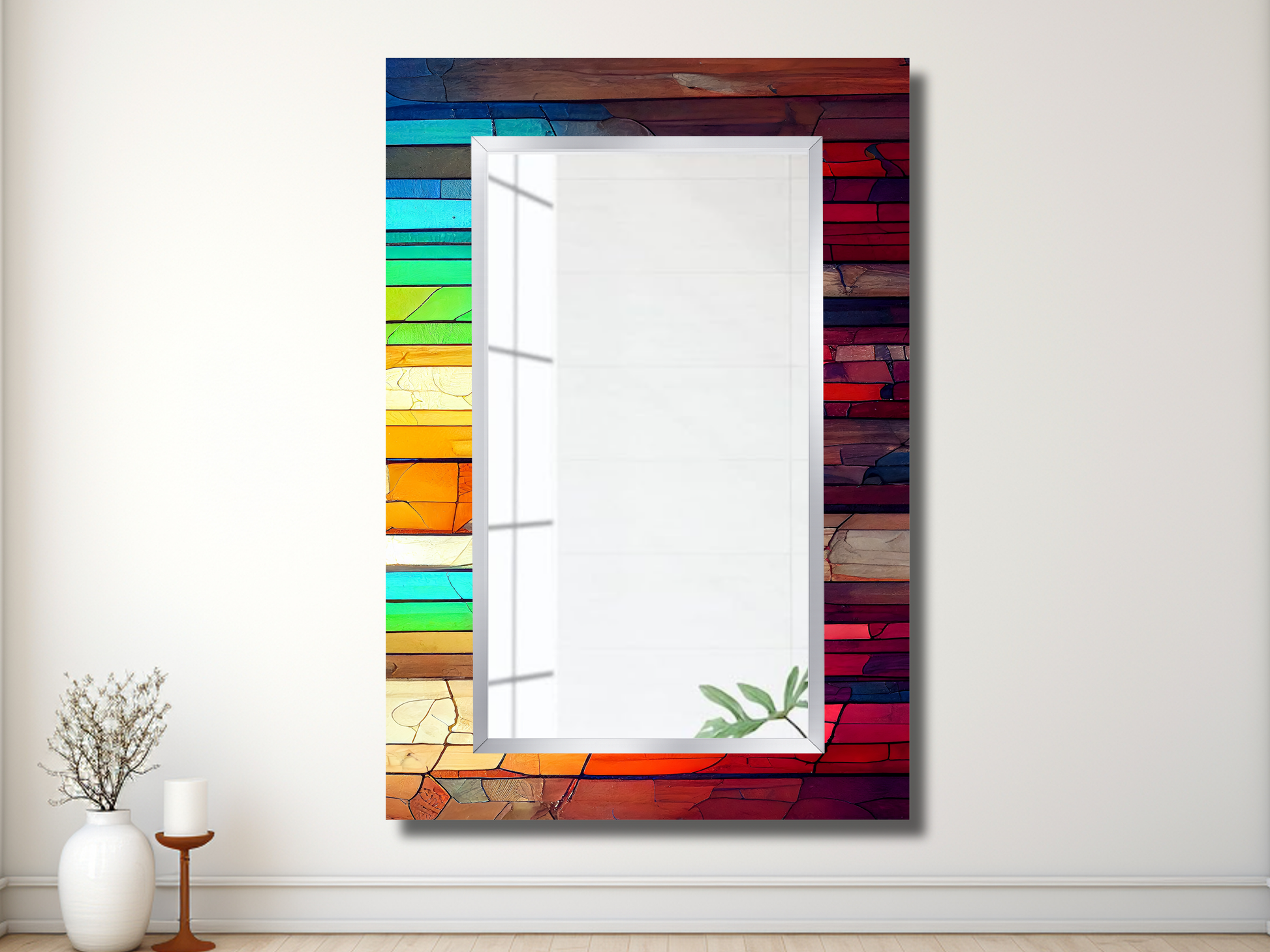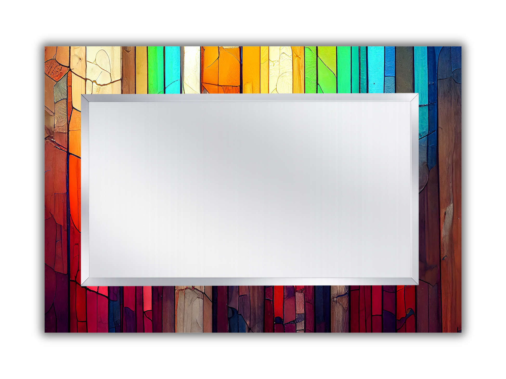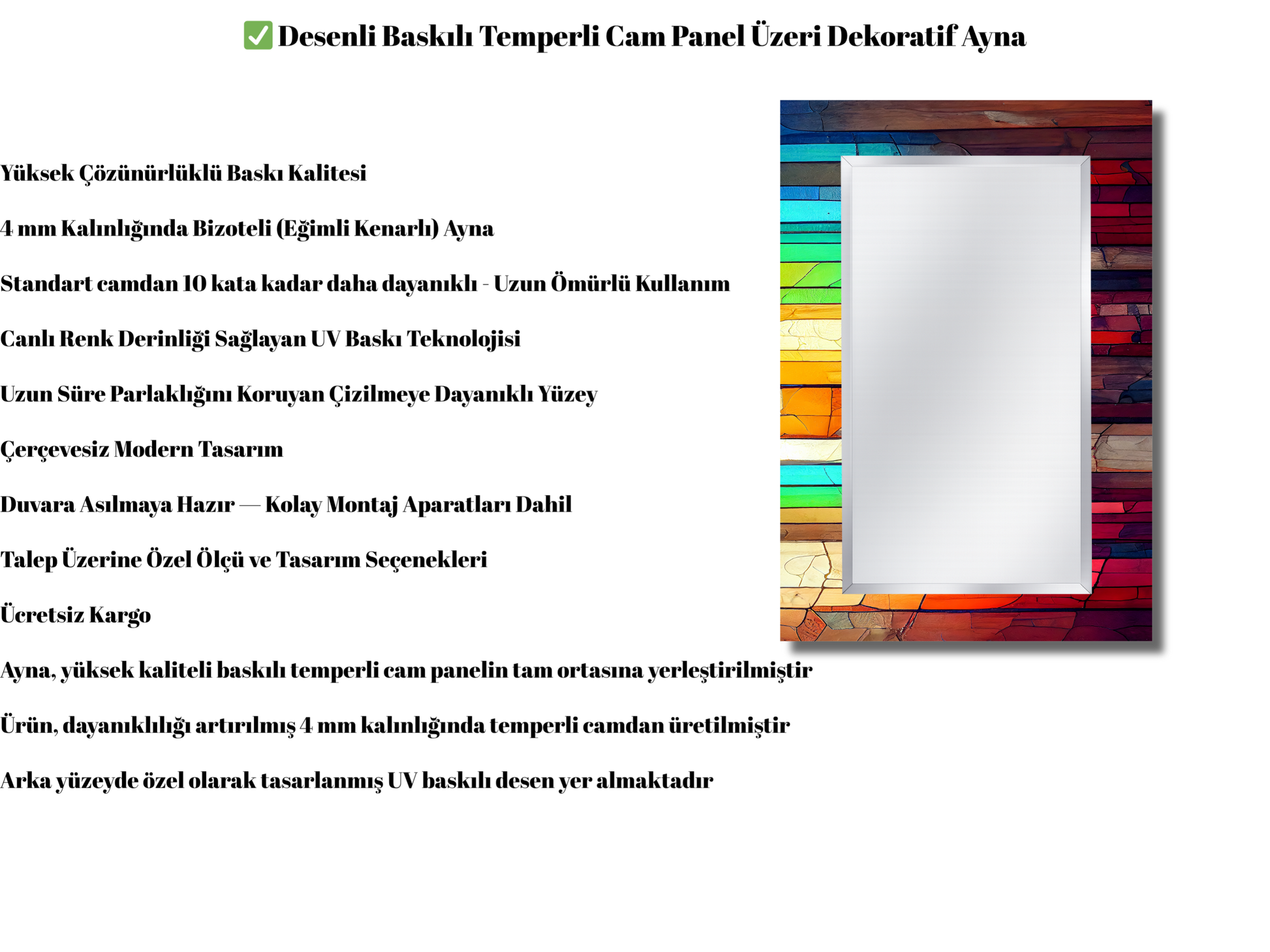 Renkli Vitray Desenli Ayna - Dekoratif Ayna - Boy Aynası - Banyo Aynası - Modern Ev Dekorasyonu