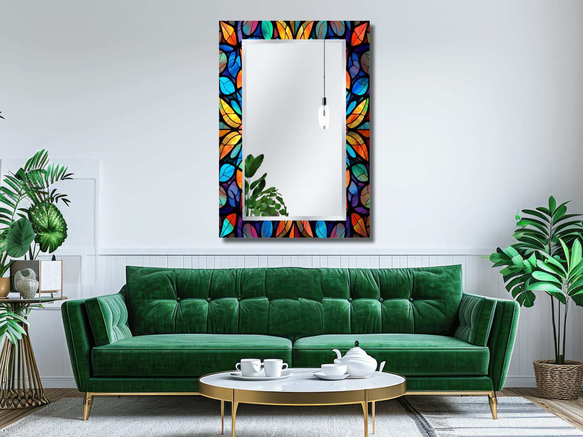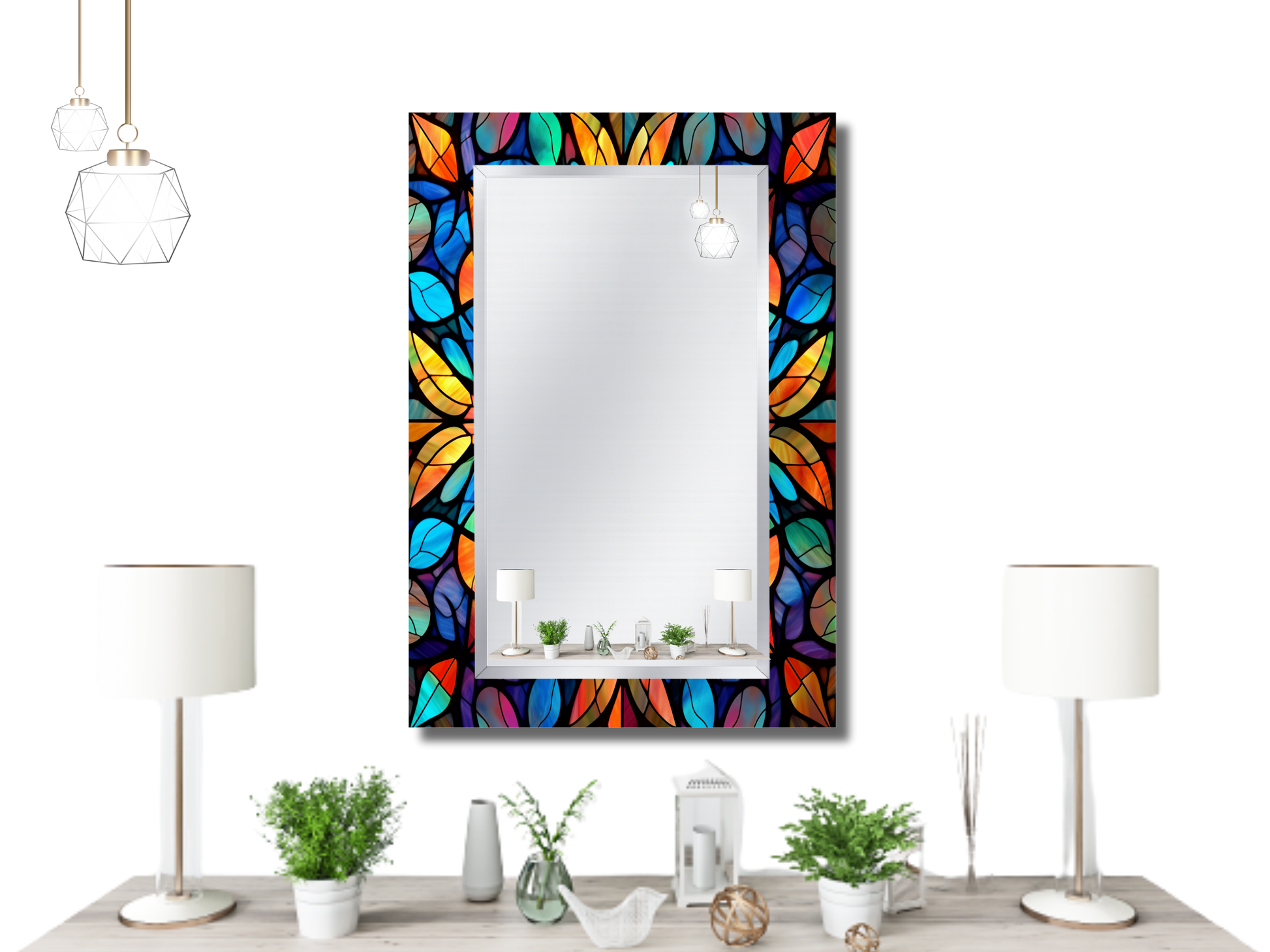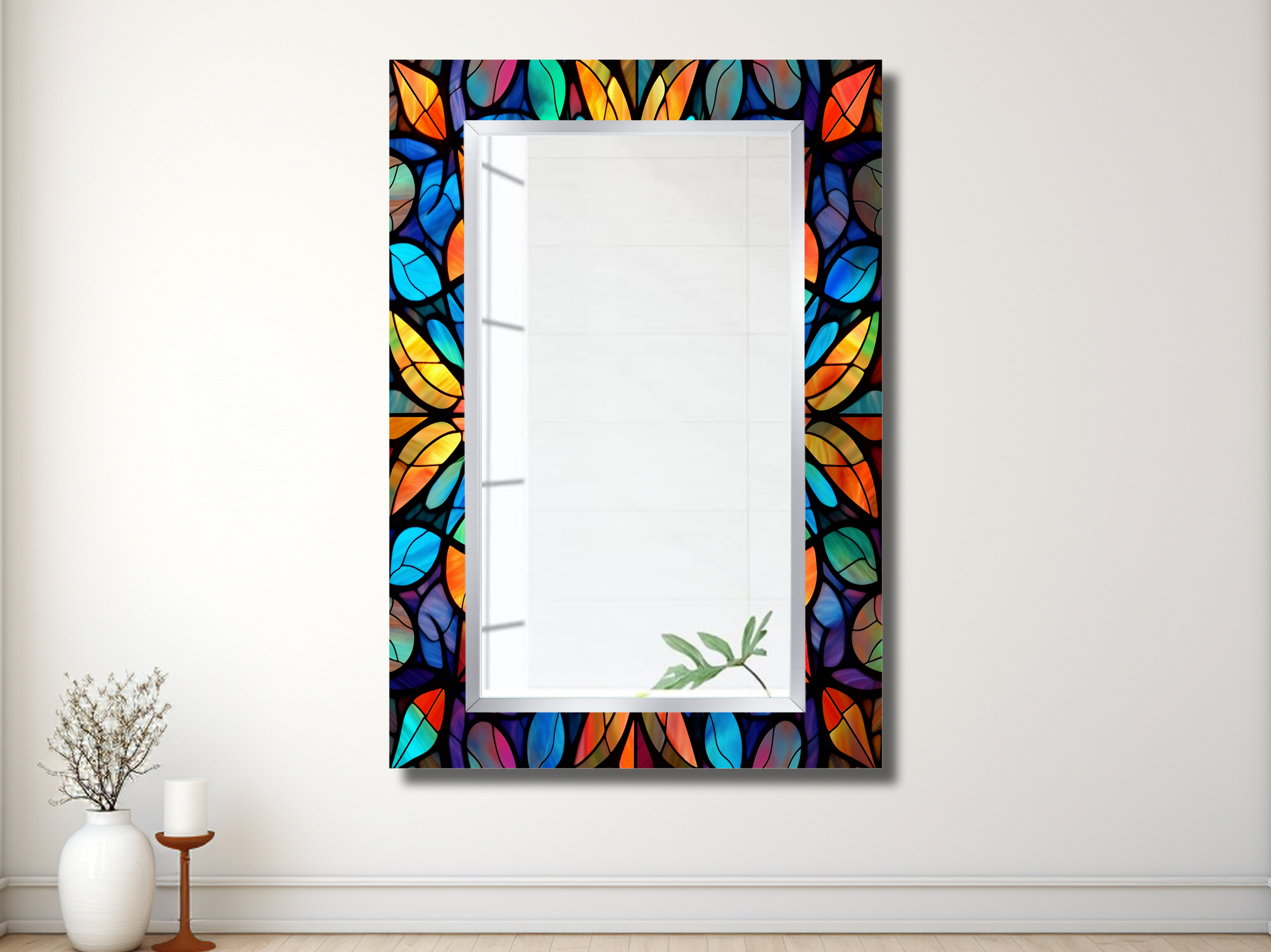 Renkli Vitray Desenli Ayna - Dekoratif Ayna - Boy Aynası - Makyaj Masası Aynası - Ev Dekorasyonu