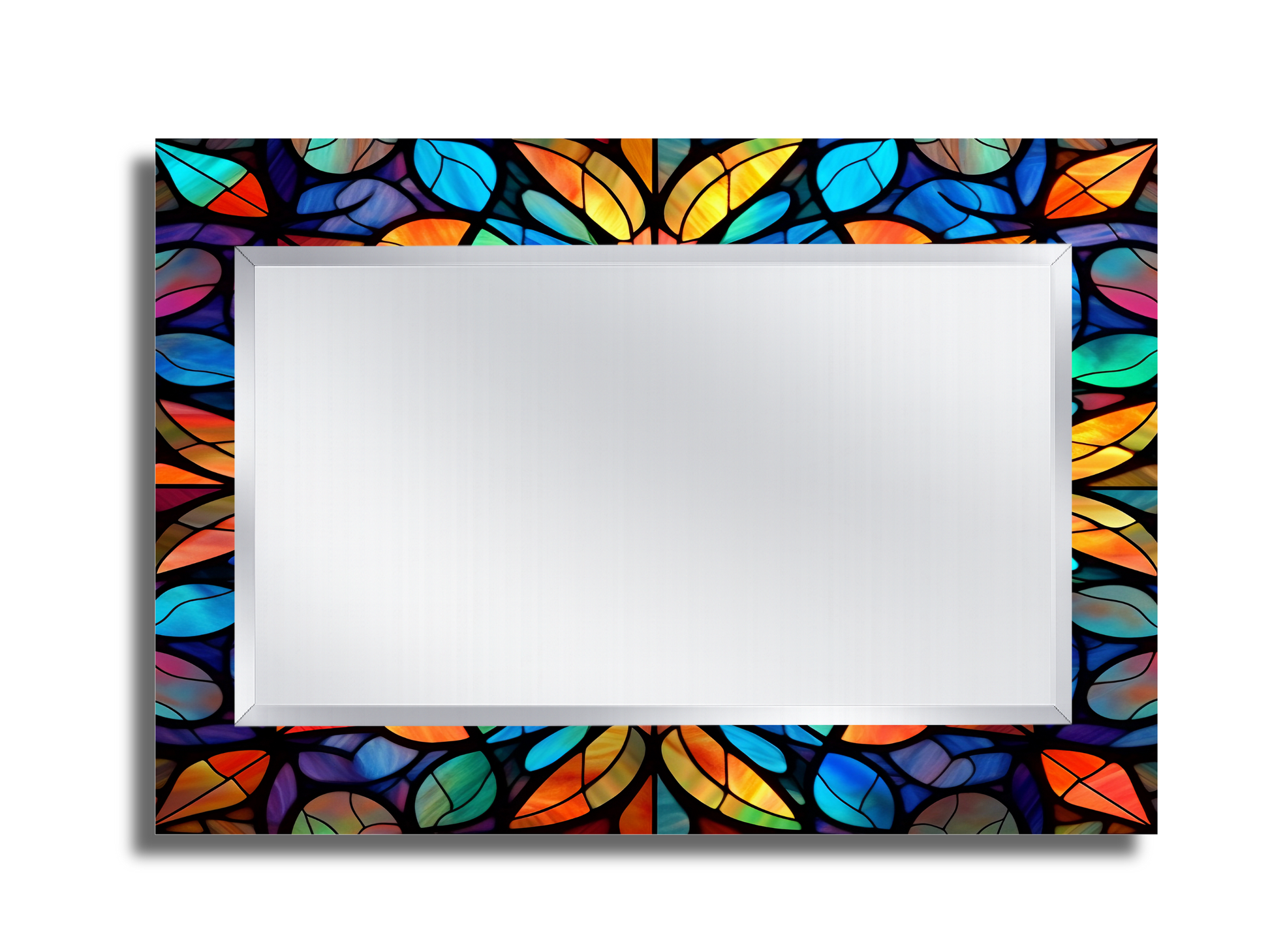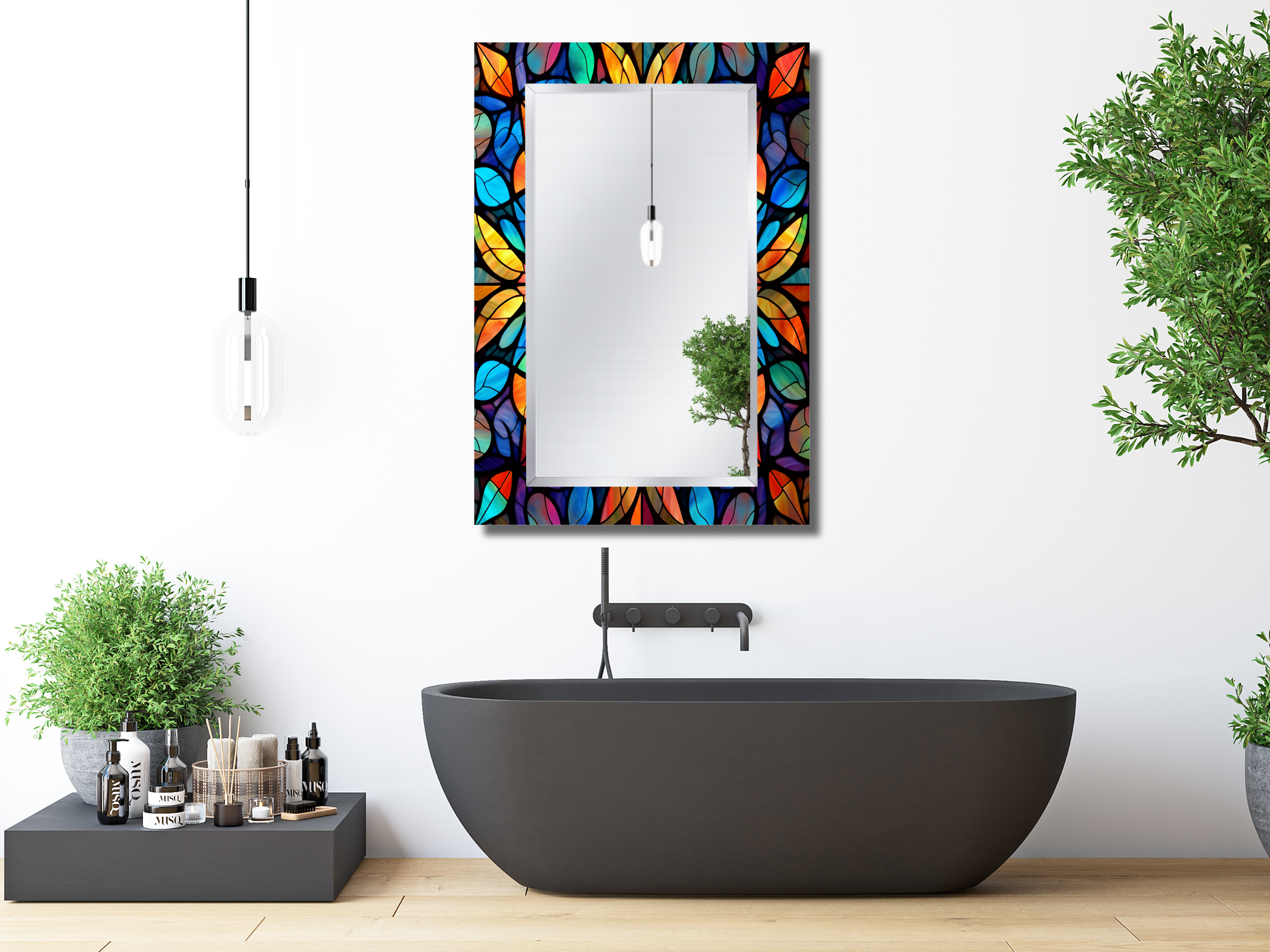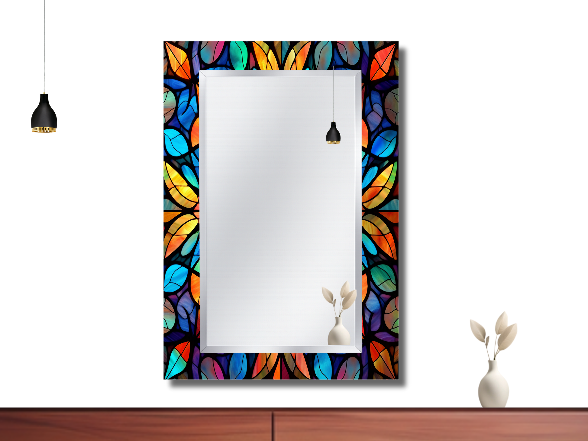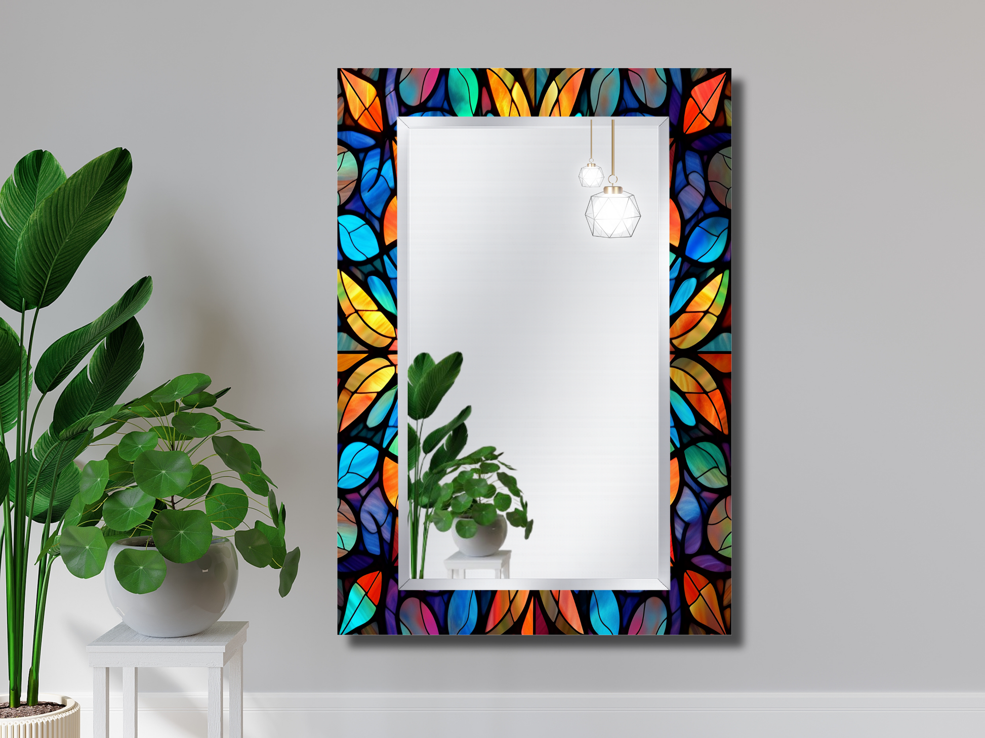 Renkli Vitray Desenli Ayna - Dekoratif Ayna - Boy Aynası - Makyaj Masası Aynası - Ev Dekorasyonu