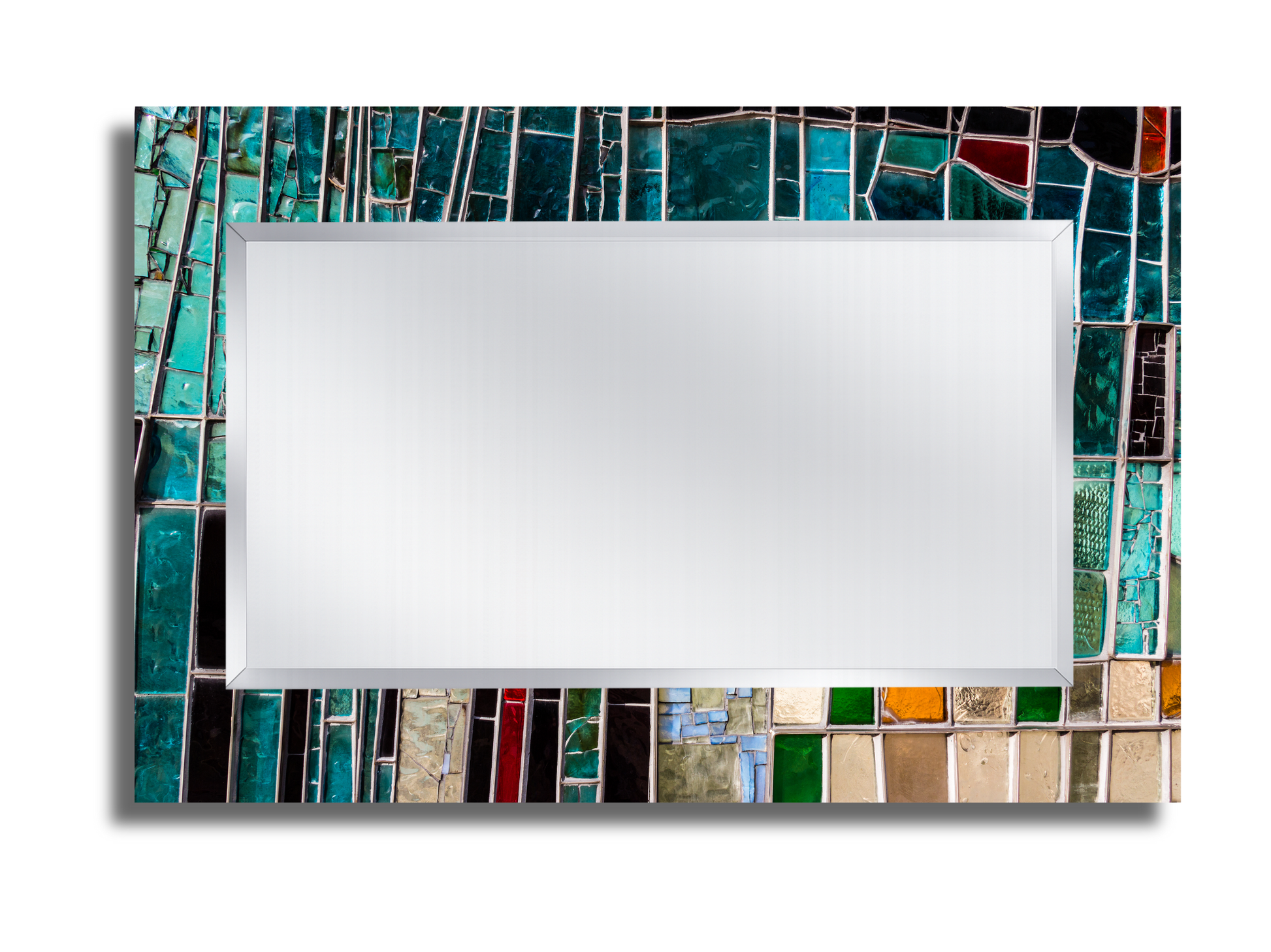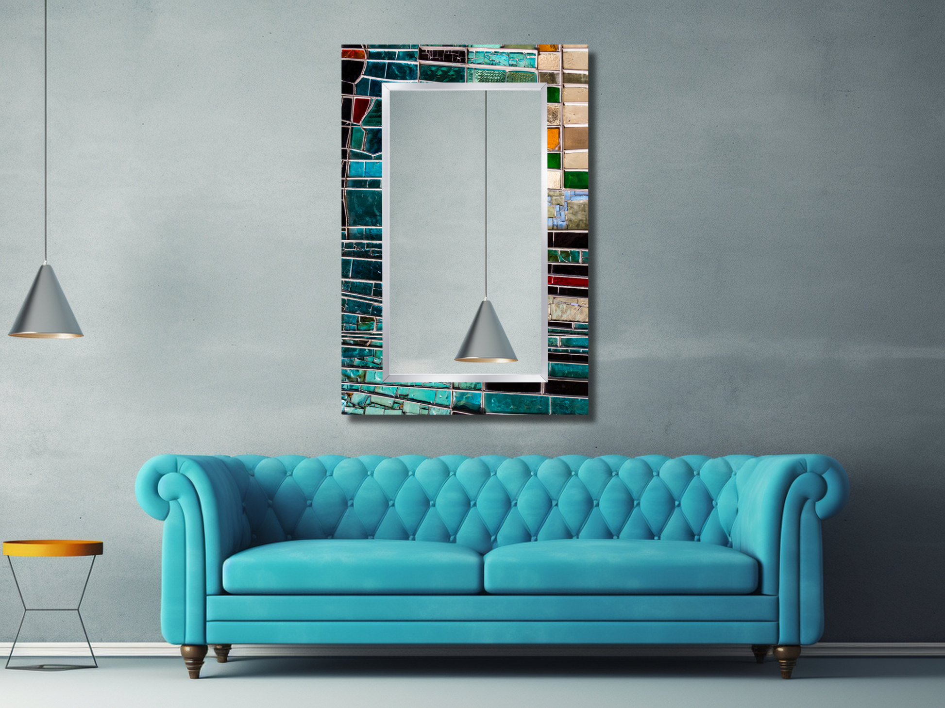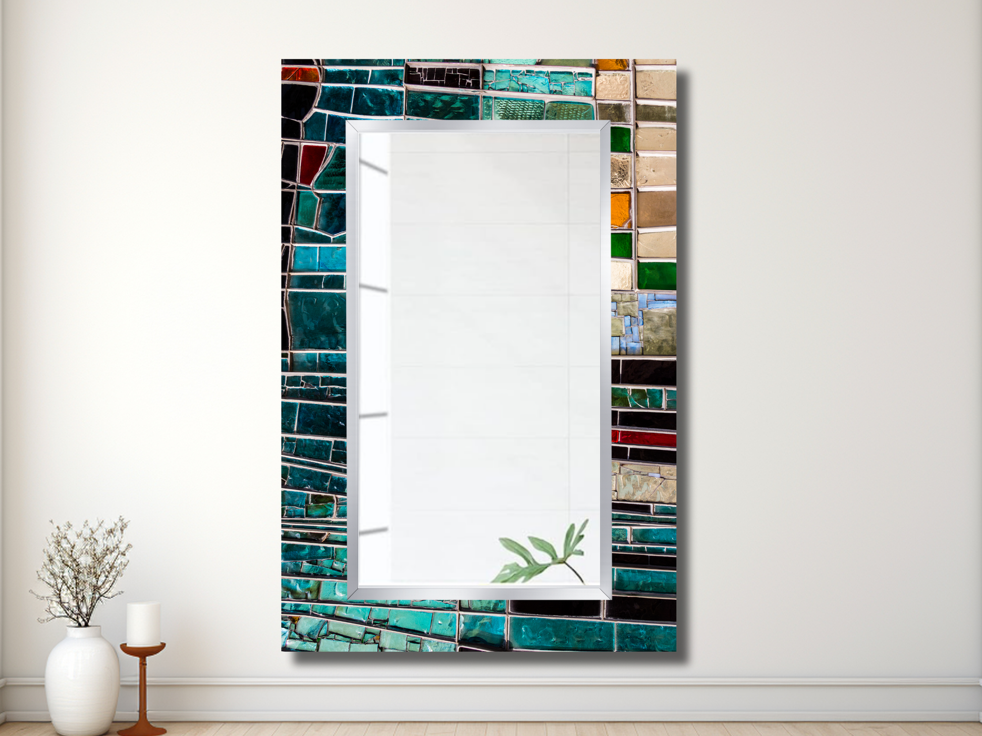 Renkli Vitray Desenli Ayna - Modern Tasarım Boy Aynası - Banyo Aynası - Çerçevesiz Ayna