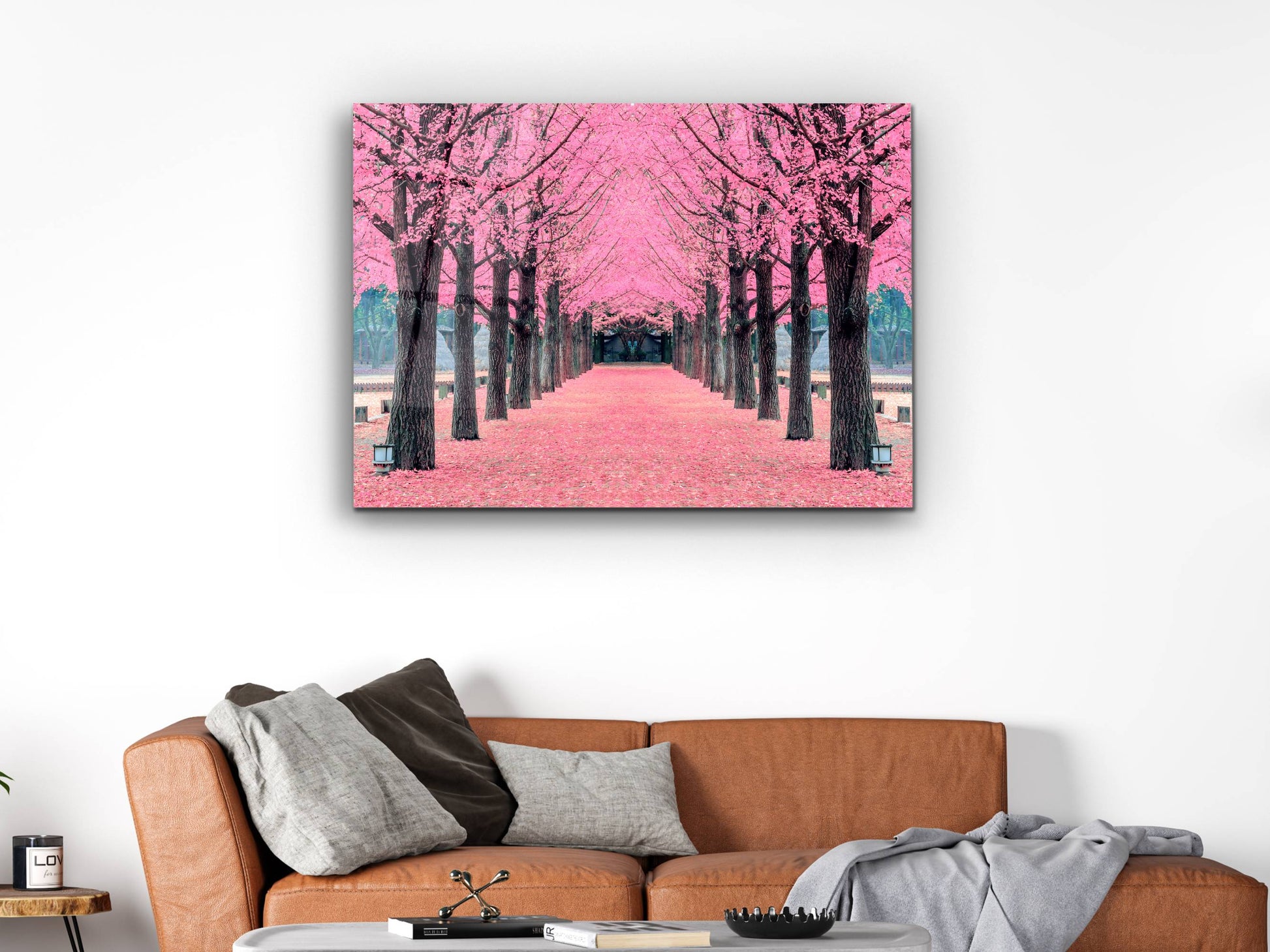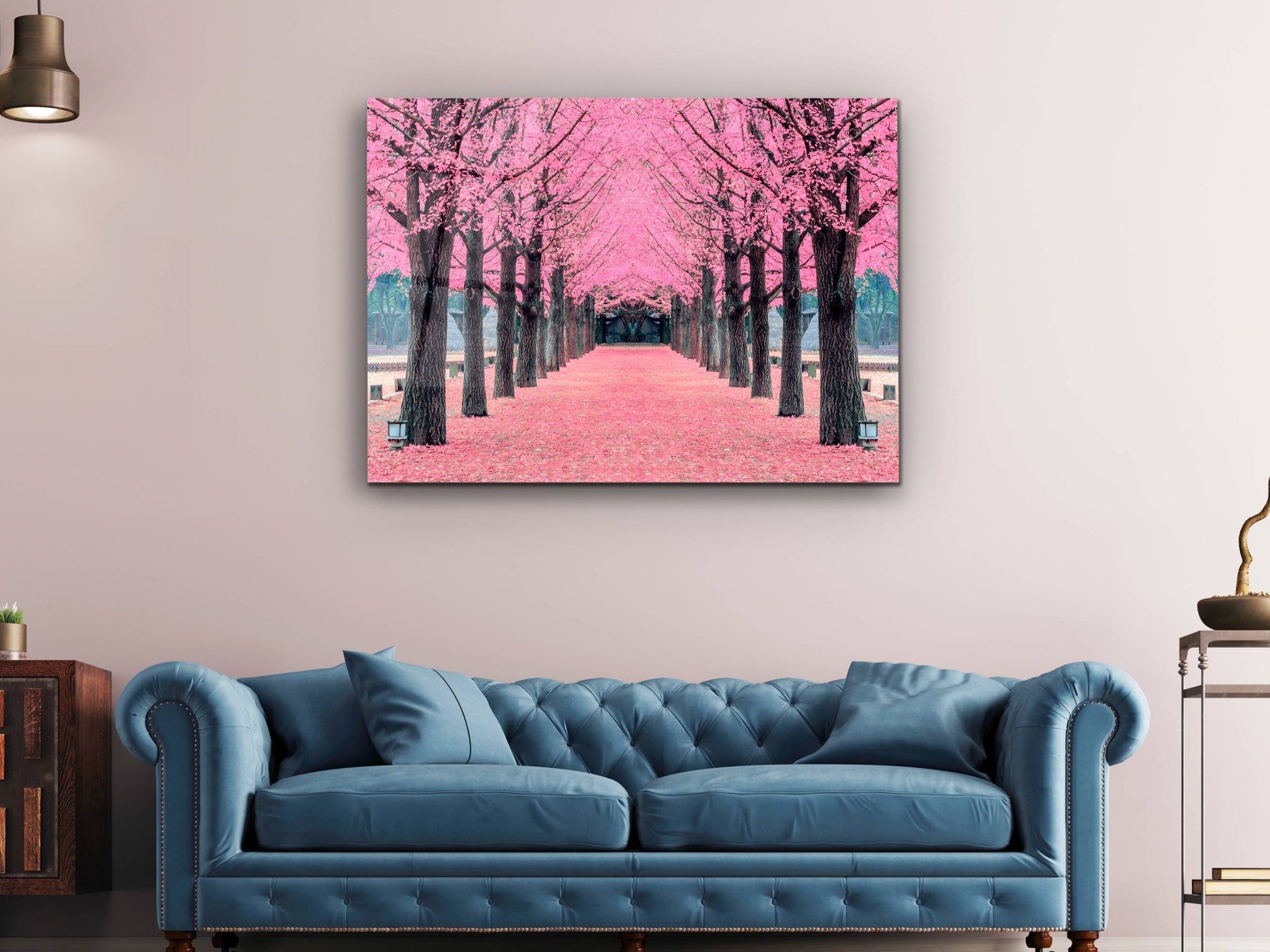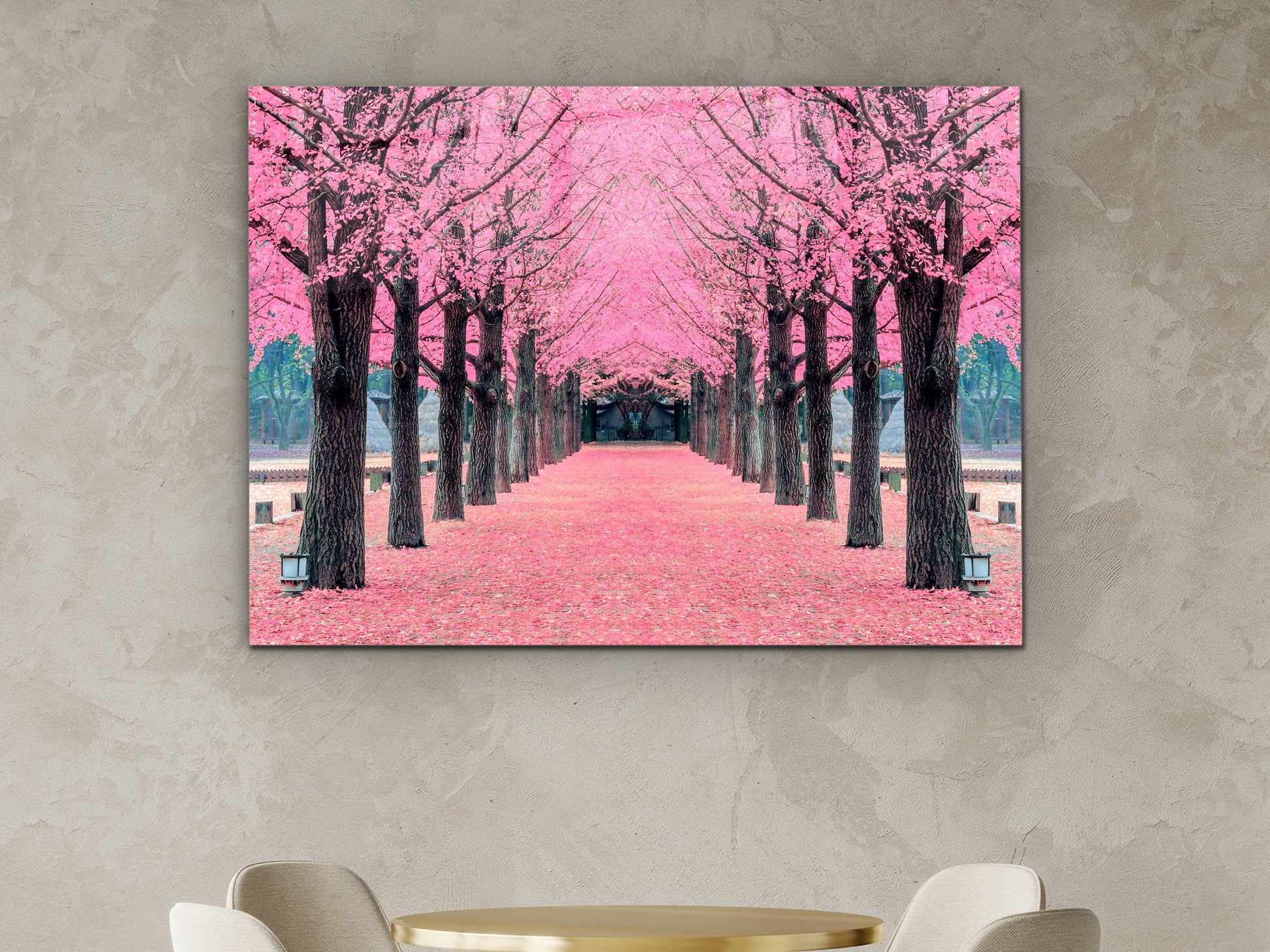 Sakura Ağaçları Bahar Cam Tablo – Modern Dekoratif Ev ve Ofis Tablosu