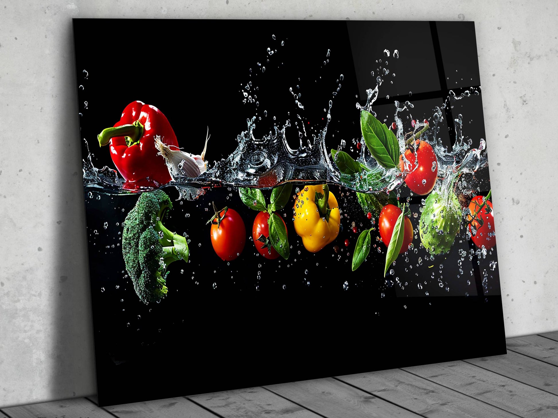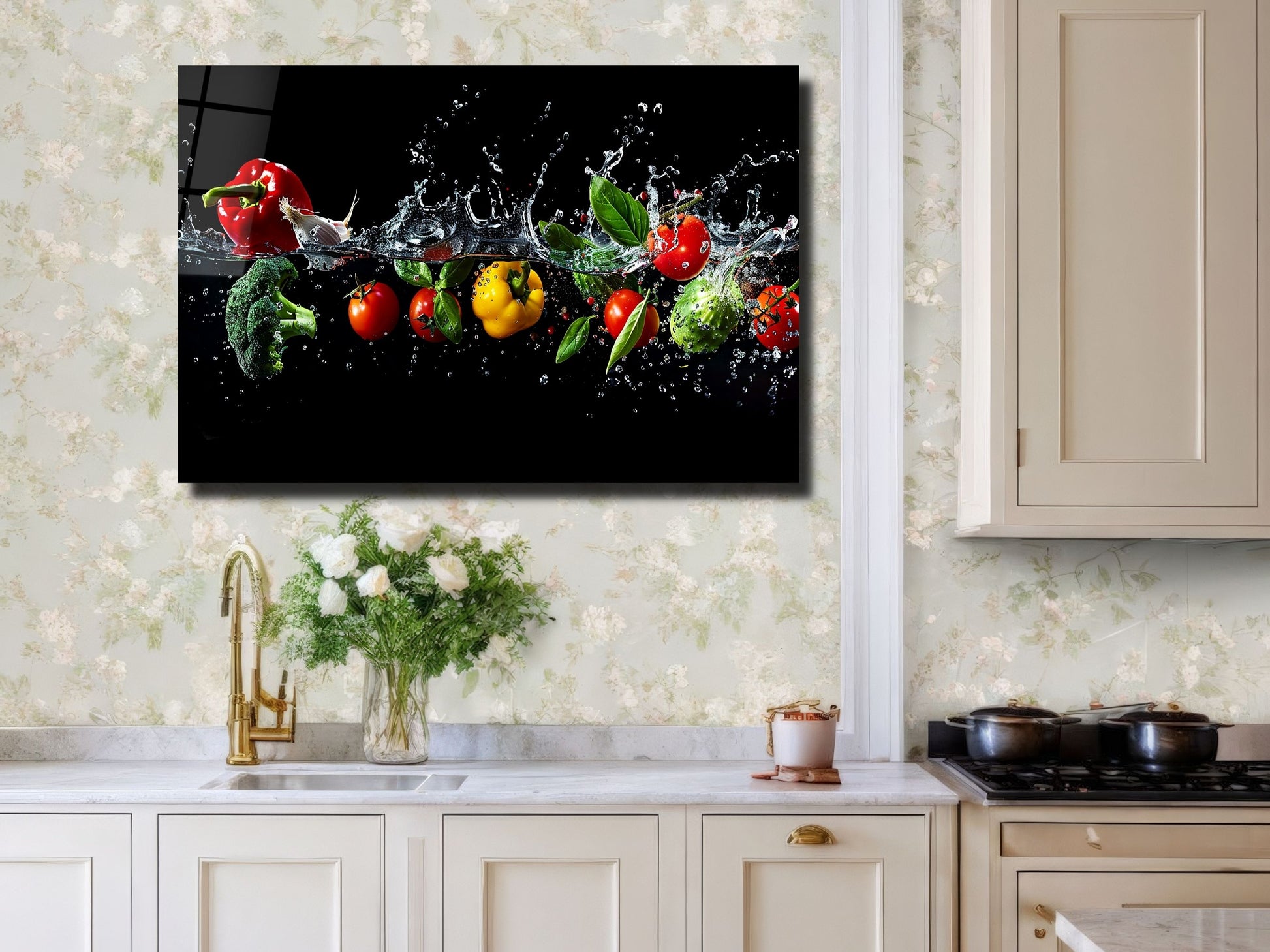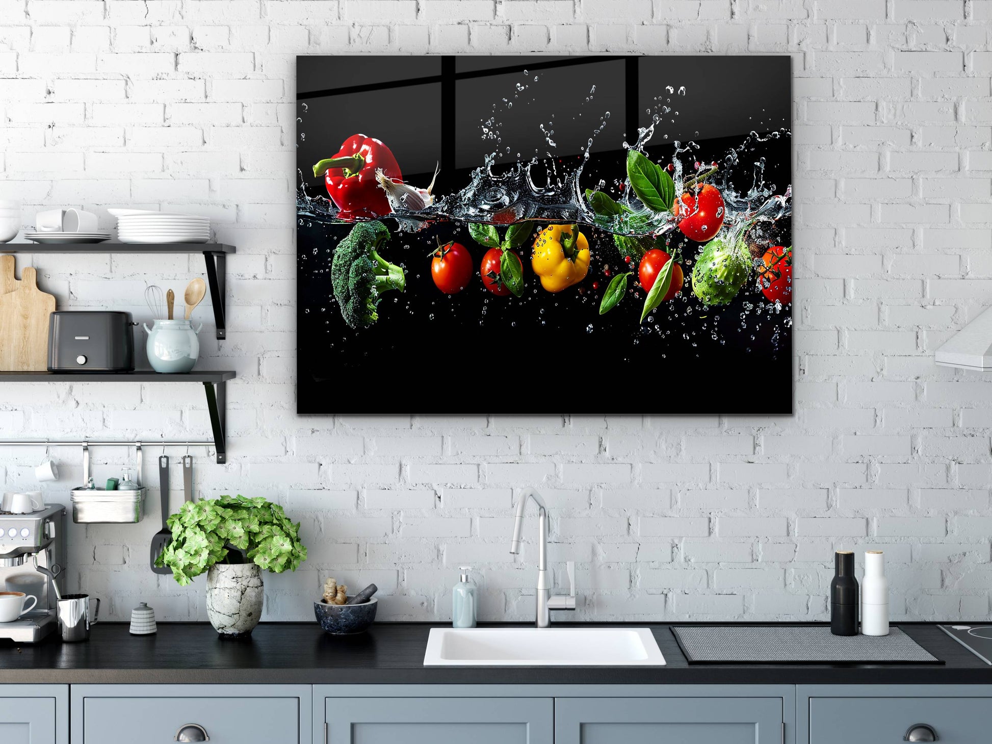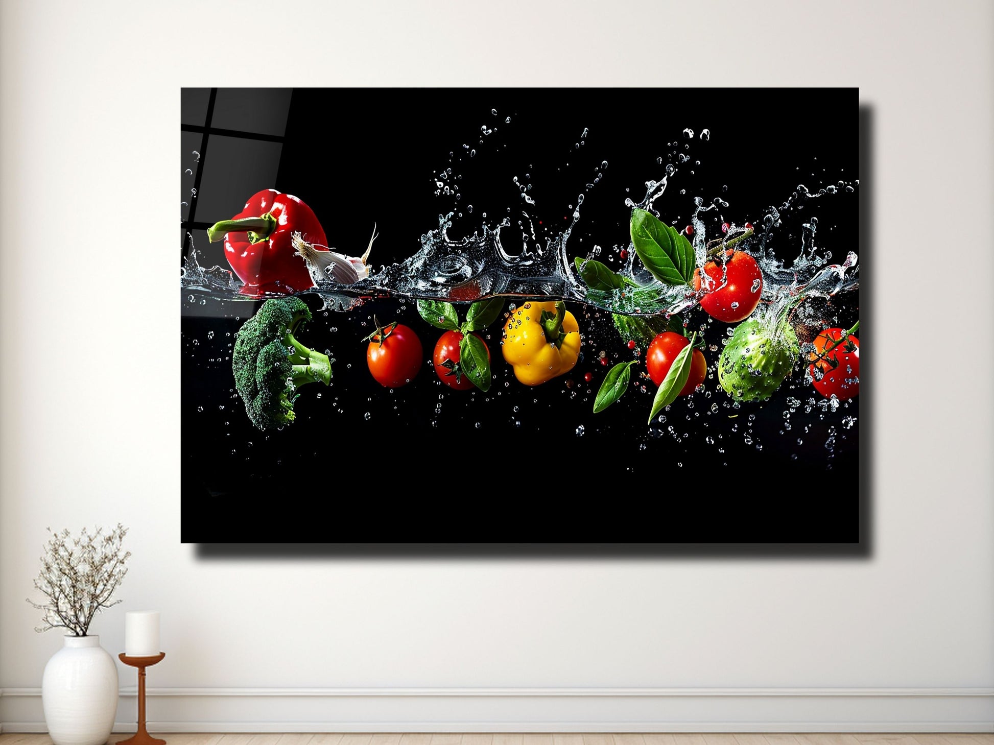Sebze Desen Cam Tablo - Mutfak Dekoratif Tablo