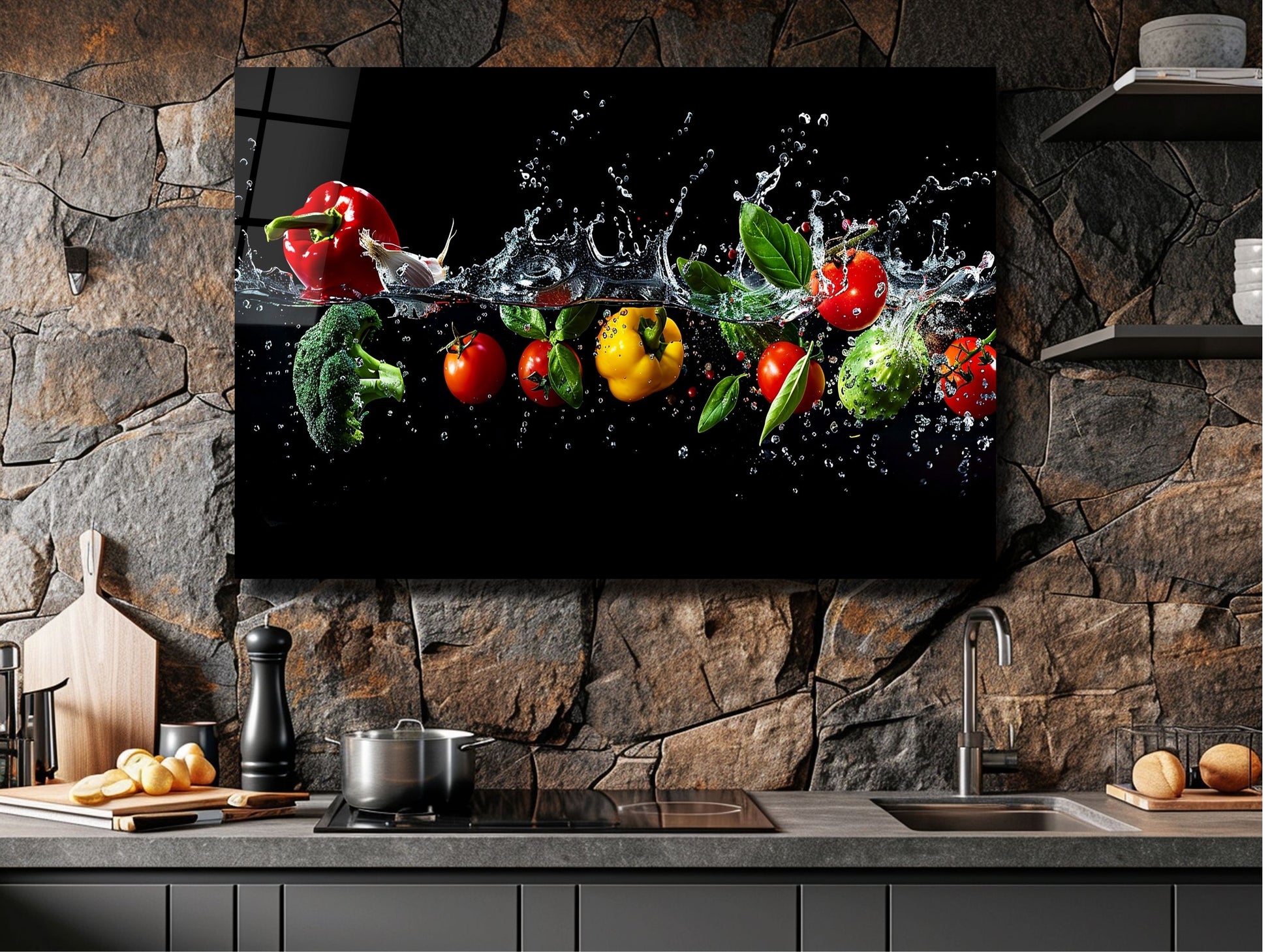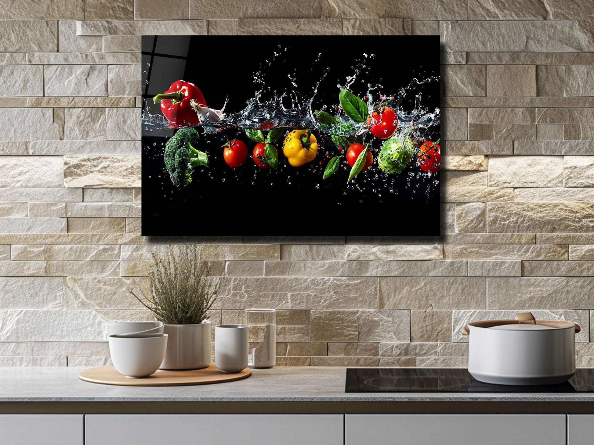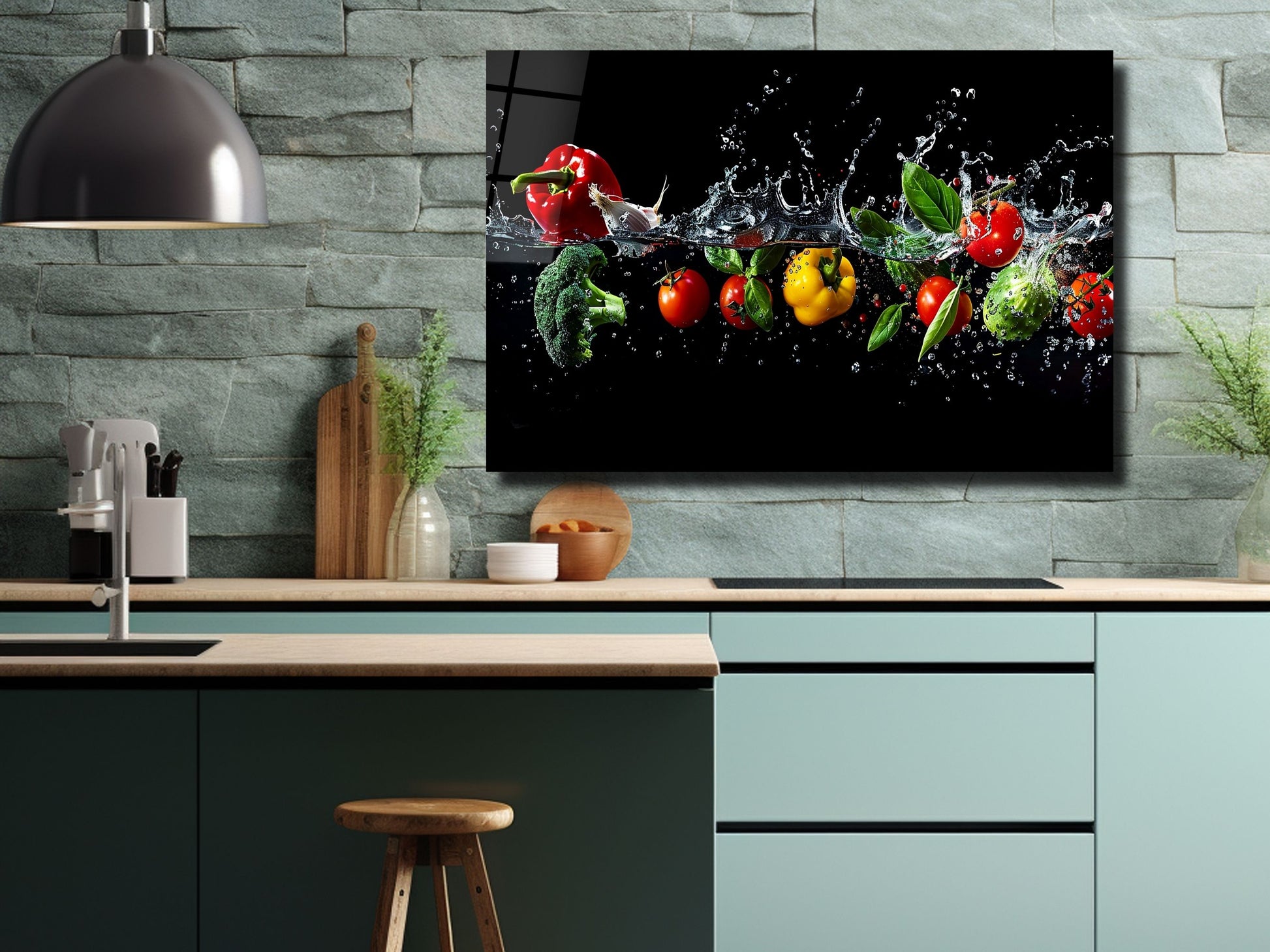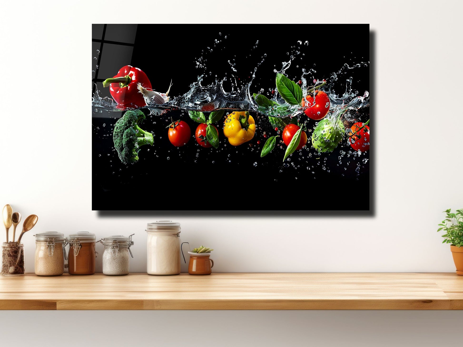 Sebze Desen Cam Tablo - Mutfak Dekoratif Tablo