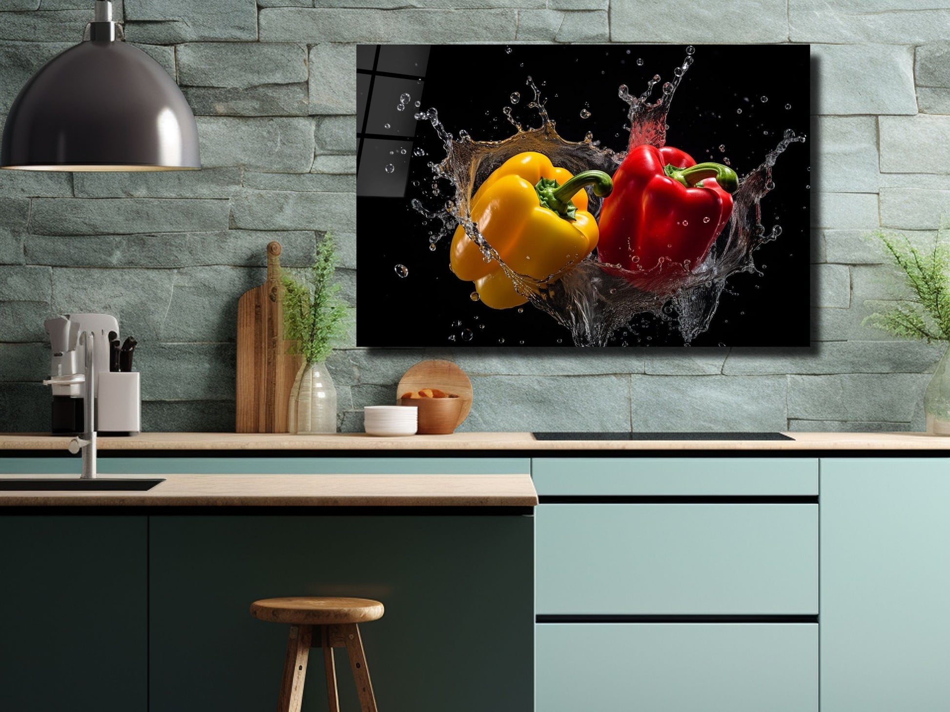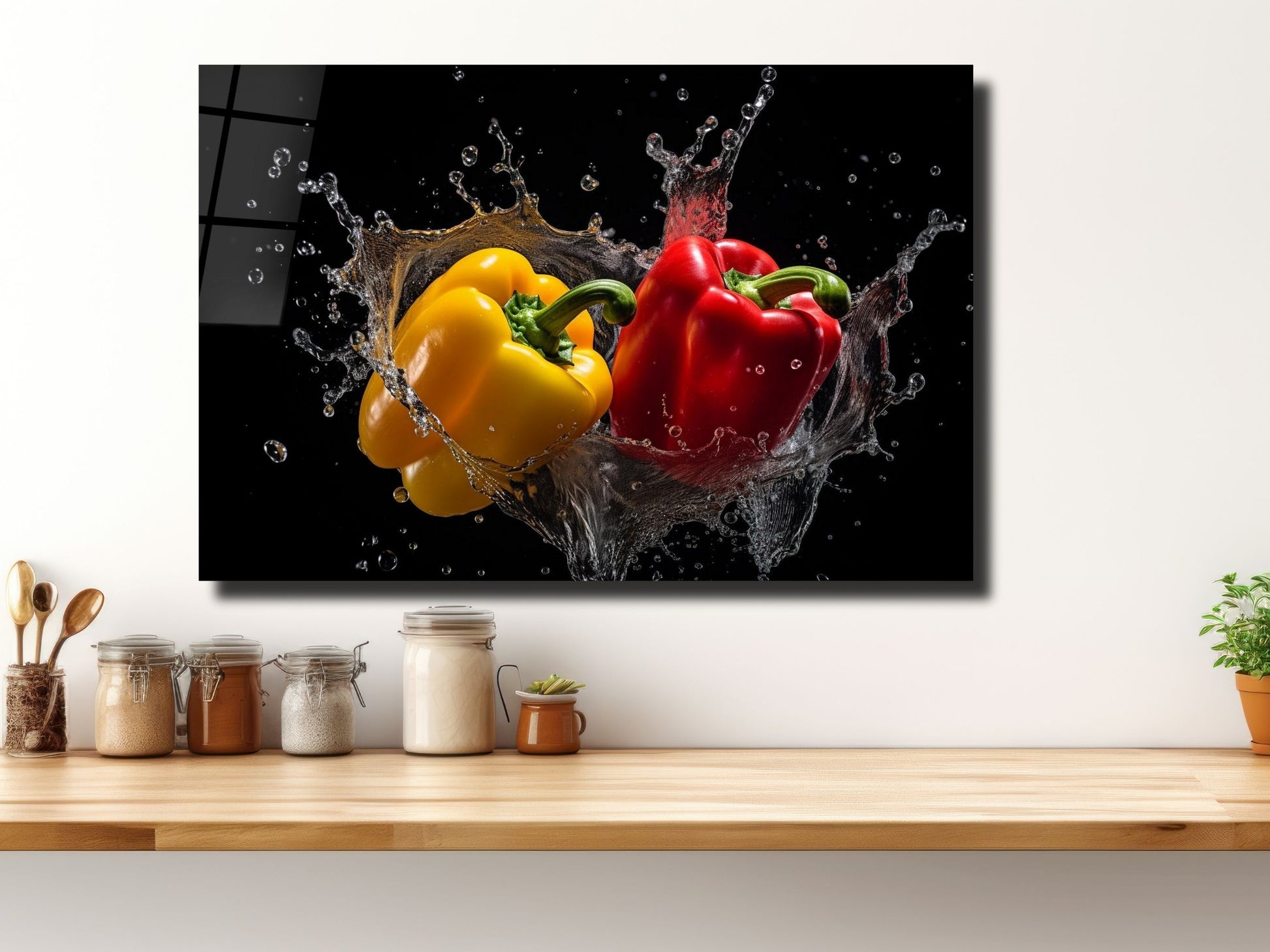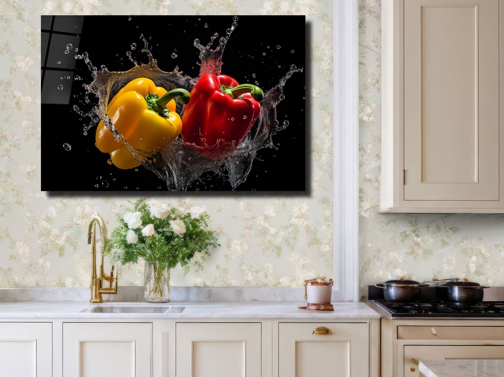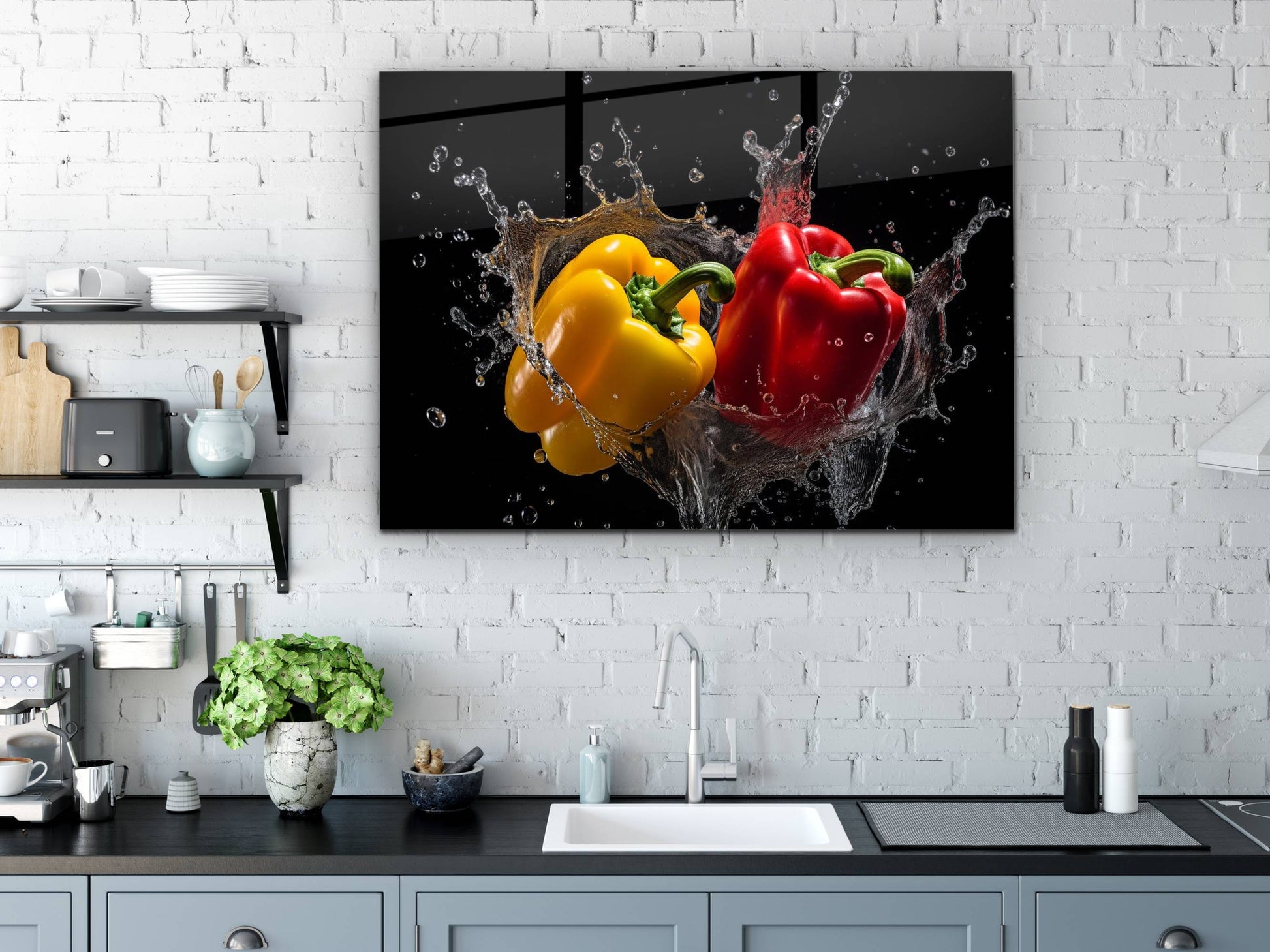 Sebze Desen Cam Tablo - Mutfak Dekoratif Tablo