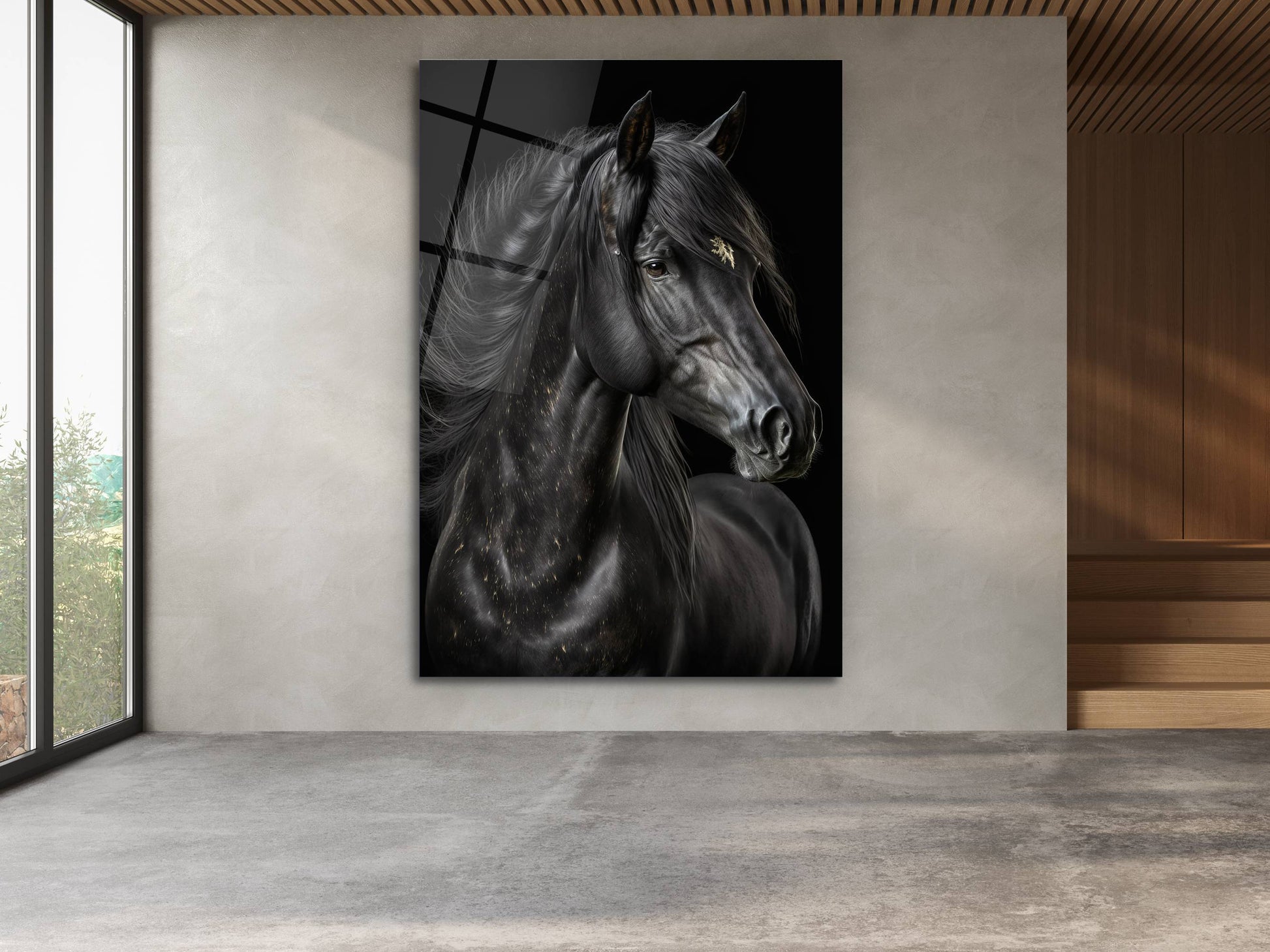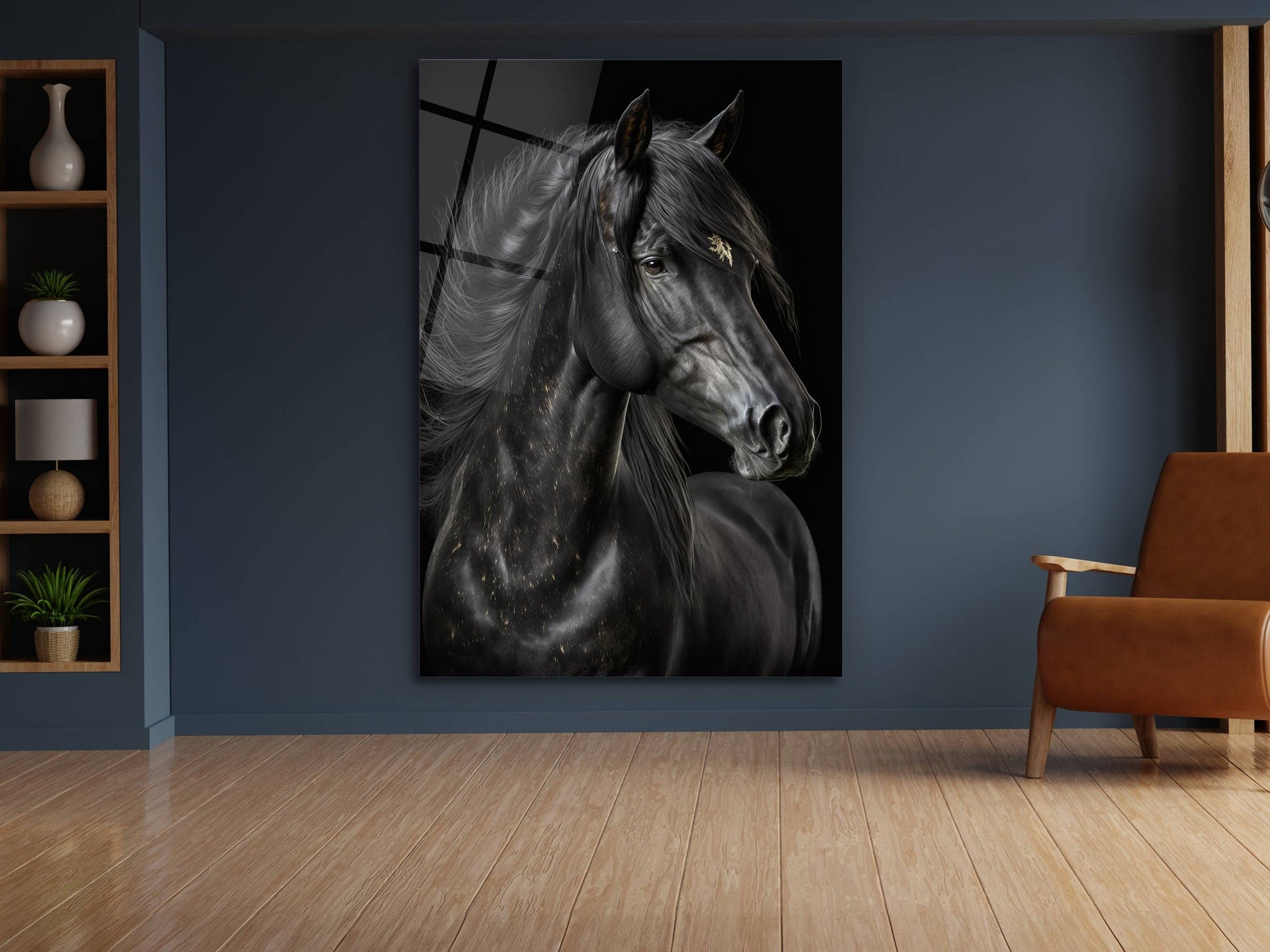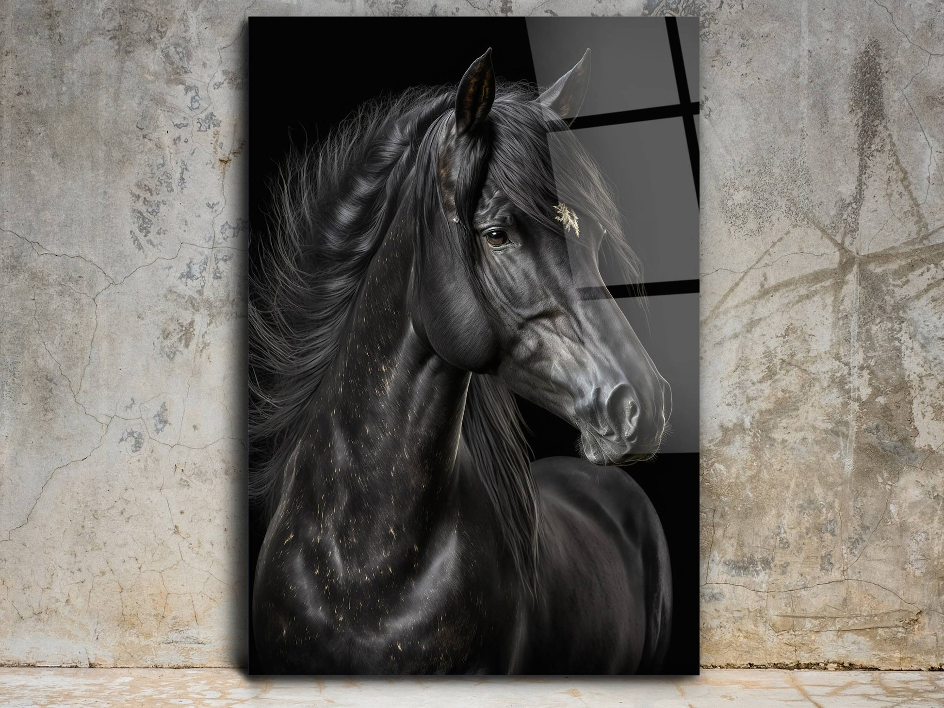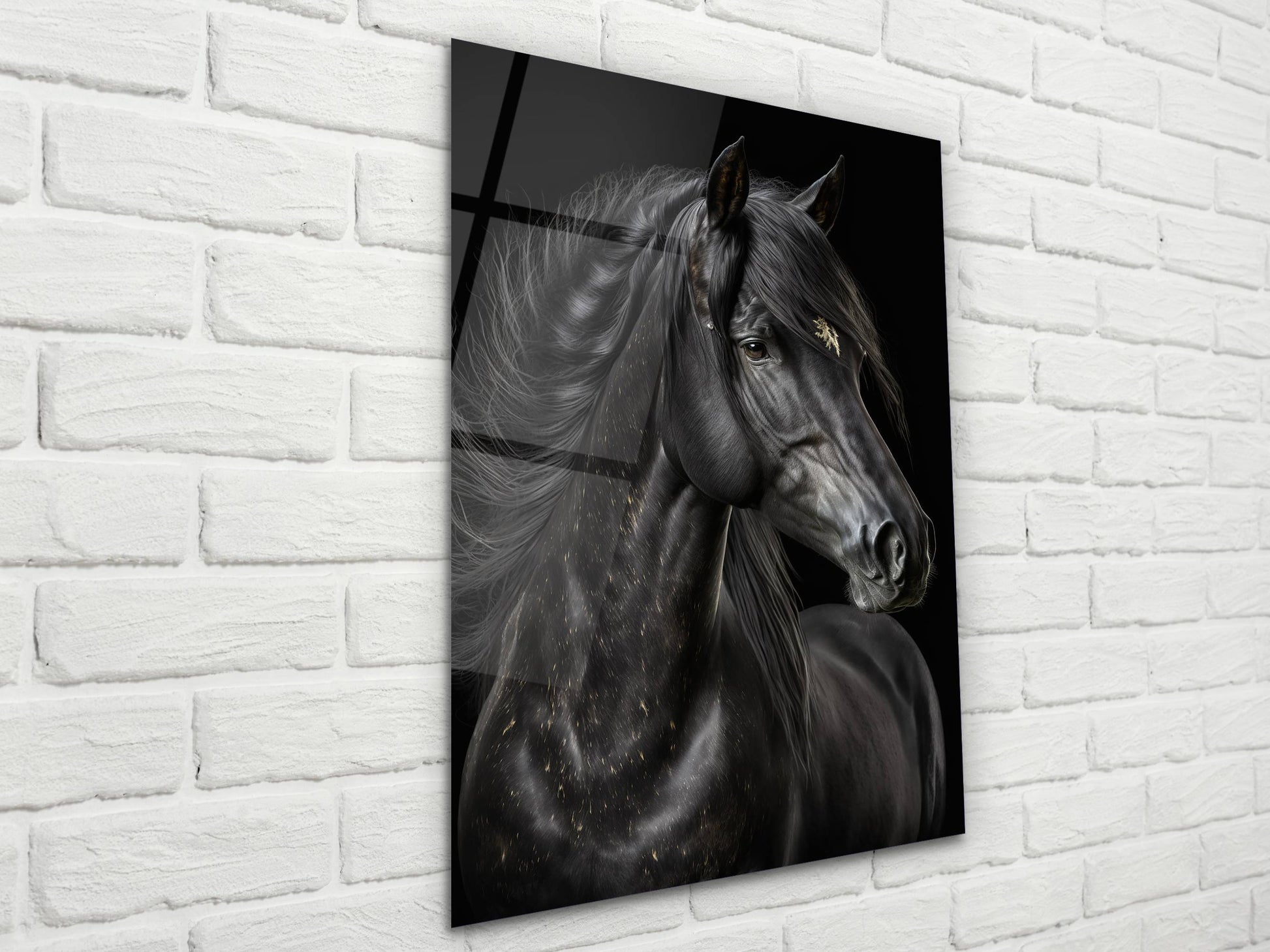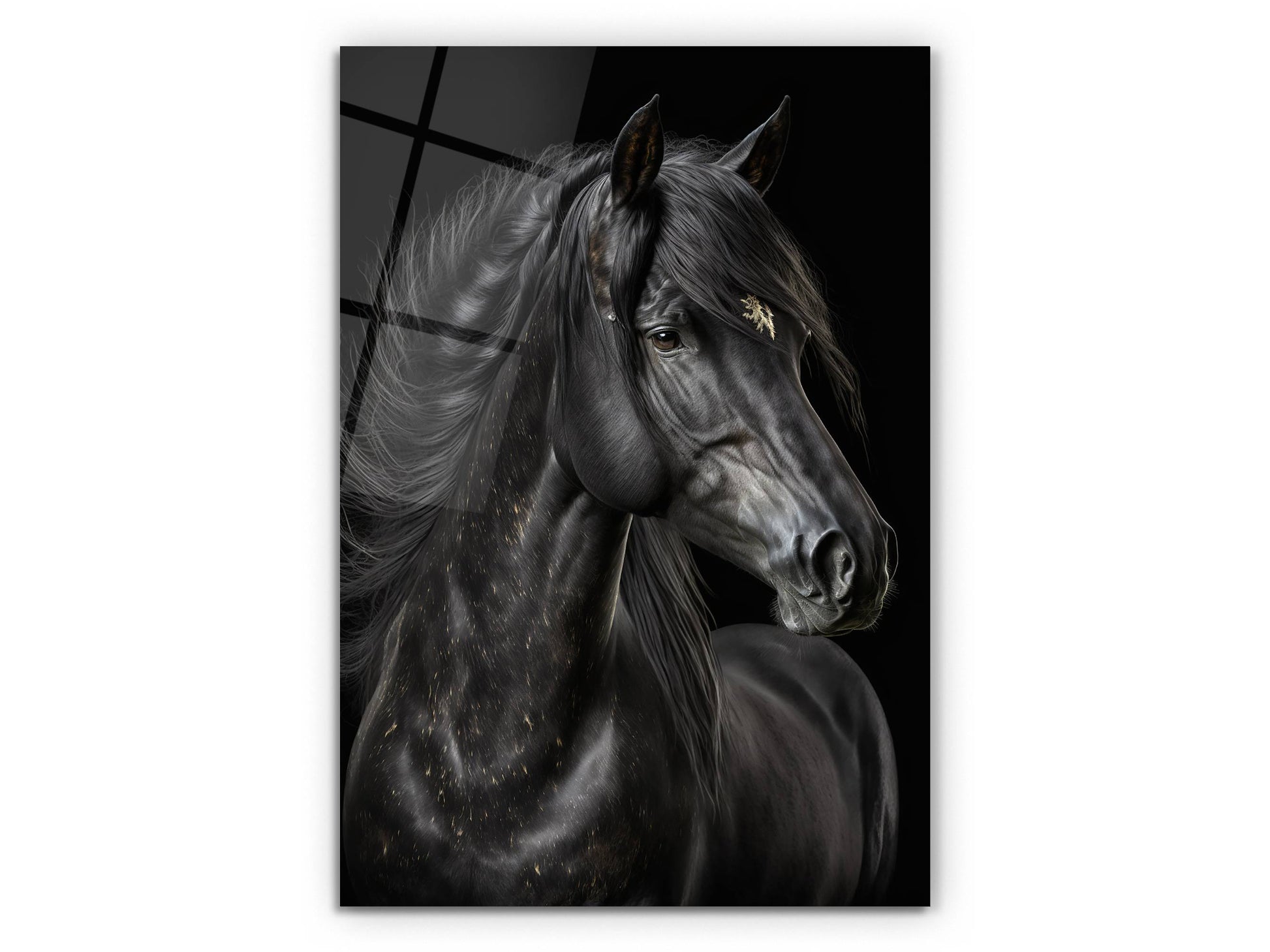 Siyah At Portresi Cam Tablo - Ev ve Ofis Duvar Dekoru