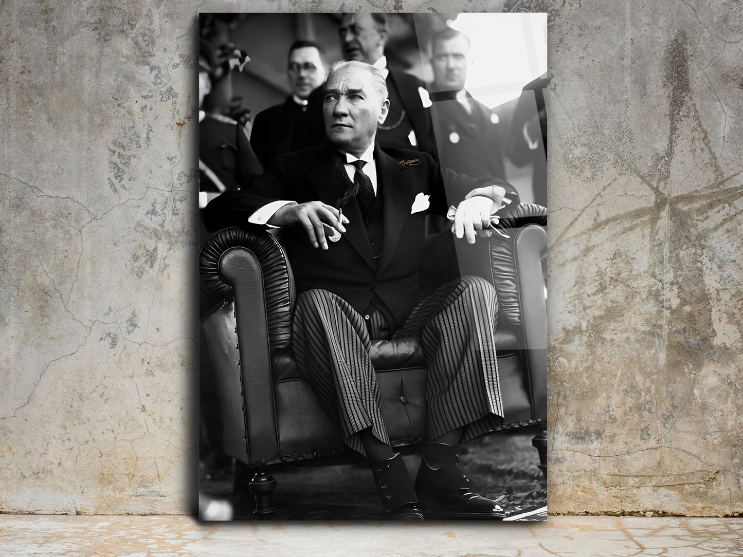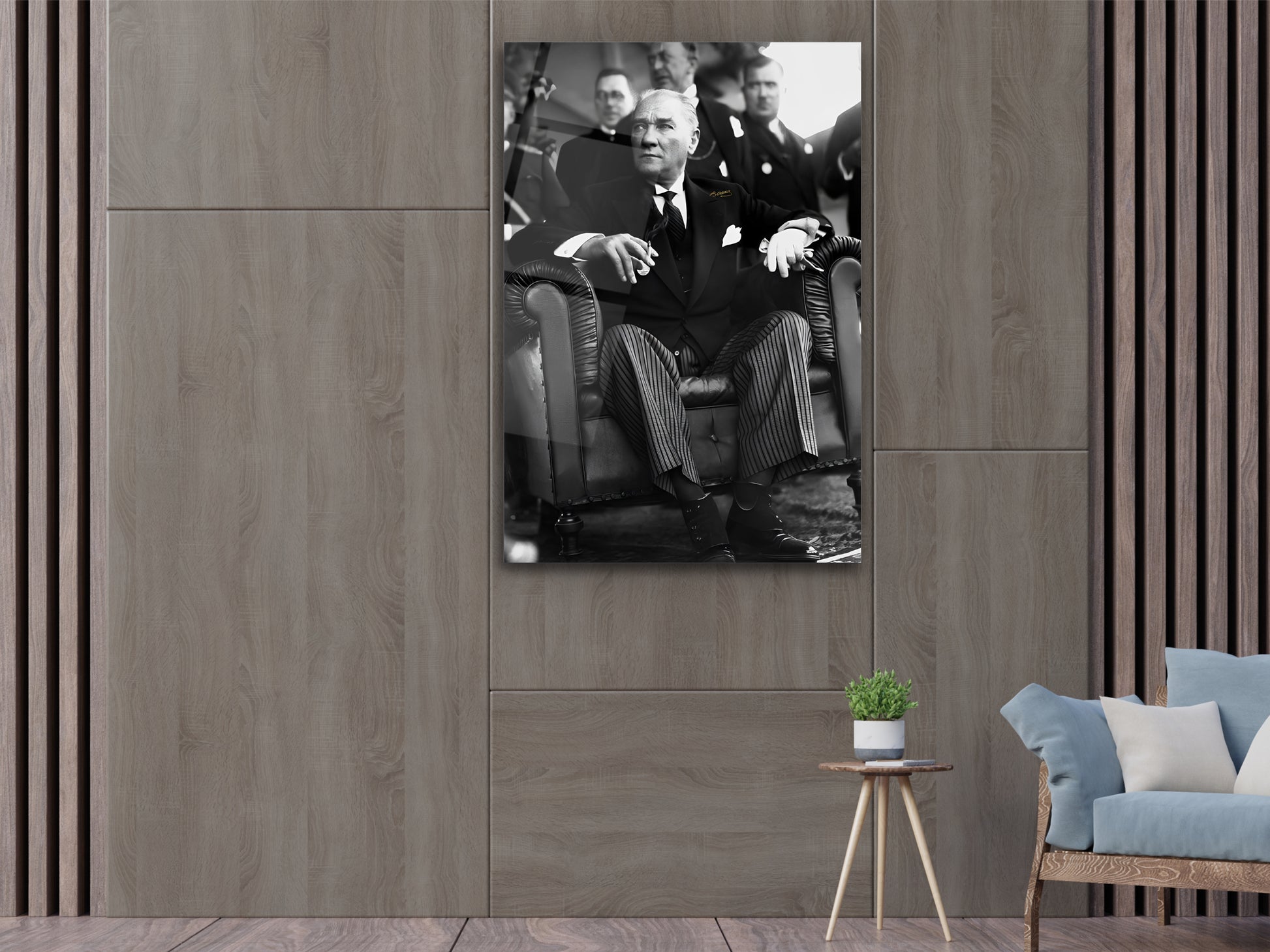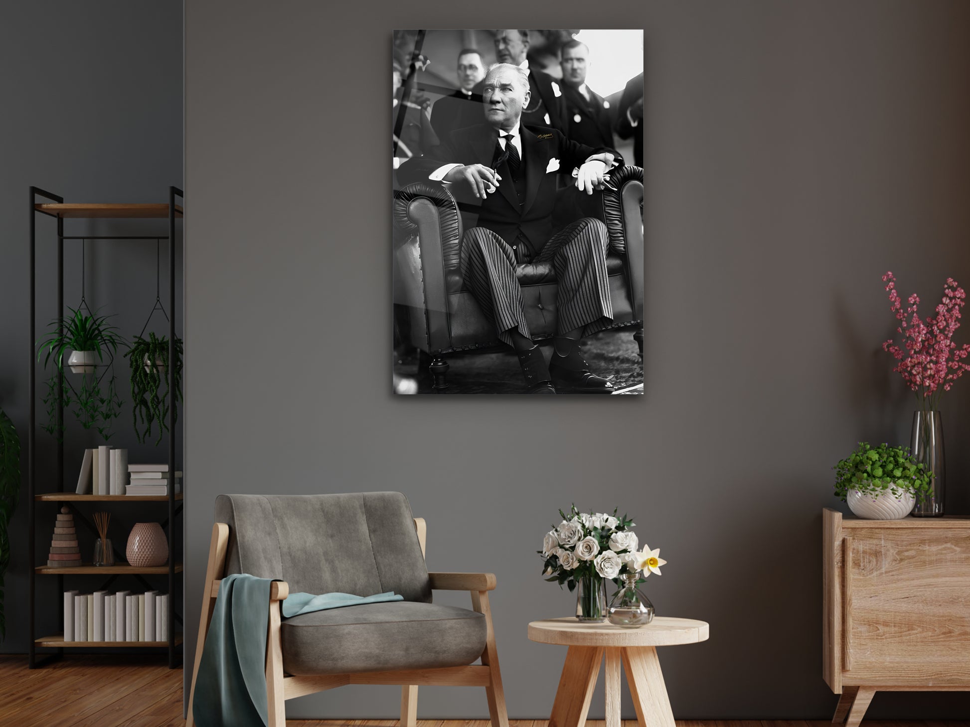 Siyah Beyaz Atatürk Cam Tablo – Nostaljik Atatürk Tablosu - Modern Ev ve Ofis Dekoru