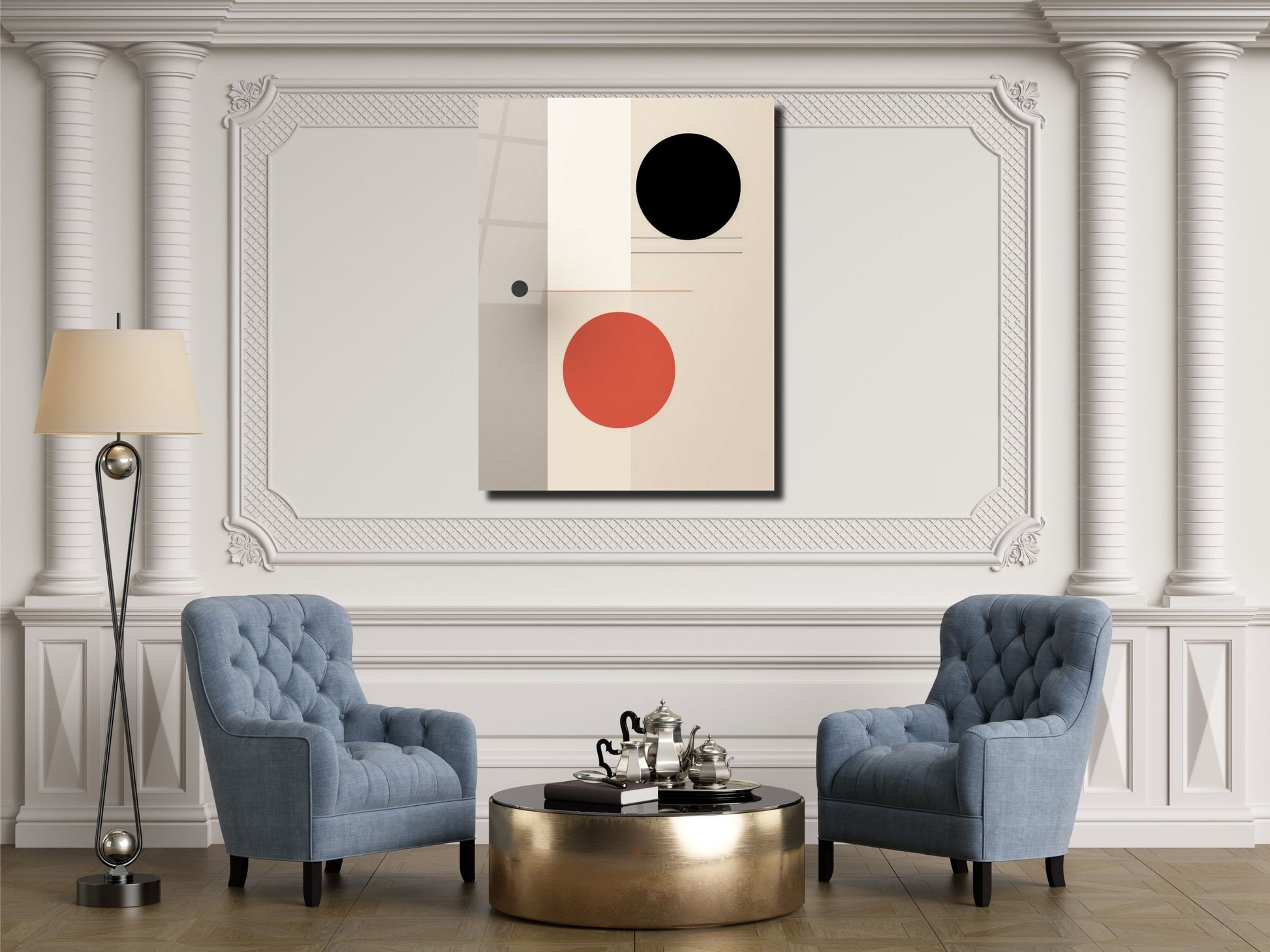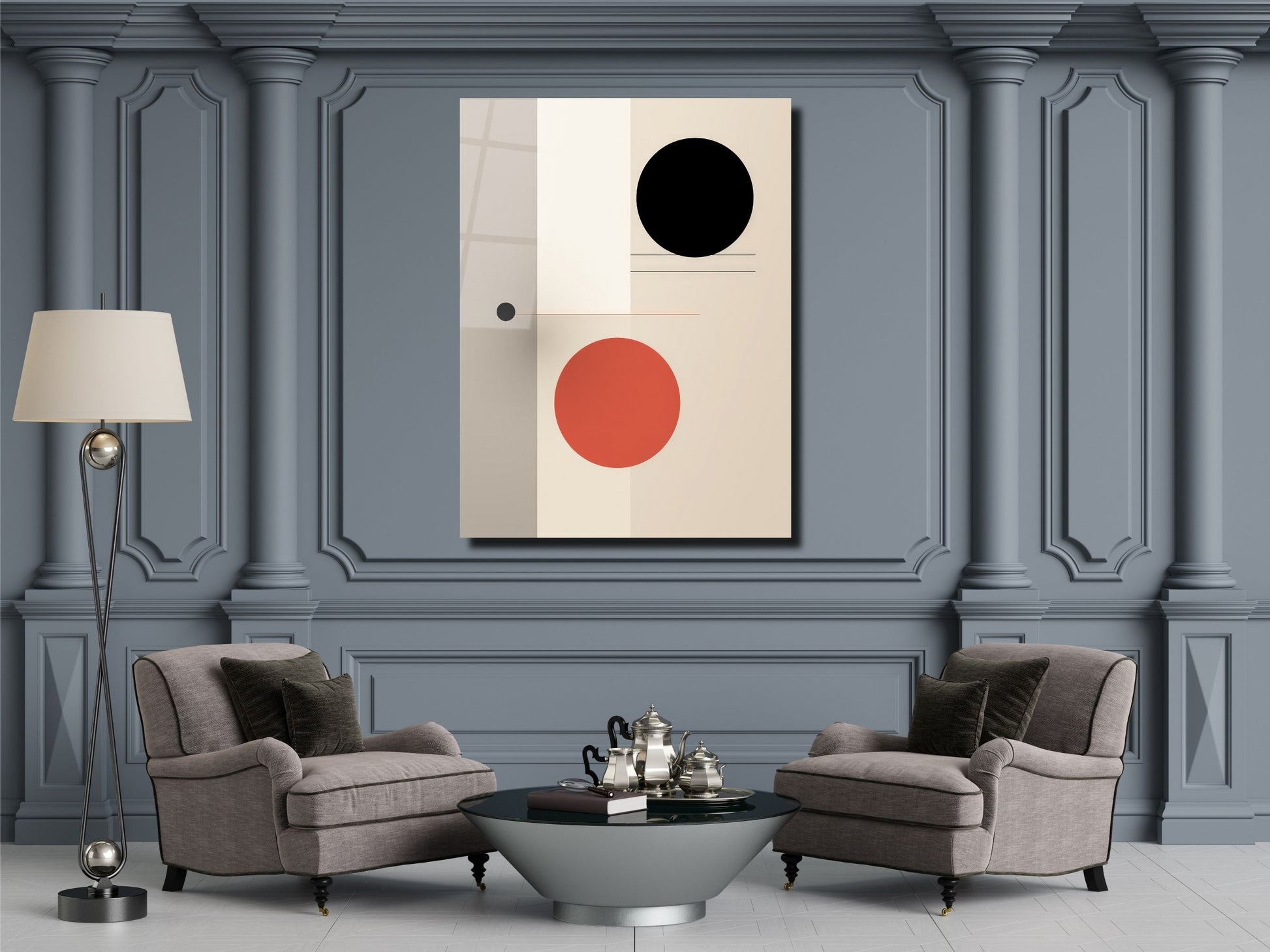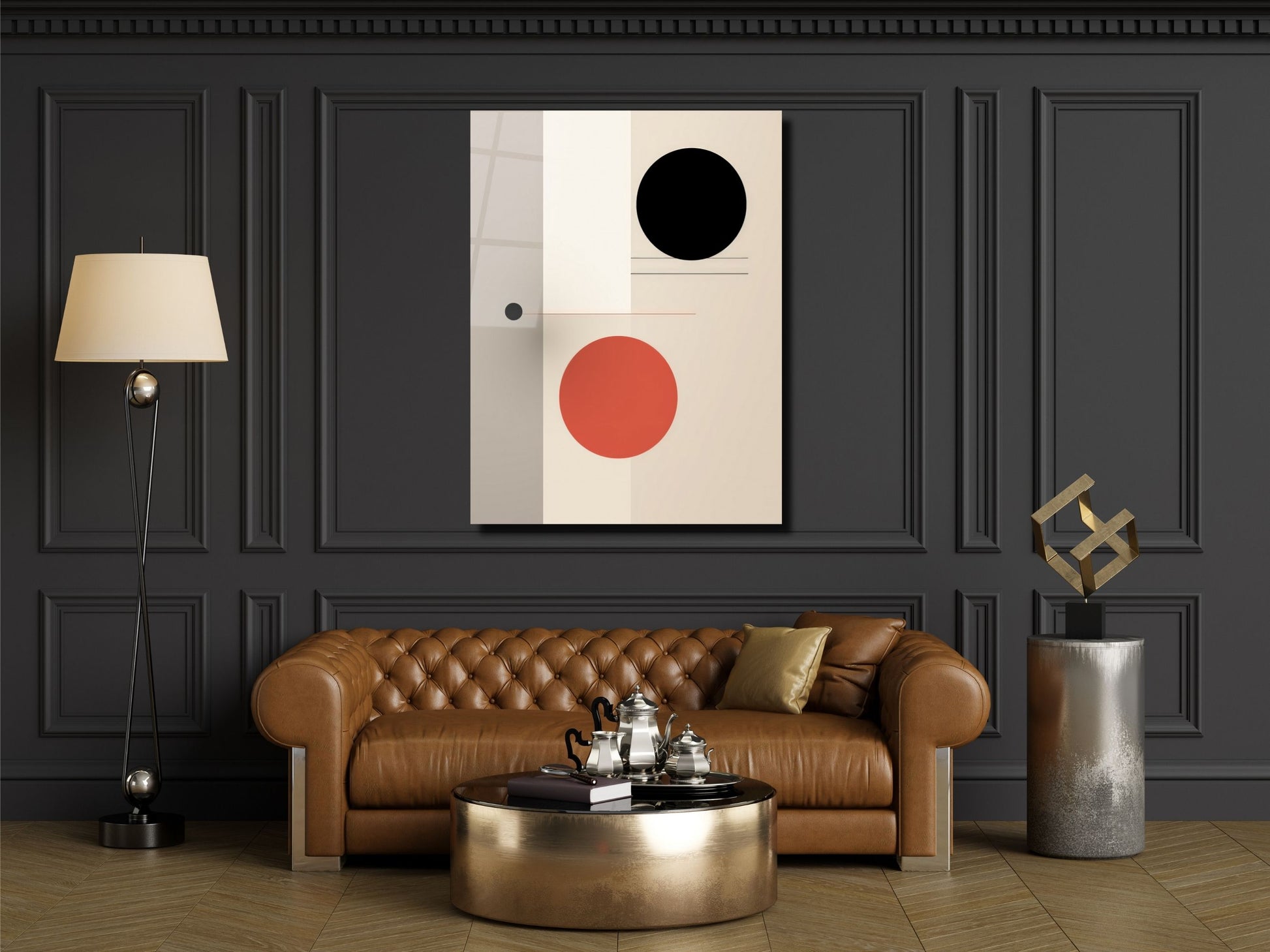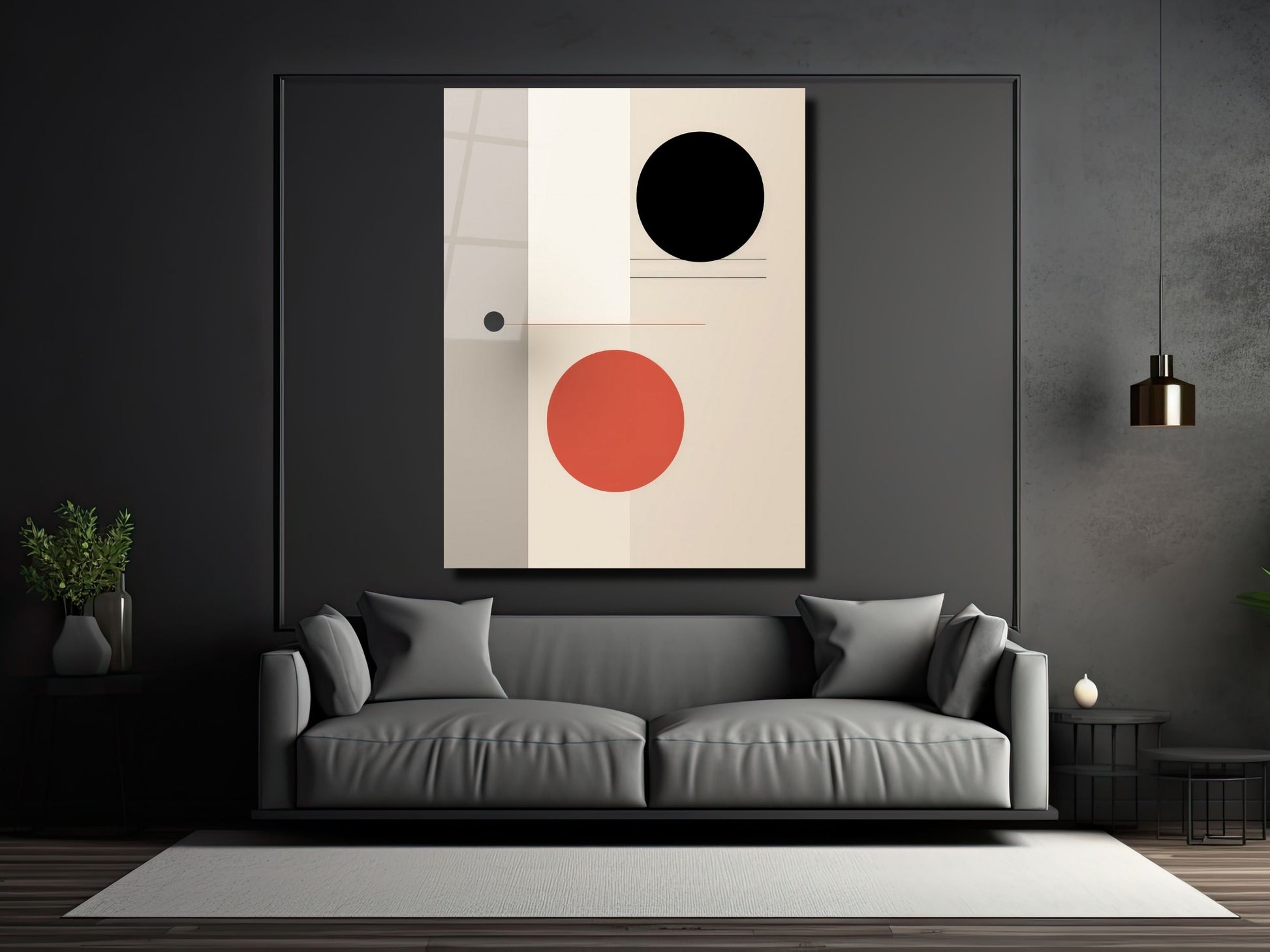 Siyah & Kiremit Renkli Daireler Cam Tablo – Minimalist Ev Dekoru