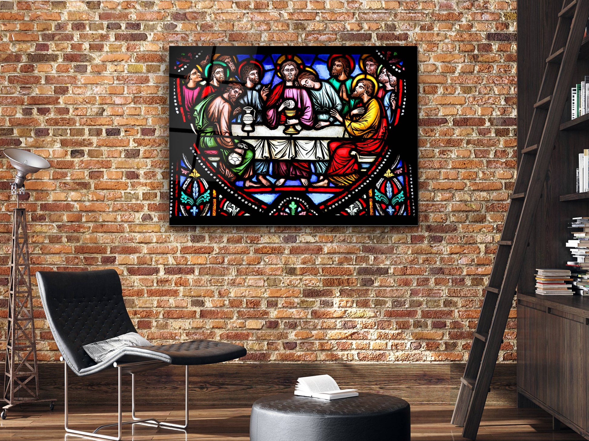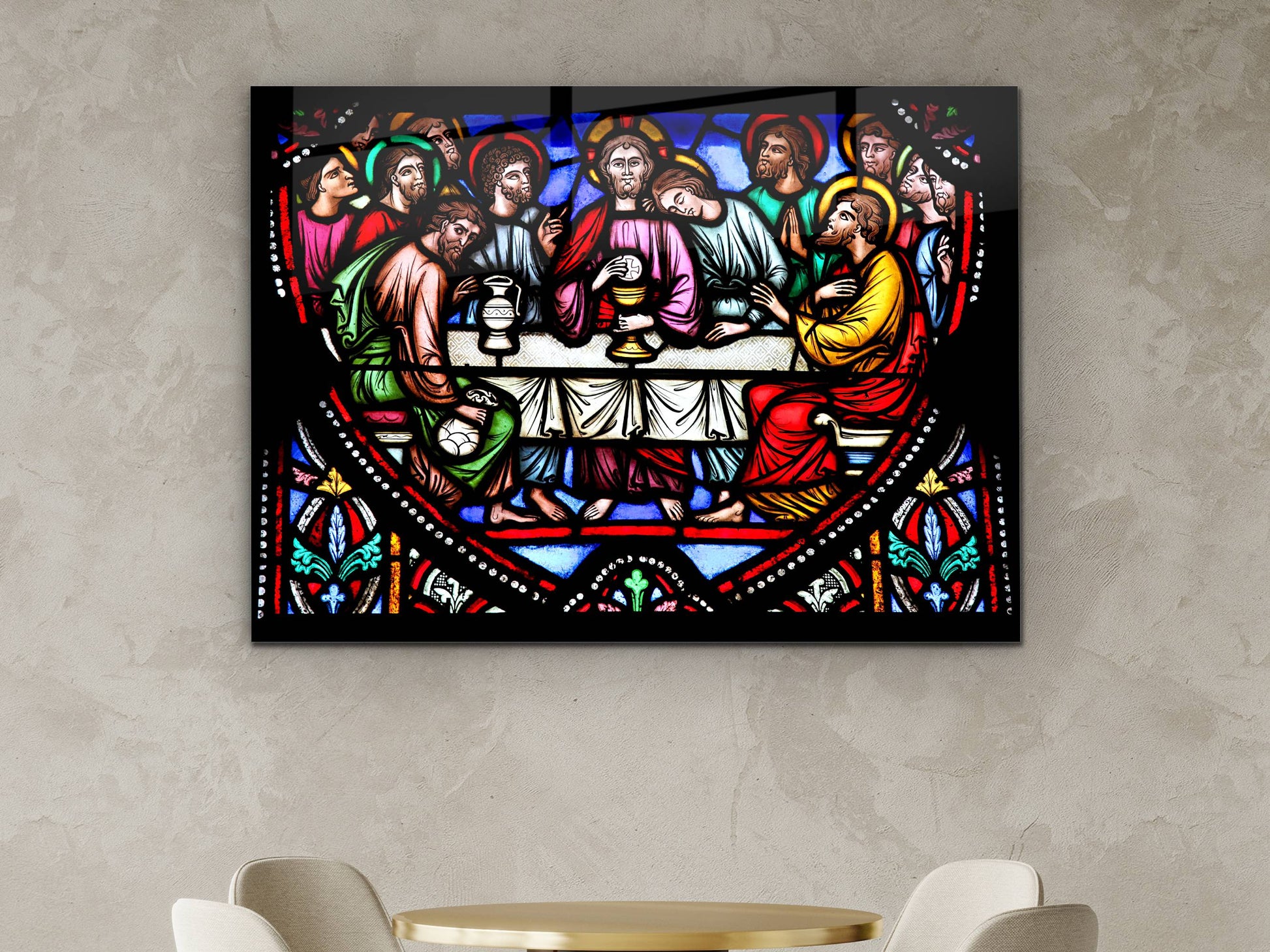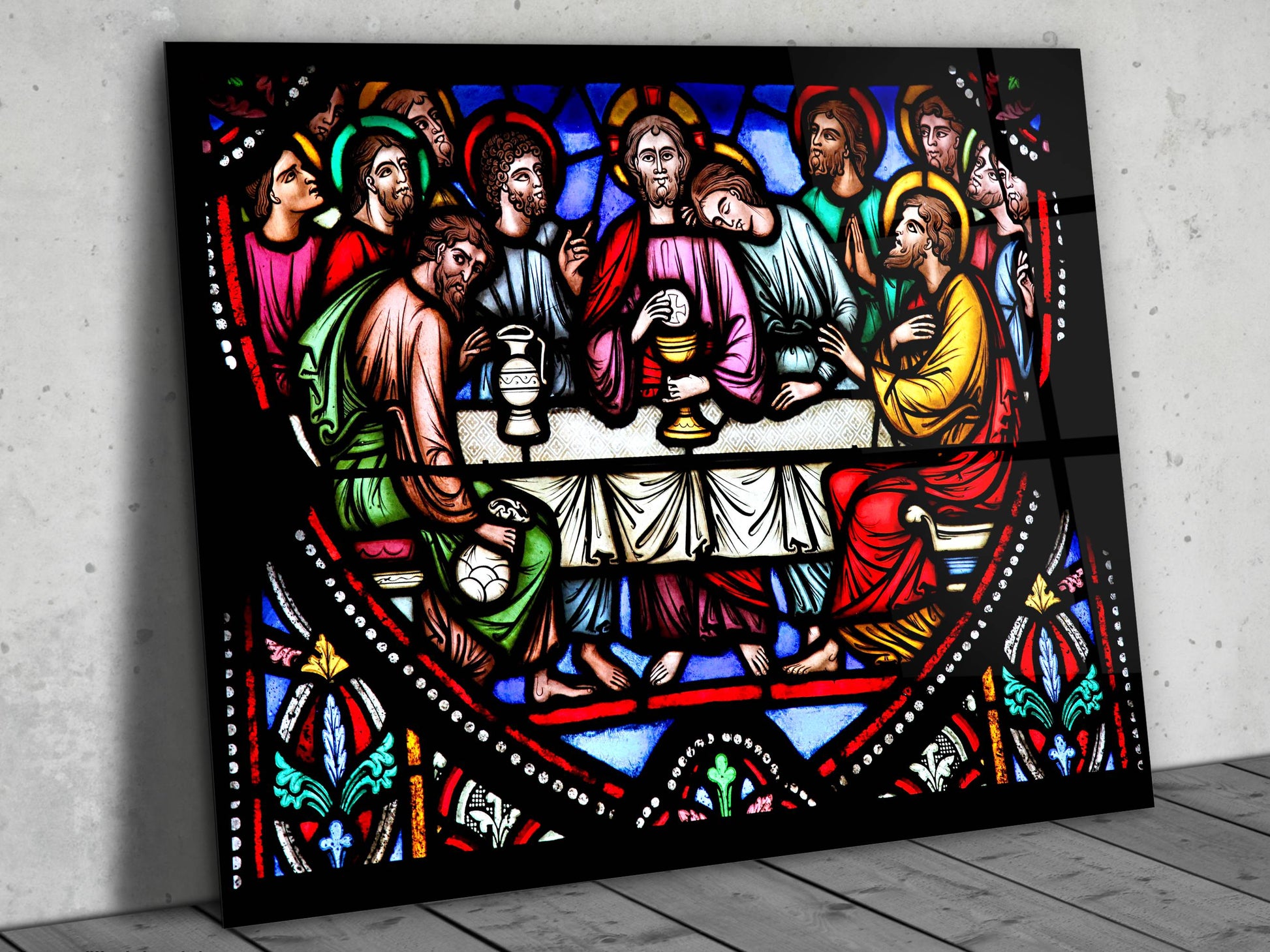 Son Akşam Yemeği Temalı Vitray Cam Tablo - Klasik Vitray Duvar Dekoru
