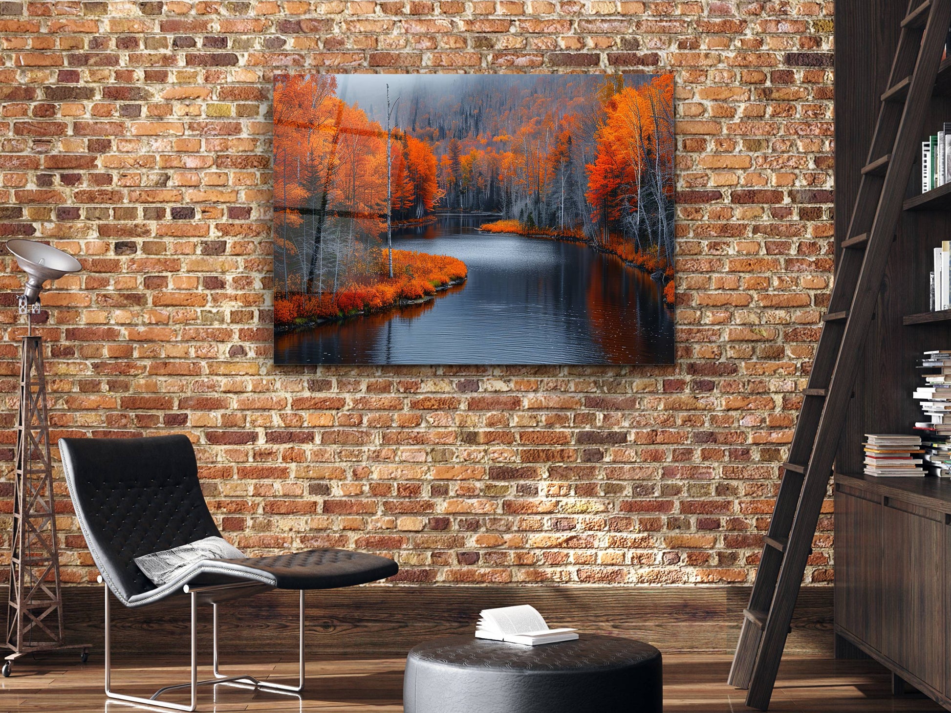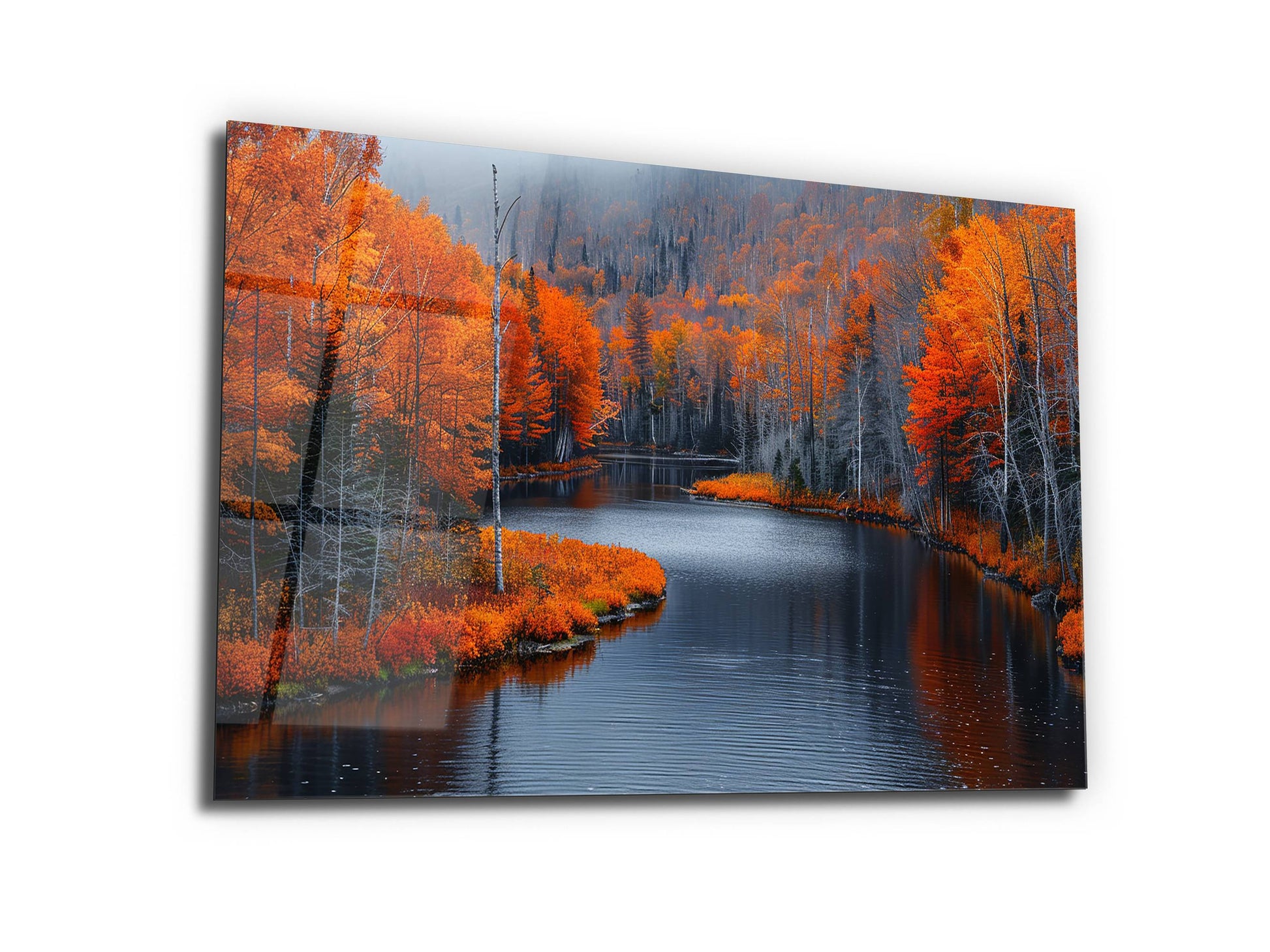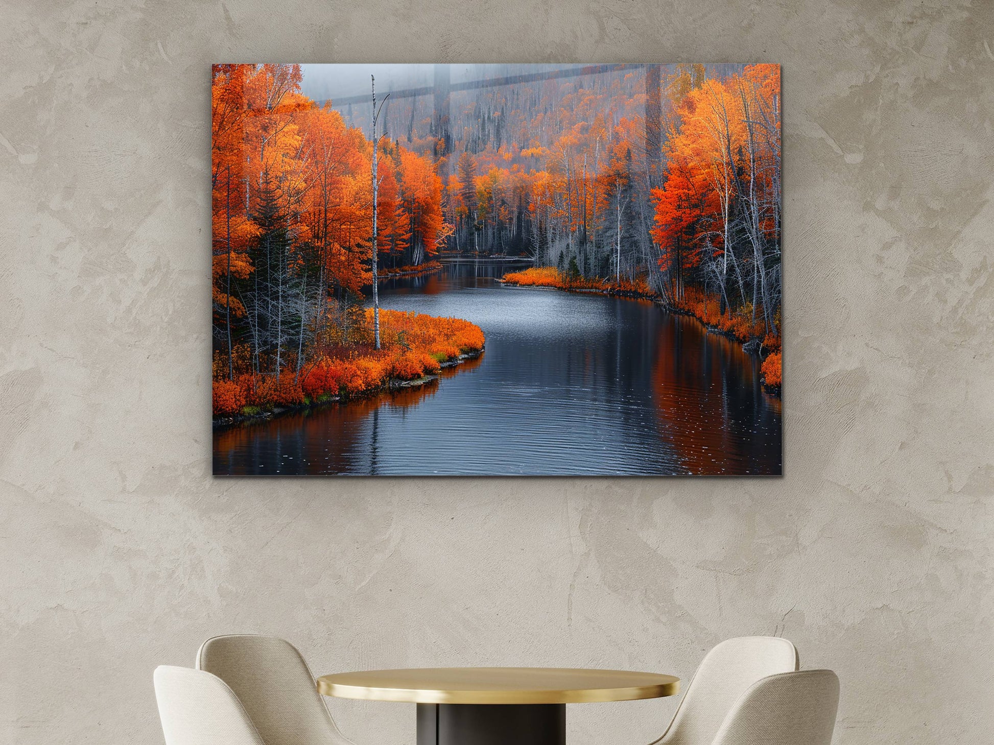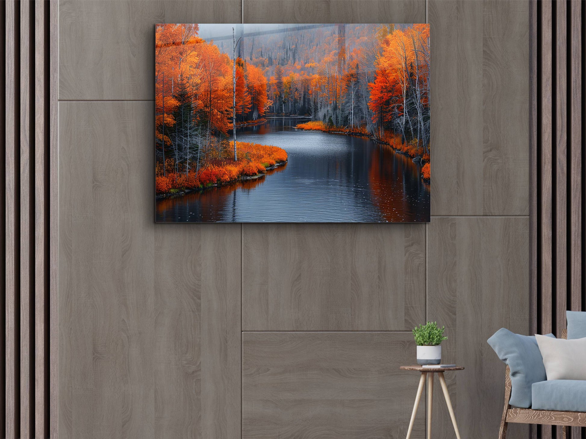 Sonbahar Manzaralı Nehir Cam Tablo - Doğa Temalı Duvar Dekoru