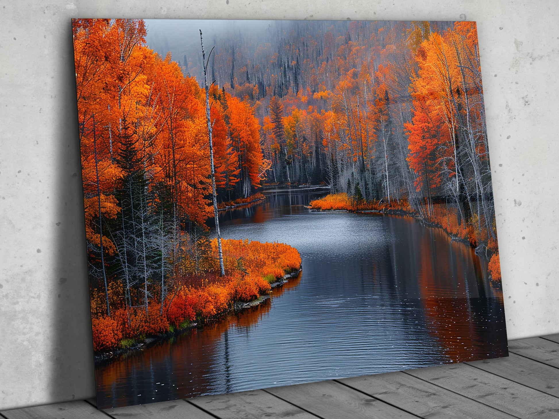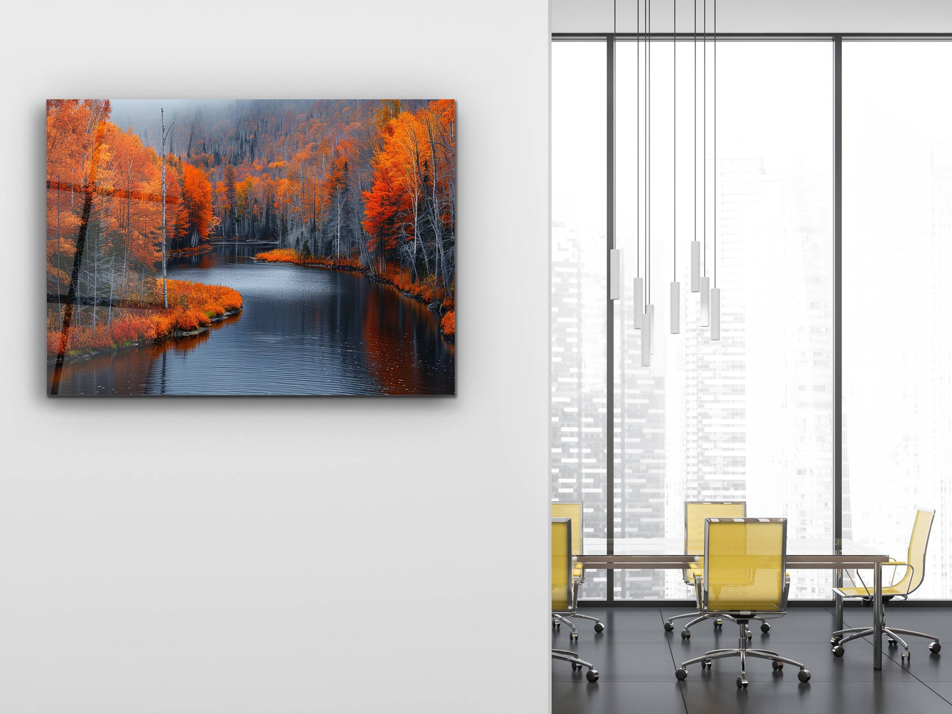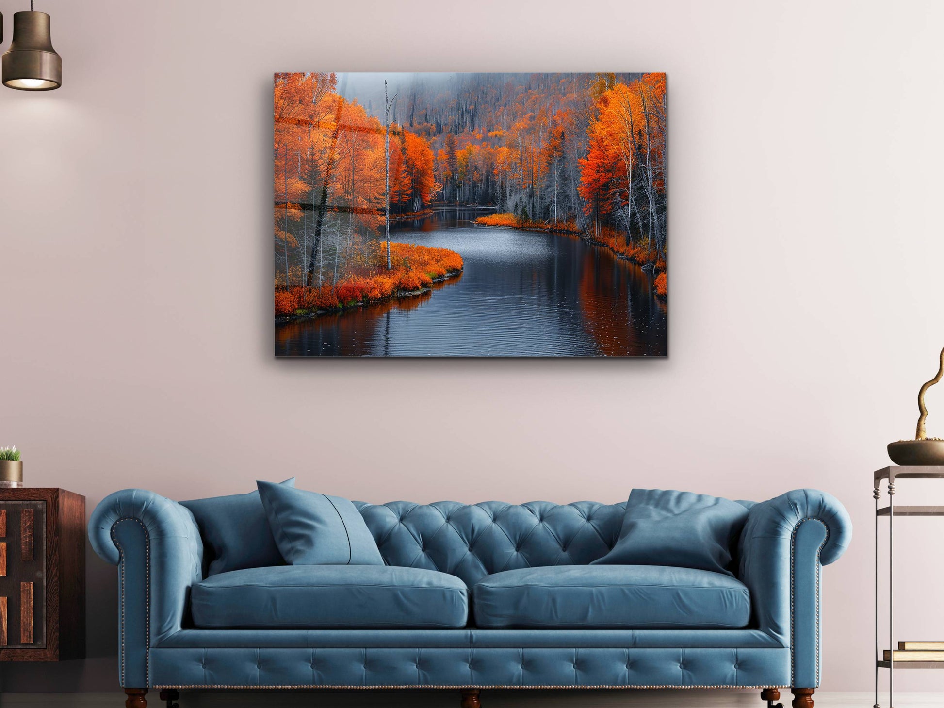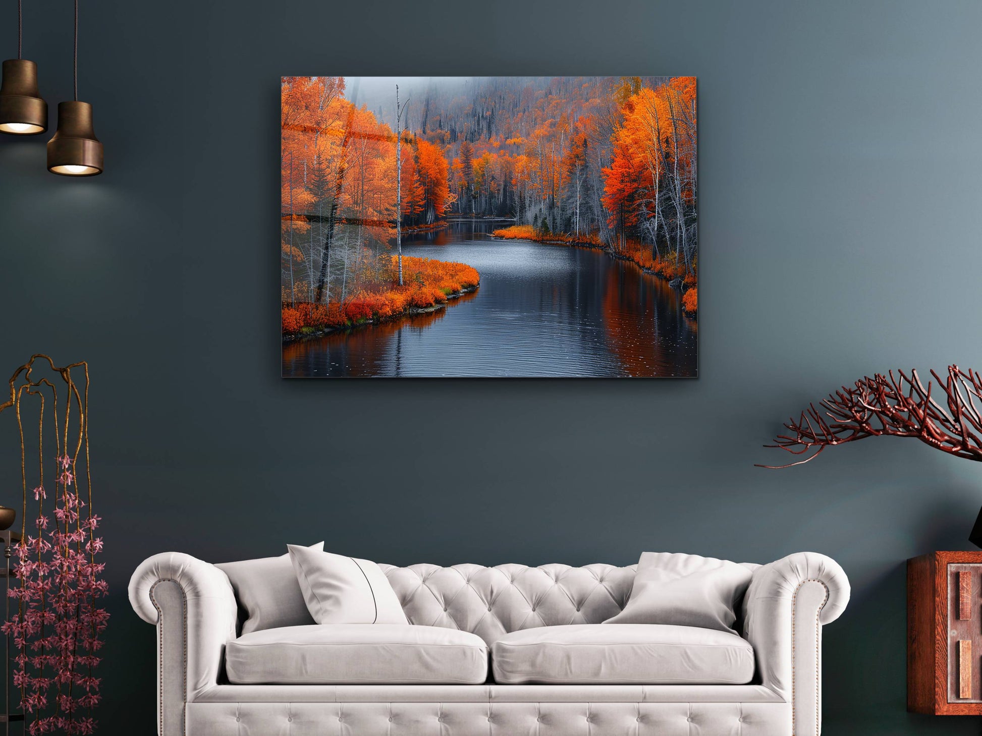 Sonbahar Manzaralı Nehir Cam Tablo - Doğa Temalı Duvar Dekoru