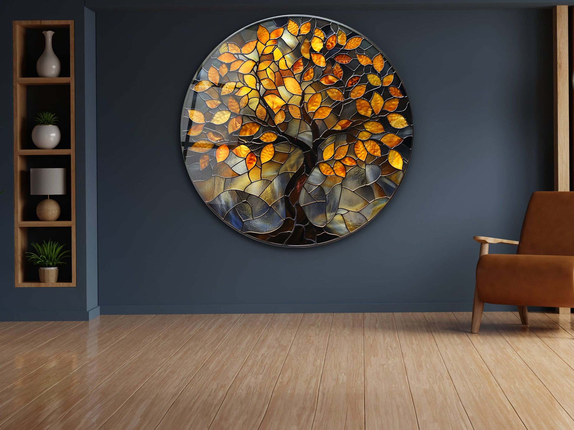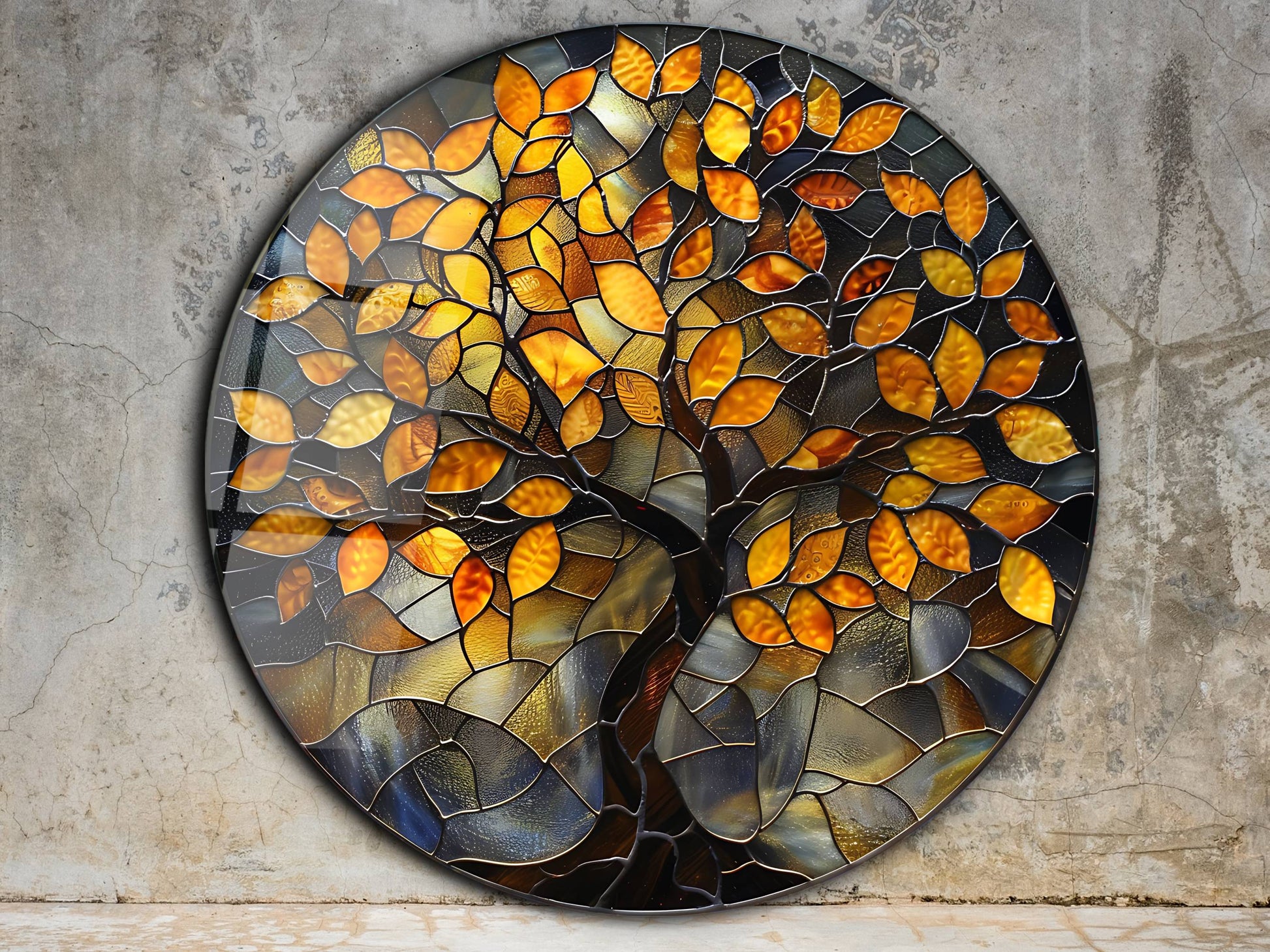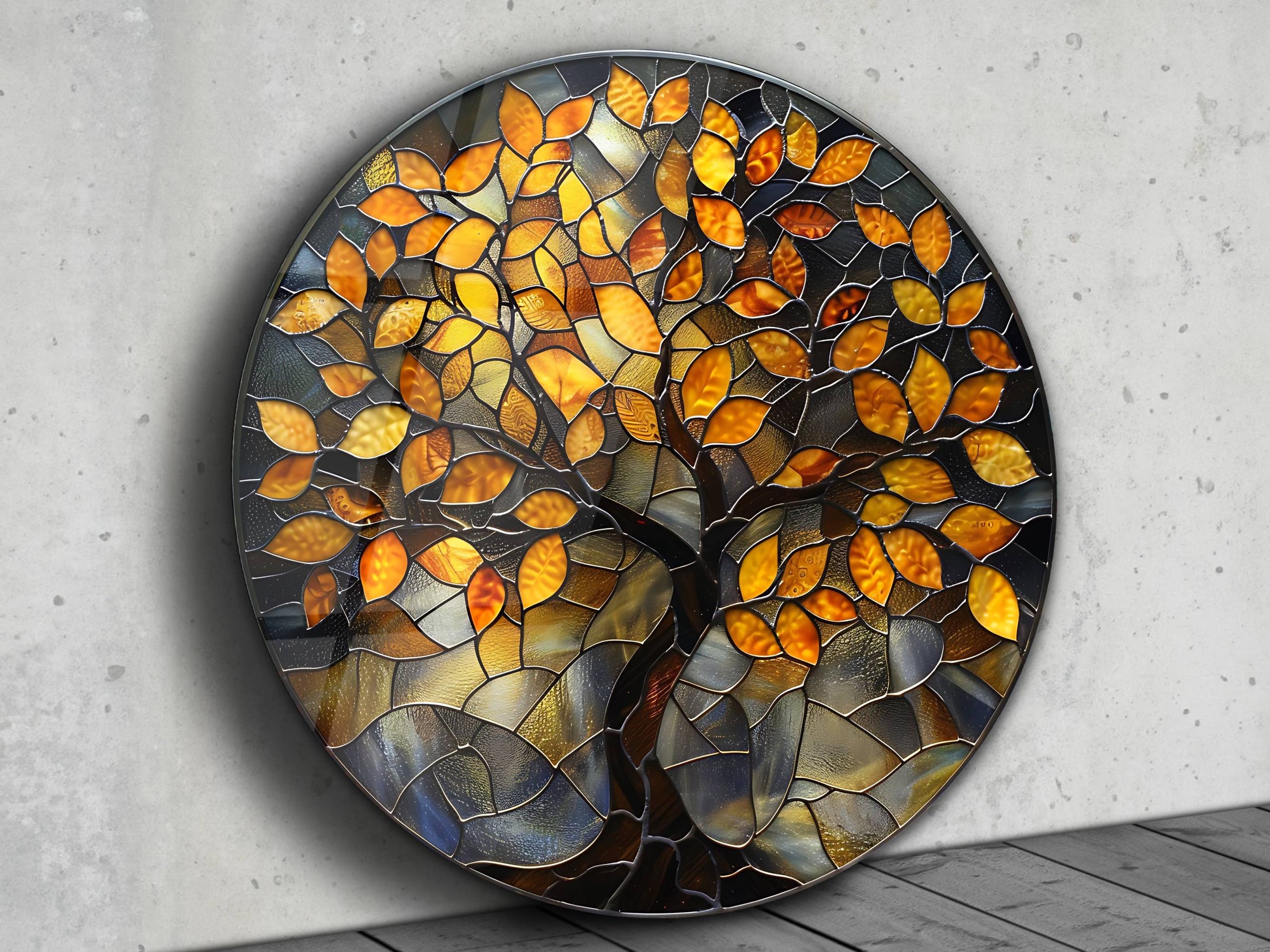 Sonbahar Renklerinde Mozaik Hayat Ağacı Tablo – Yuvarlak Spiritüel Ev Dekoru