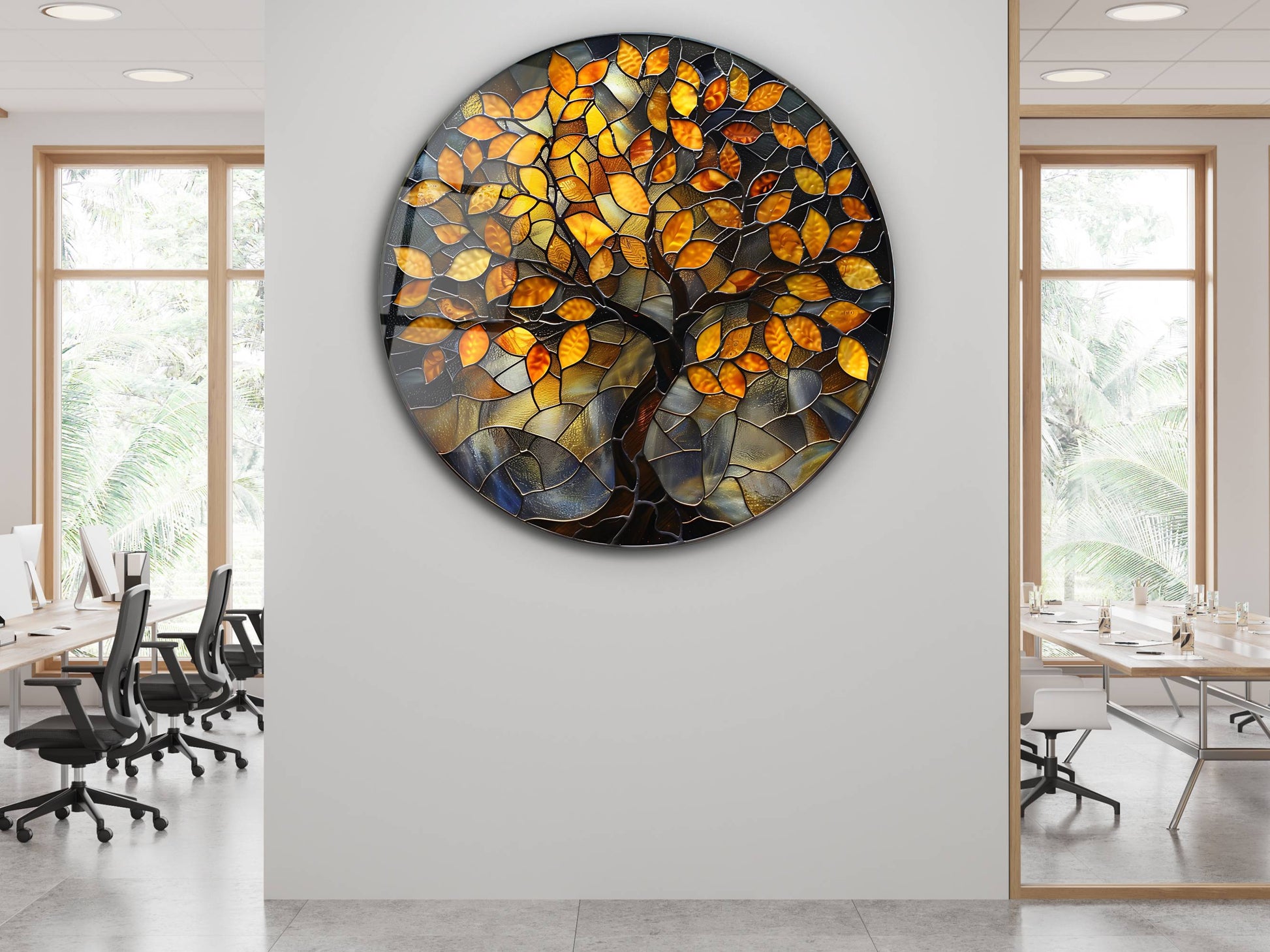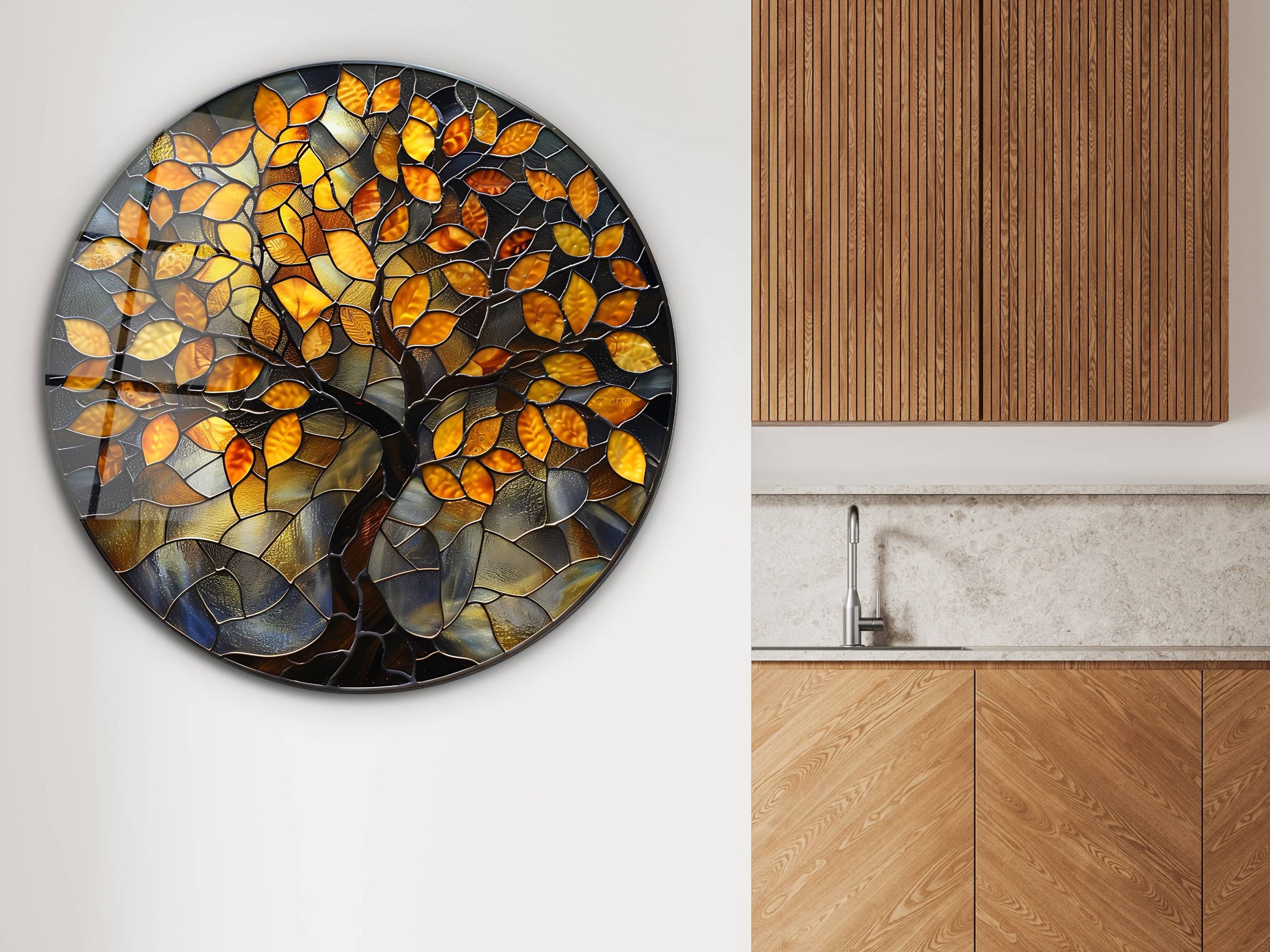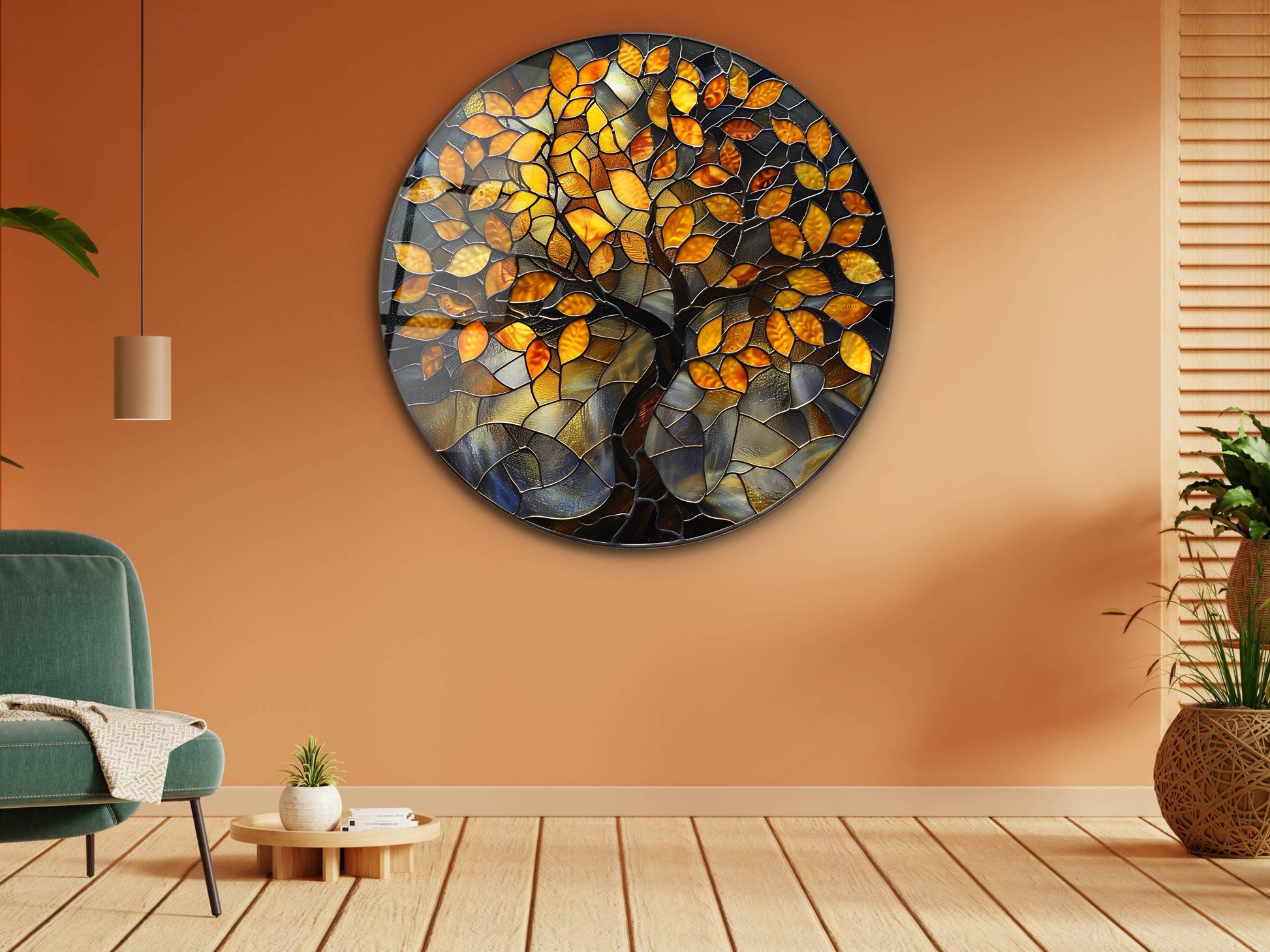 Sonbahar Renklerinde Mozaik Hayat Ağacı Tablo – Yuvarlak Spiritüel Ev Dekoru