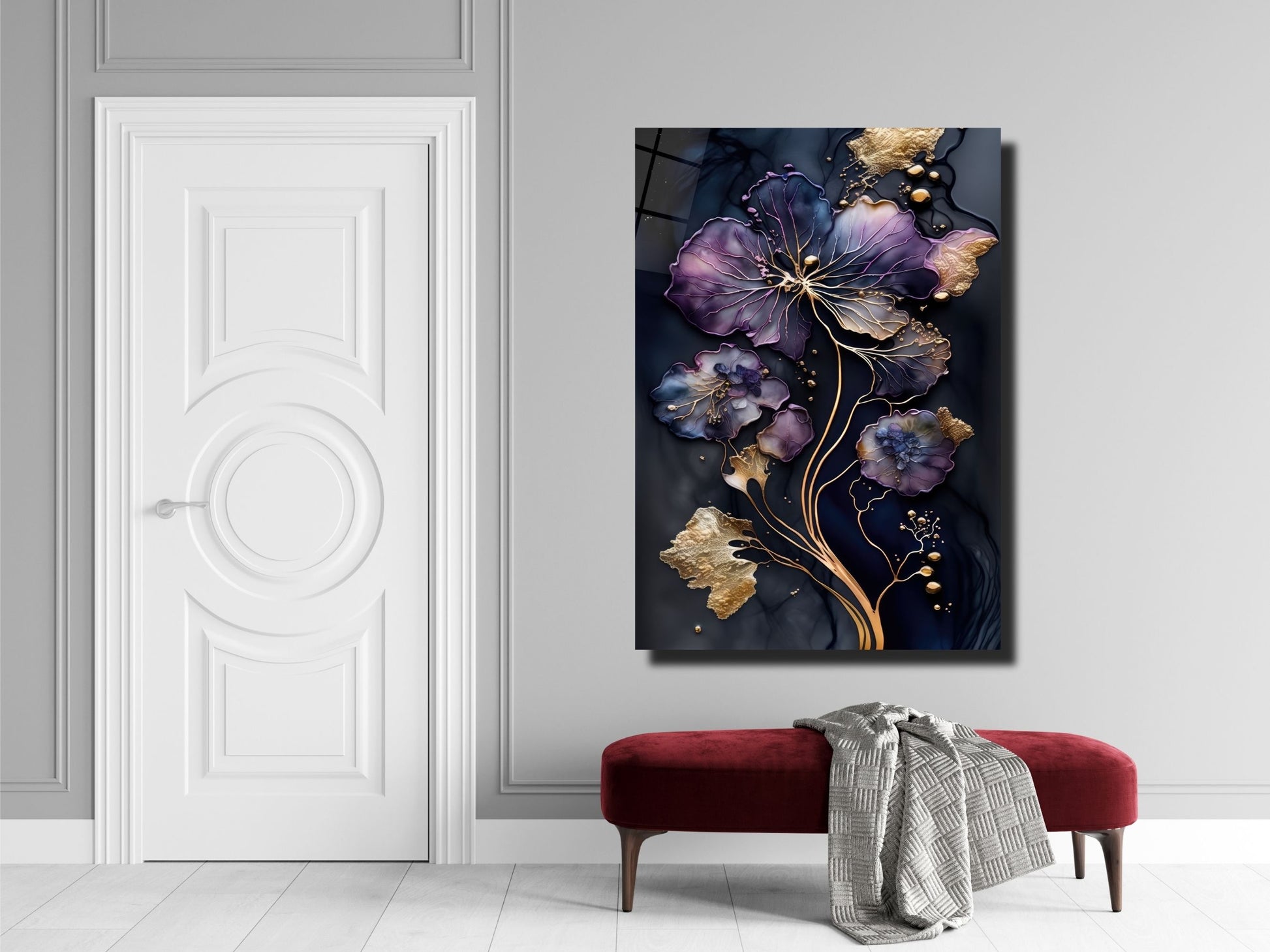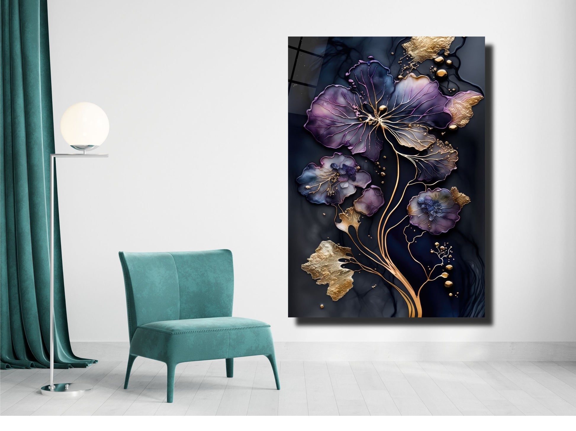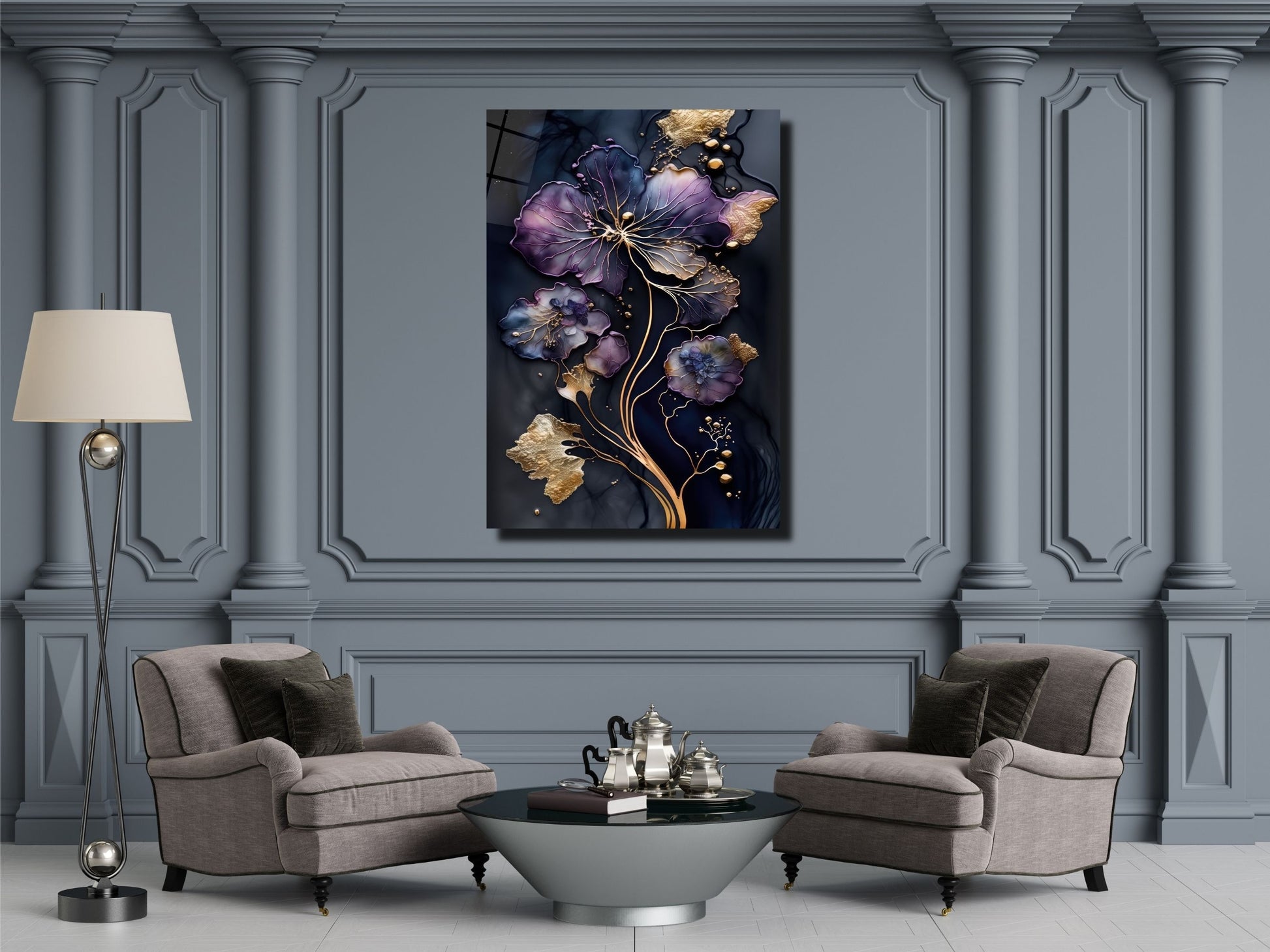 Soyut Çiçek Cam Tablo – Modern Ev Dekorasyonu