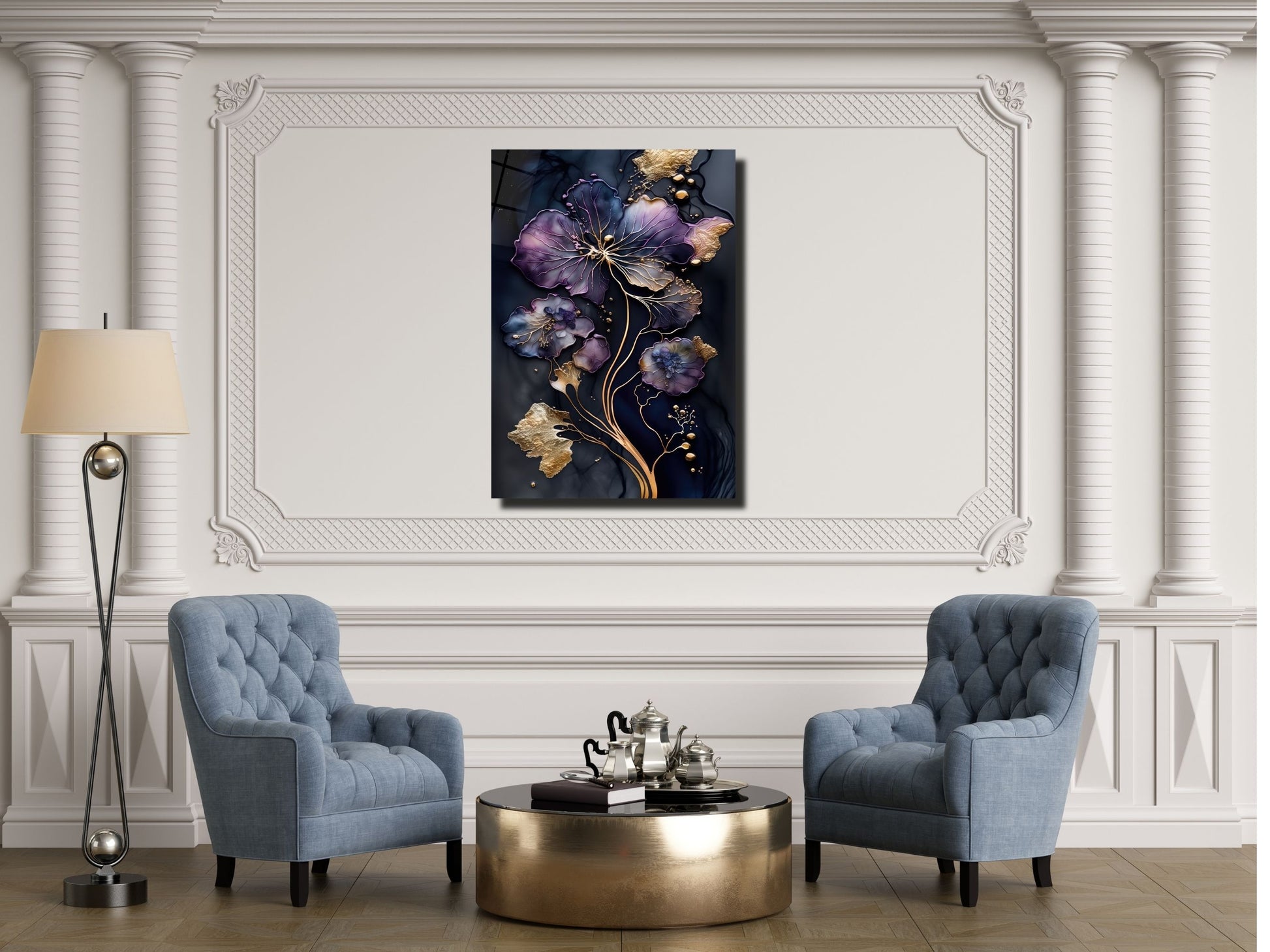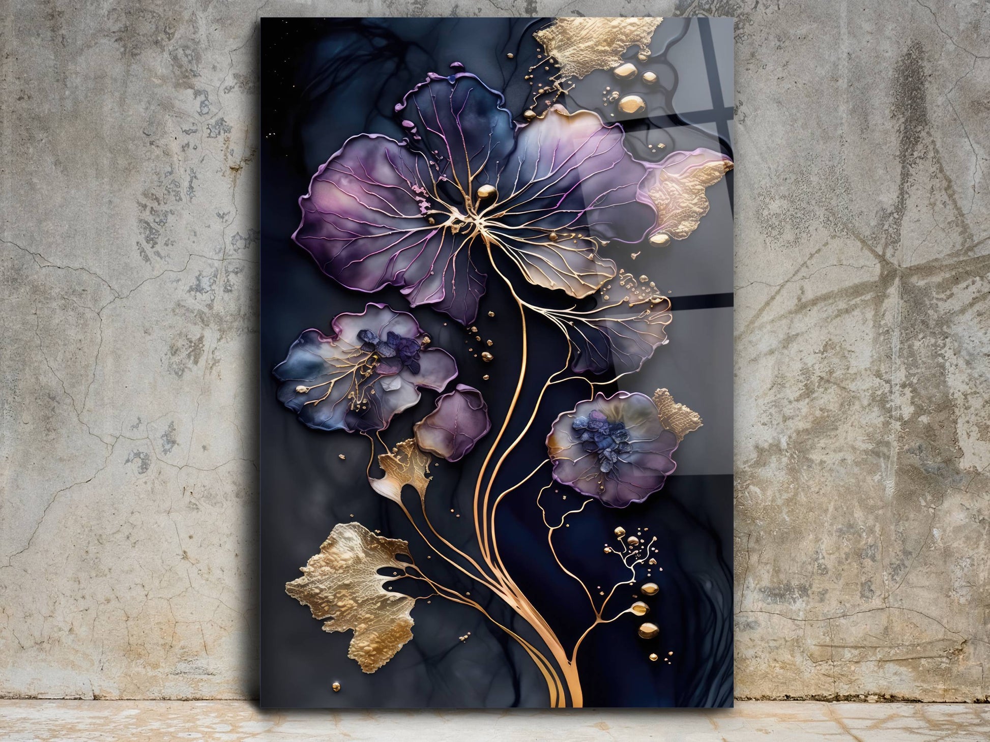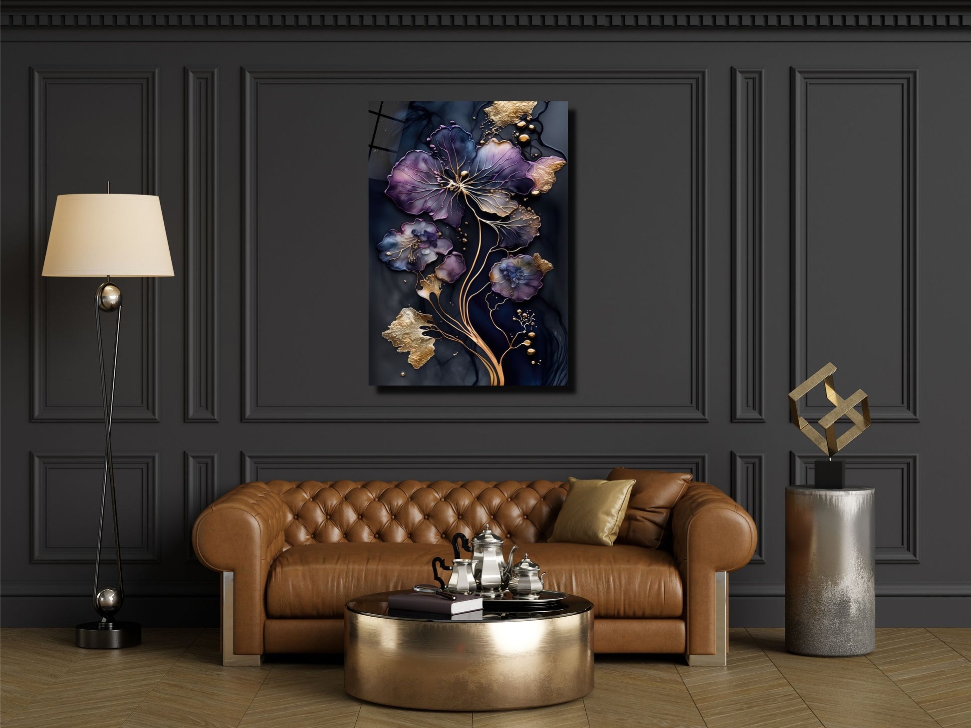Soyut Çiçek Cam Tablo – Modern Ev Dekorasyonu