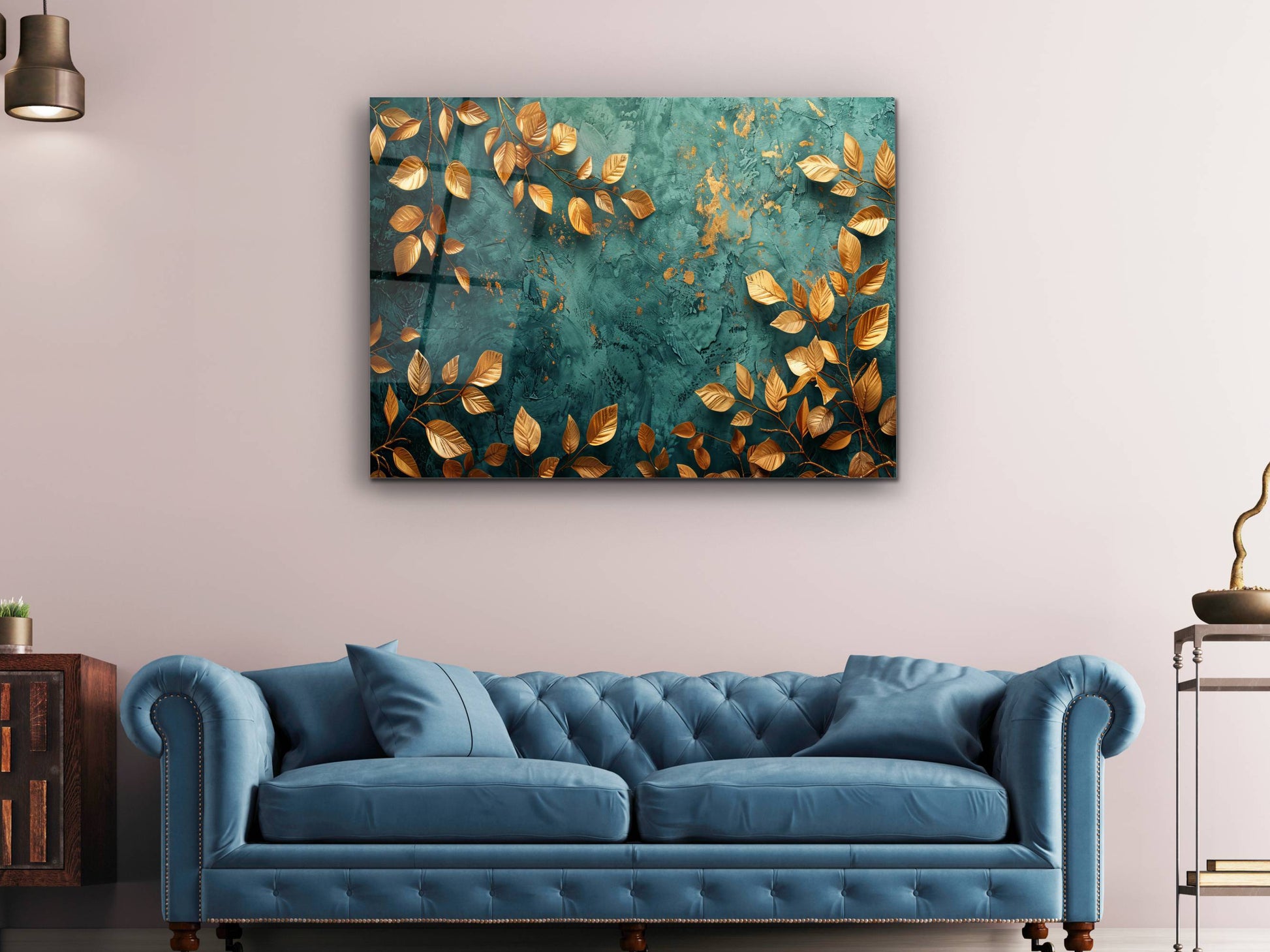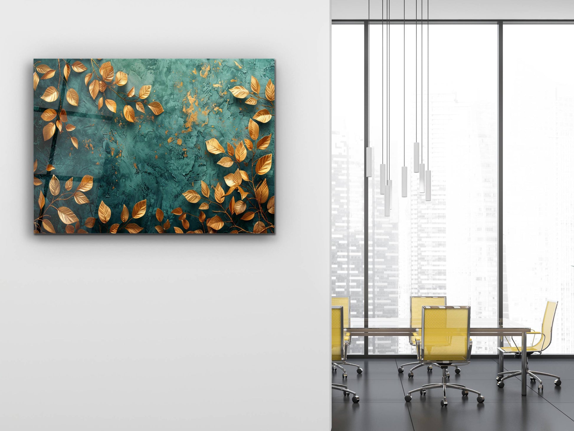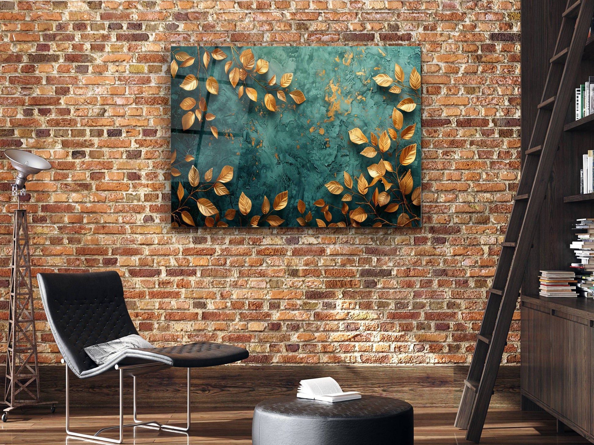 Soyut Gold Yaprak Desen Cam Tablo - Dekoratif Tablo