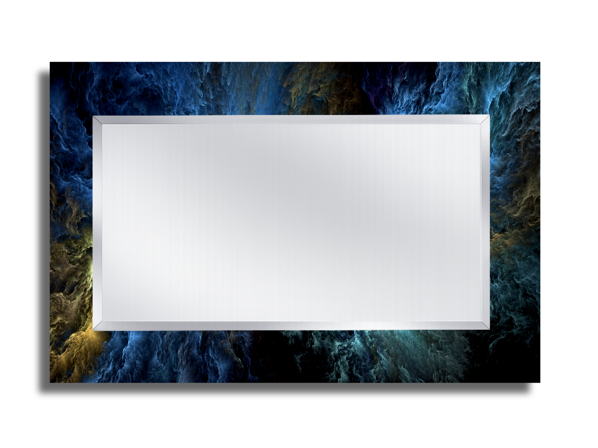 Ürünlerimiz, 4 mm kalınlığında temperli cam üzerine canlı UV baskılı desenlerle üretilir ve merkezinde yer alan 4 mm bizoteli ayna ile hem dayanıklılık hem de zarif bir estetik sunar.