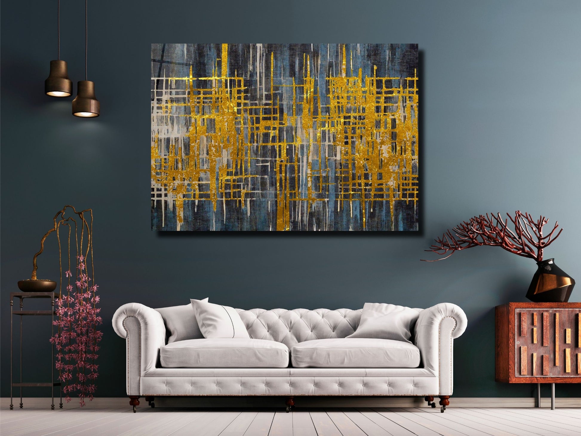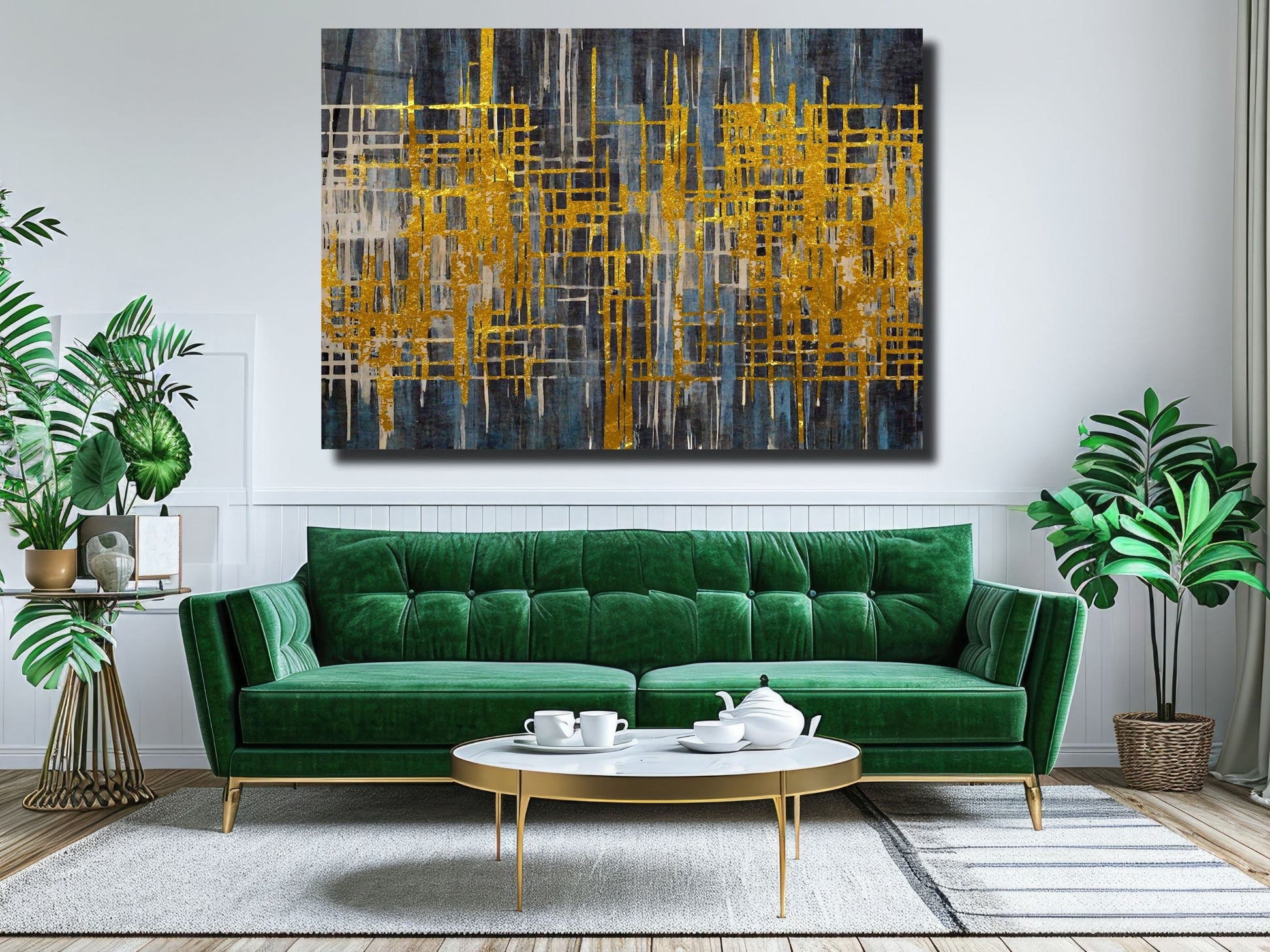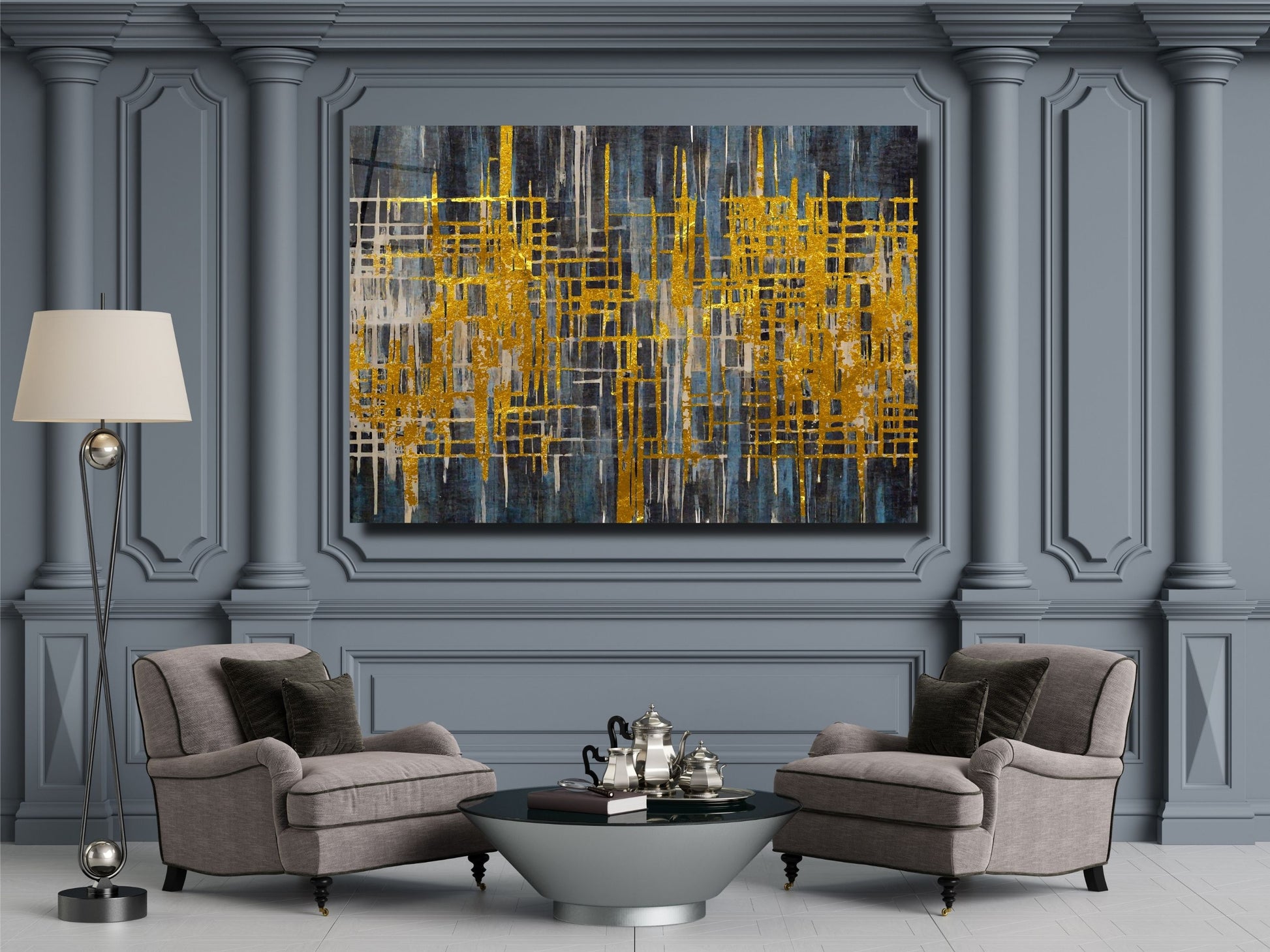 Soyut Gold Cam Tablo - Dekoratif Tablo