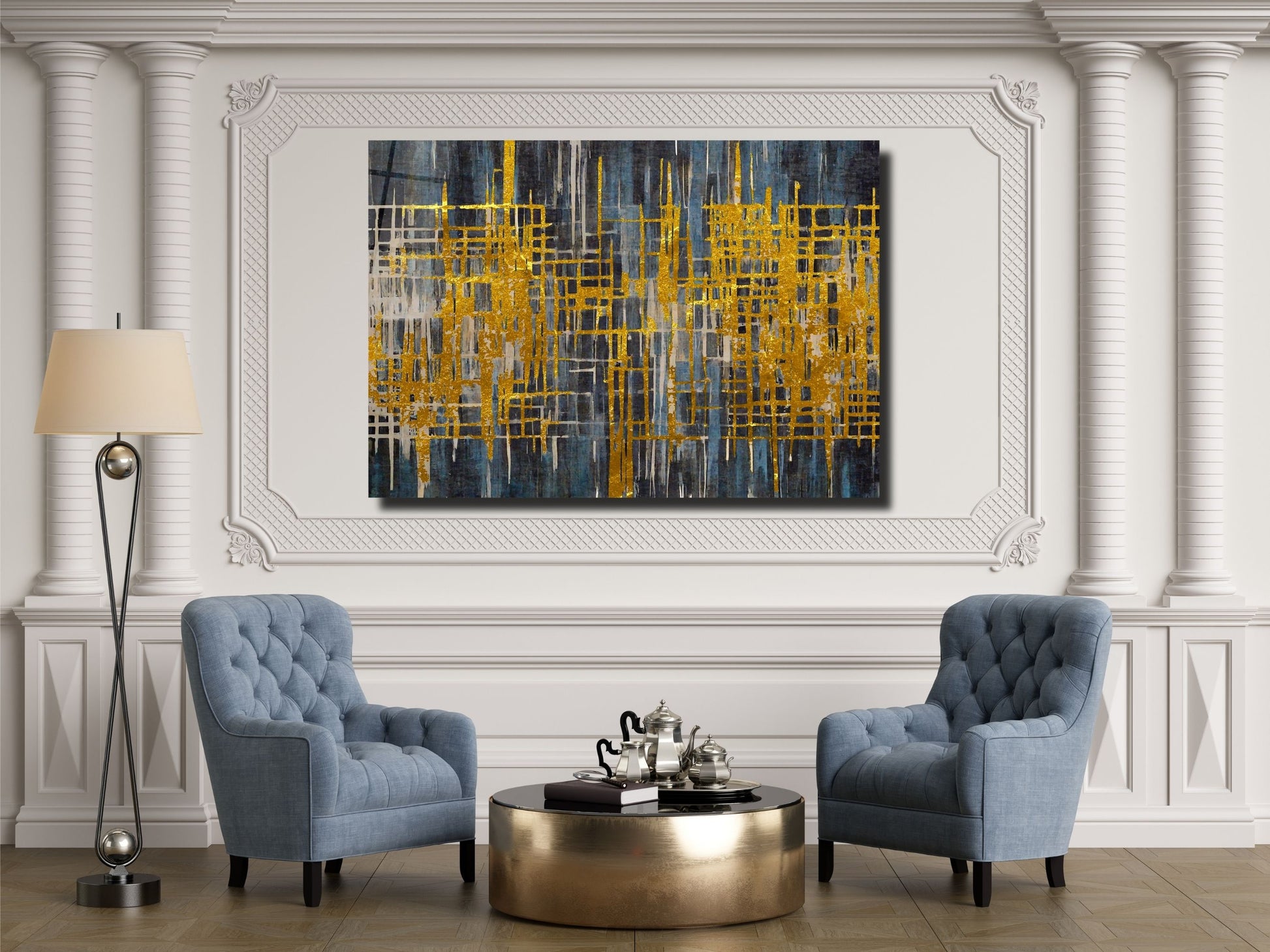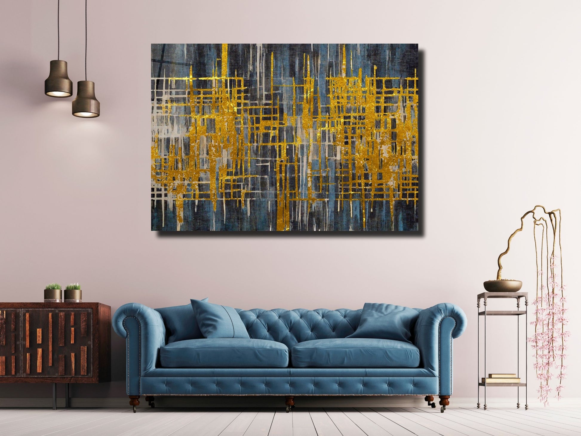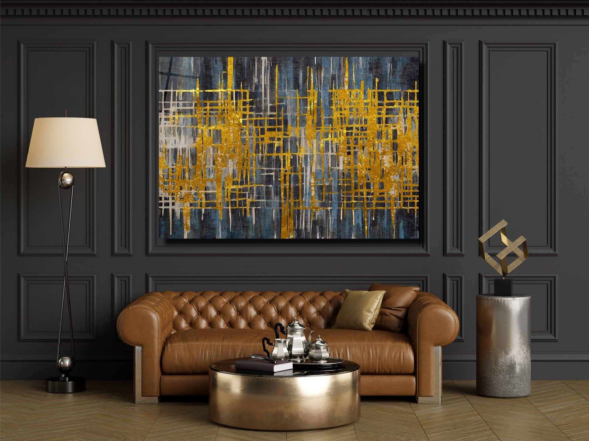 Soyut Gold Cam Tablo - Dekoratif Tablo