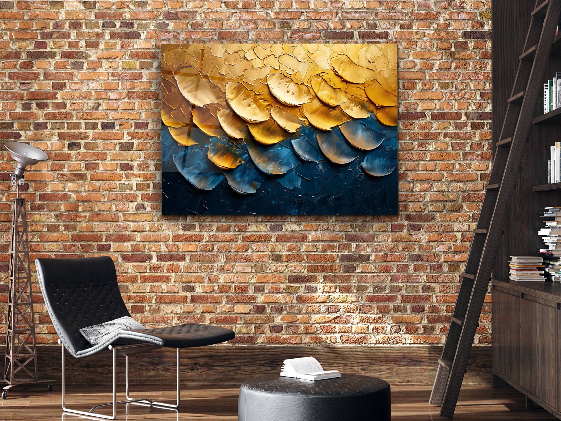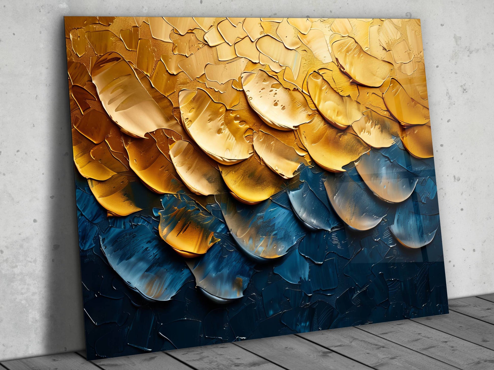 Soyut Gold Desen Cam Tablo - Dekoratif Tablo