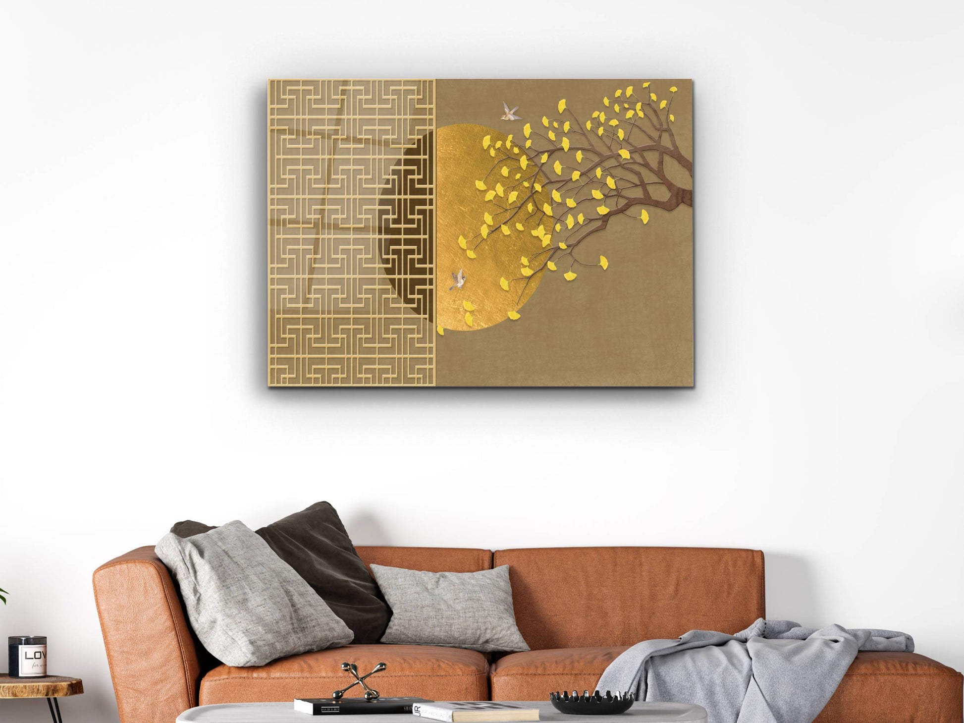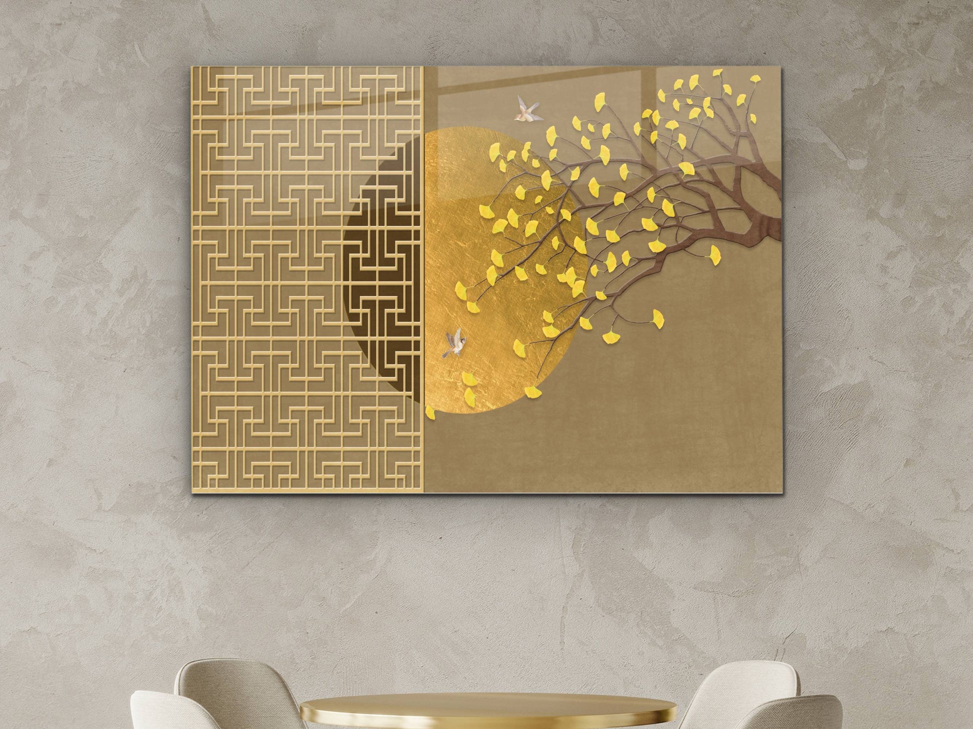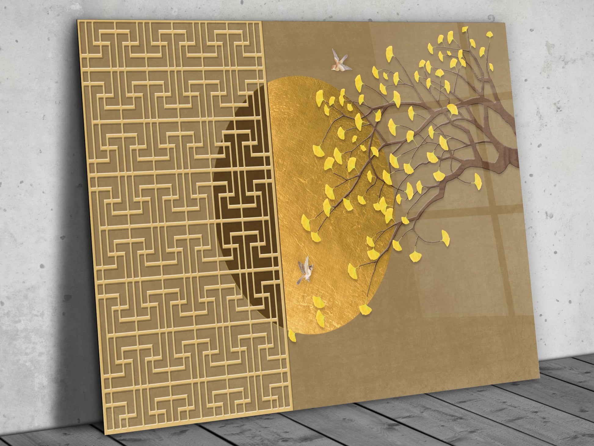 Soyut Gold Desen Cam Tablo - Dekoratif Tablo