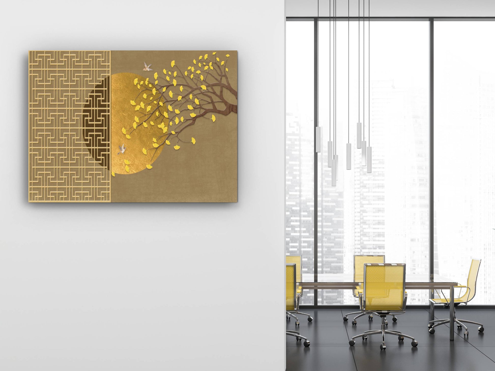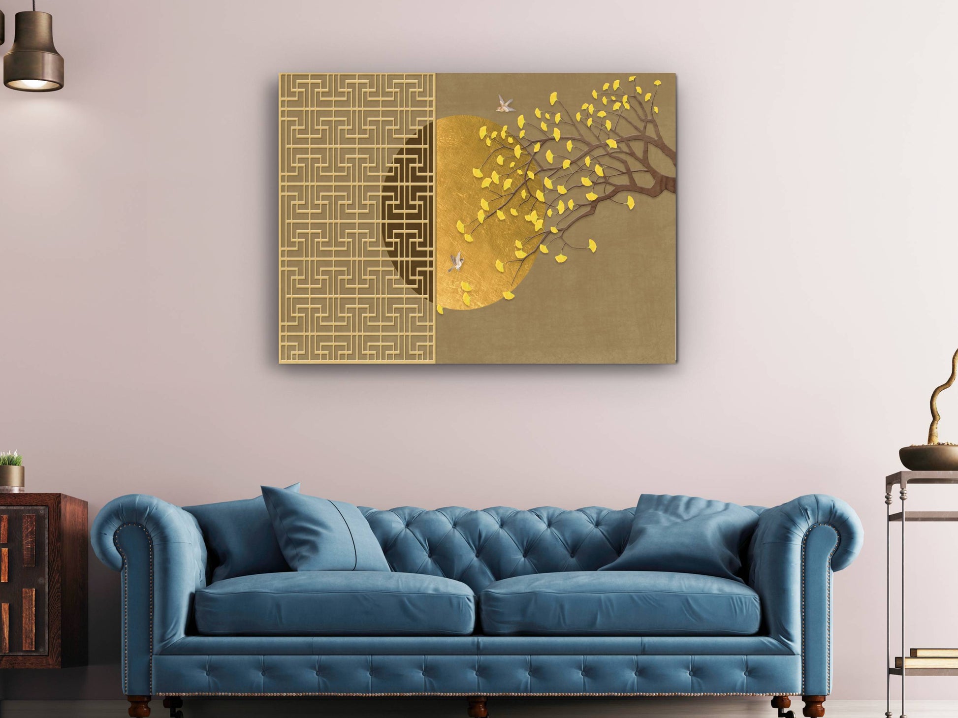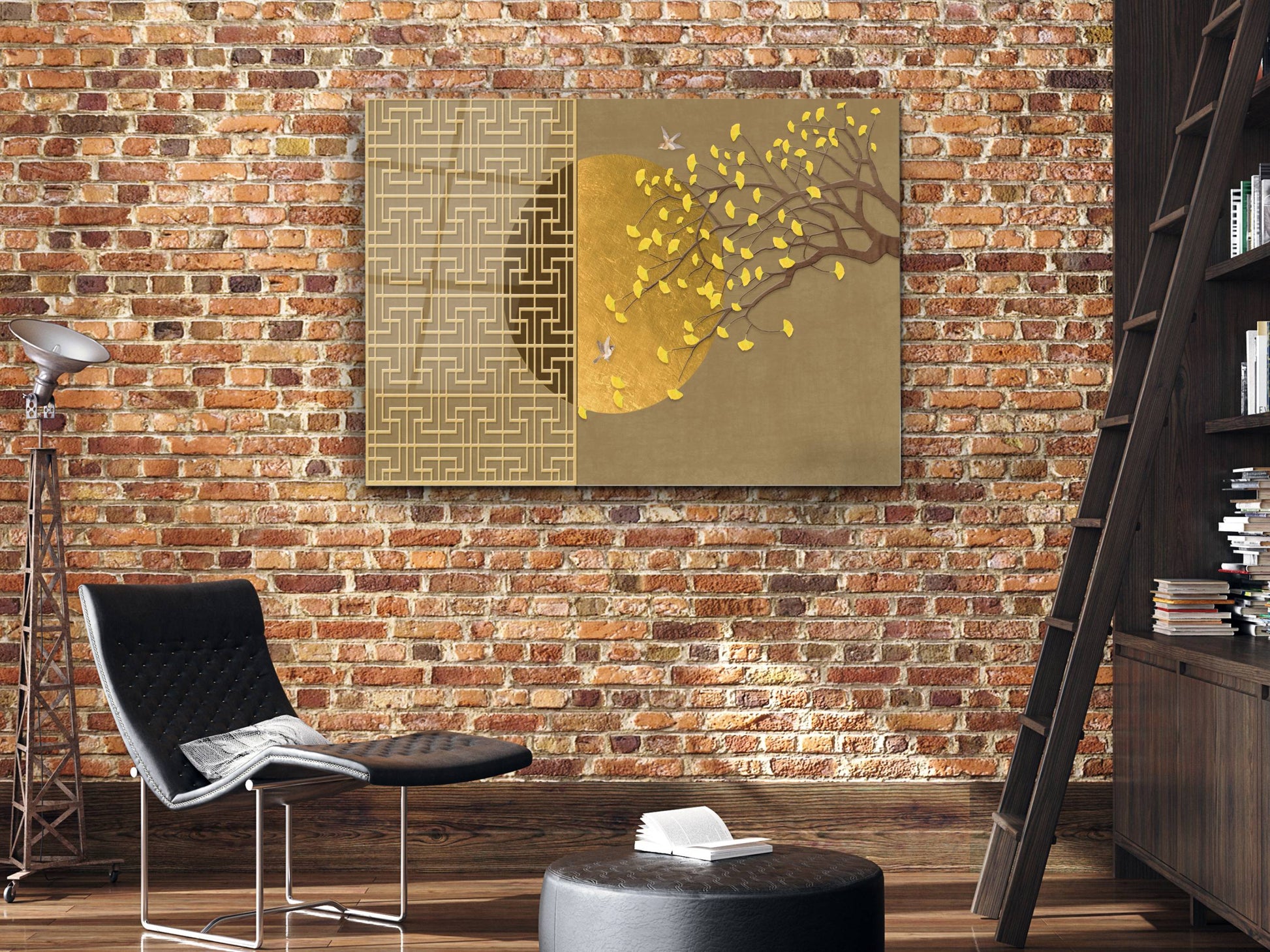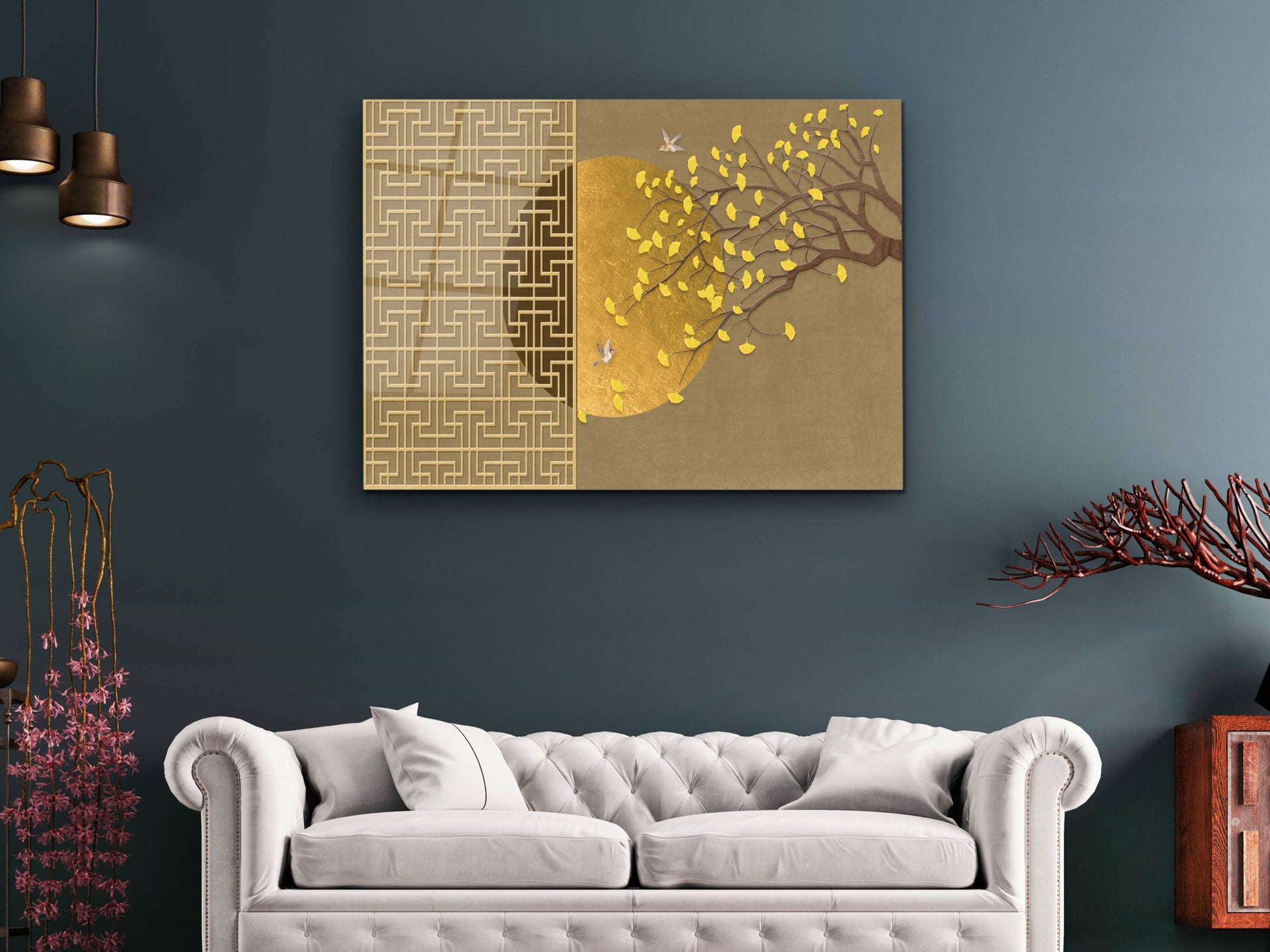 Soyut Gold Desen Cam Tablo - Dekoratif Tablo