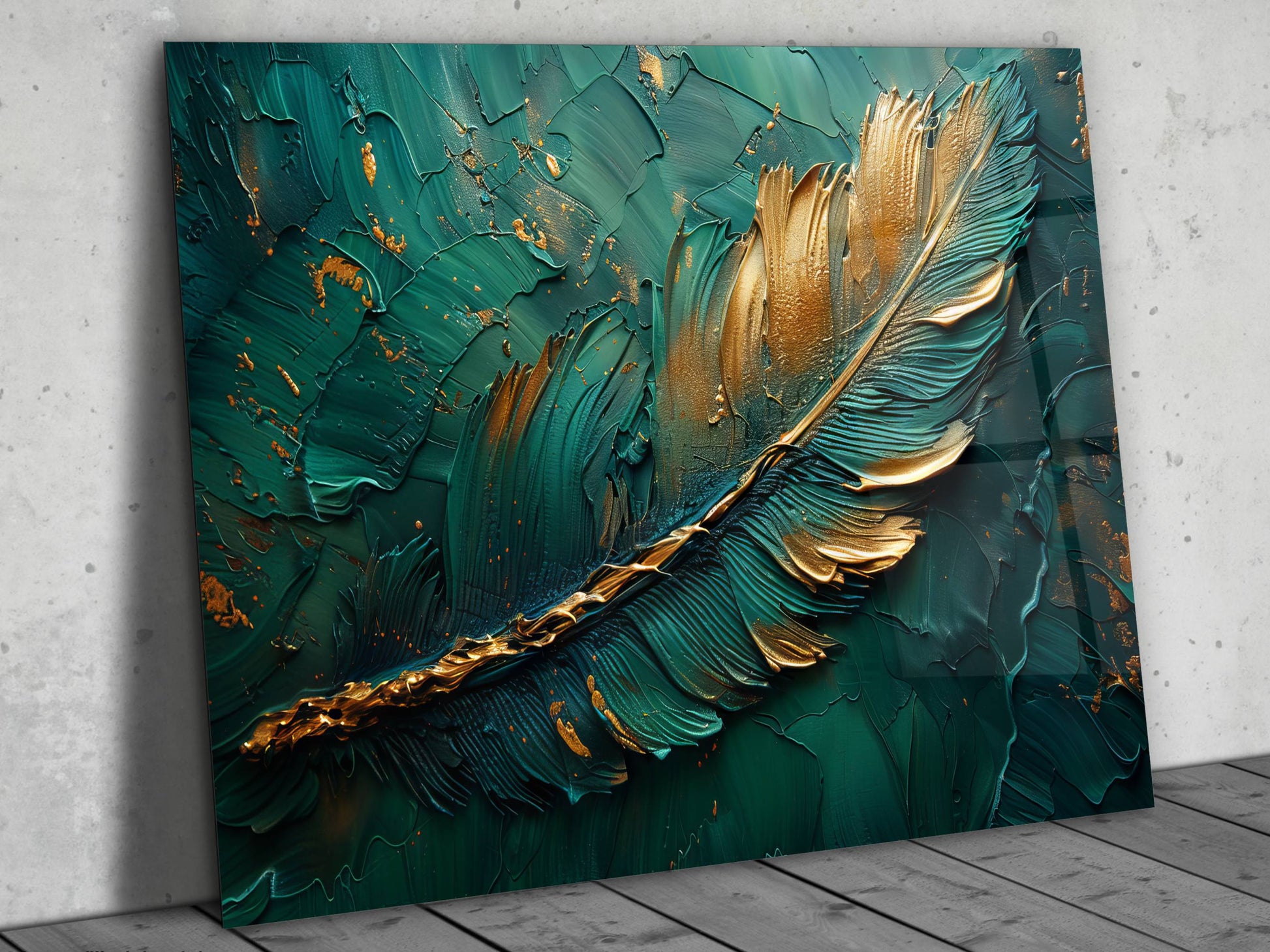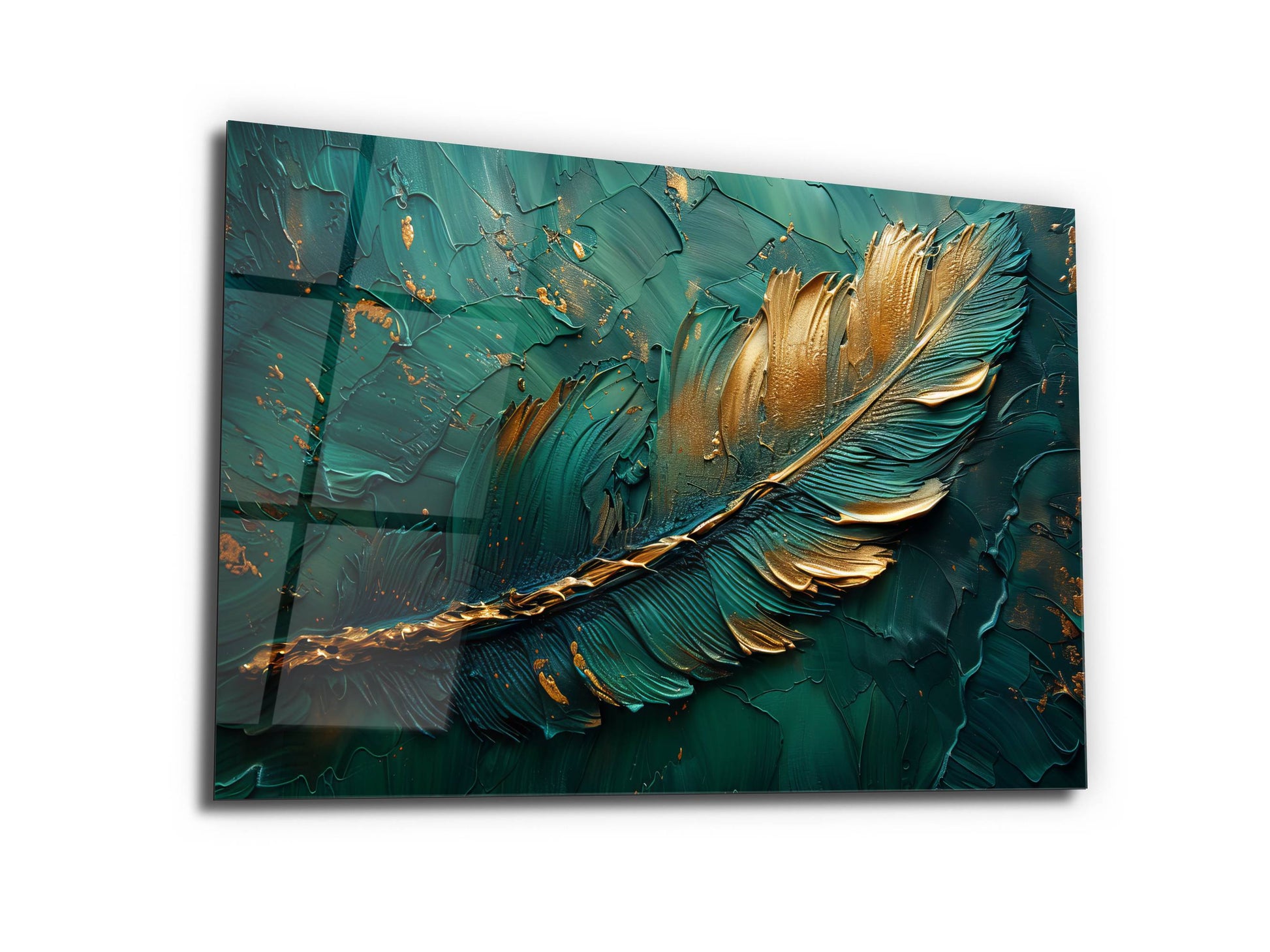 Soyut Gold Yaprak Desen Cam Tablo - Dekoratif Tablo