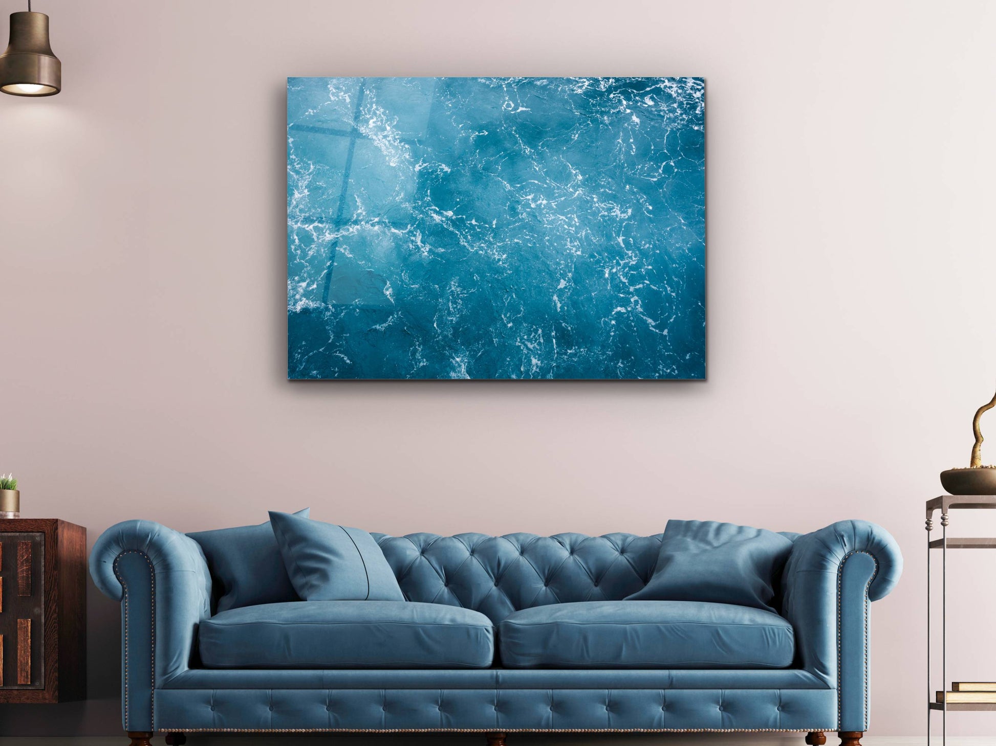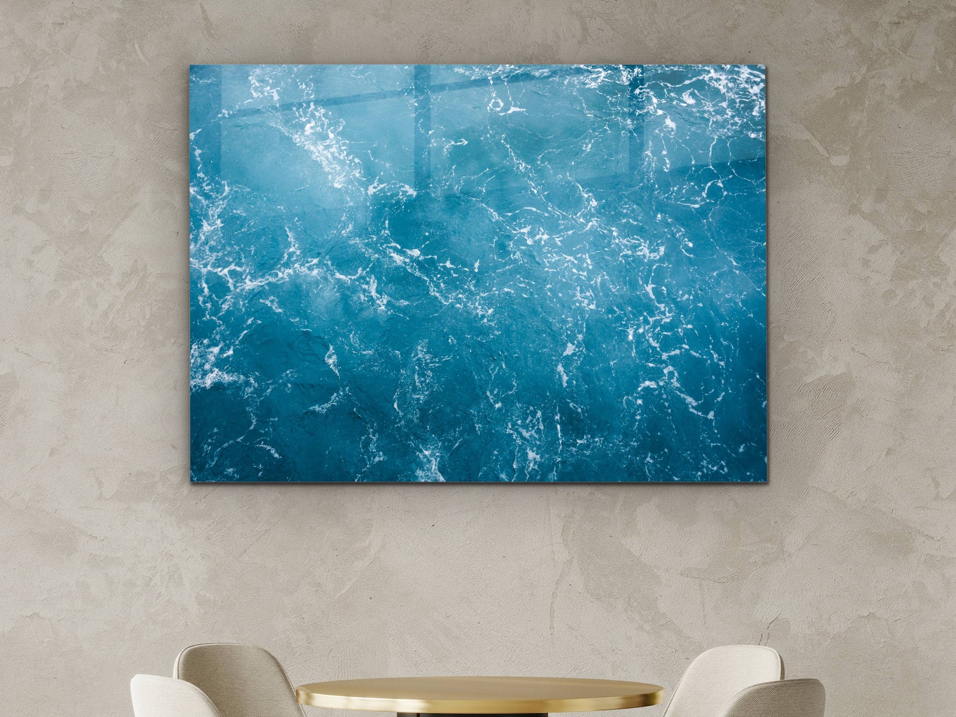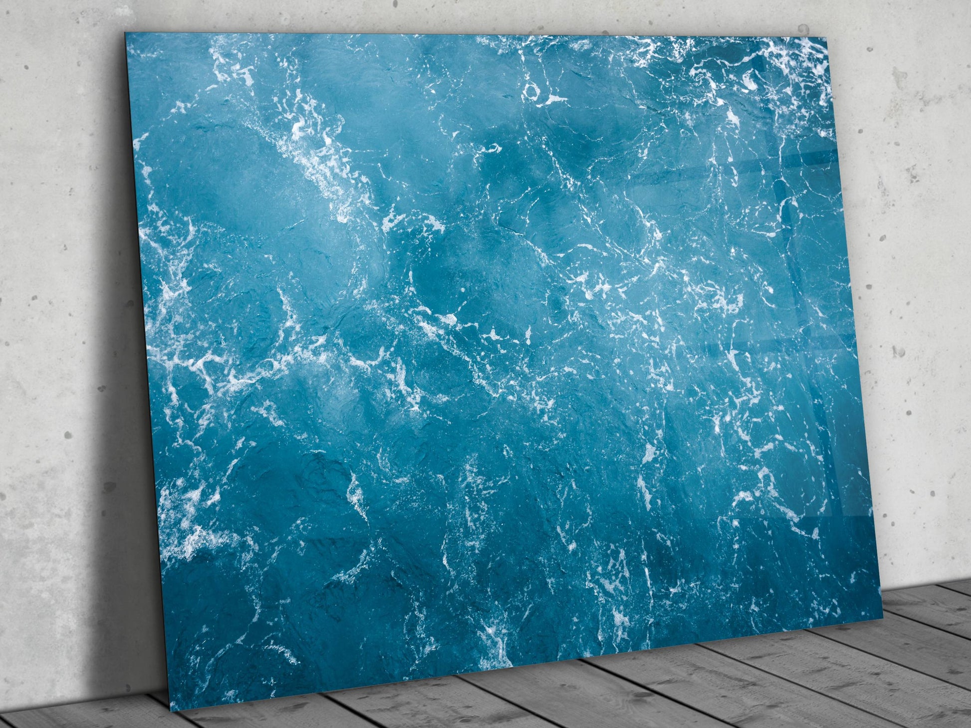 Soyut Mavi Deniz Cam Tablo - Dekoratif Tablo