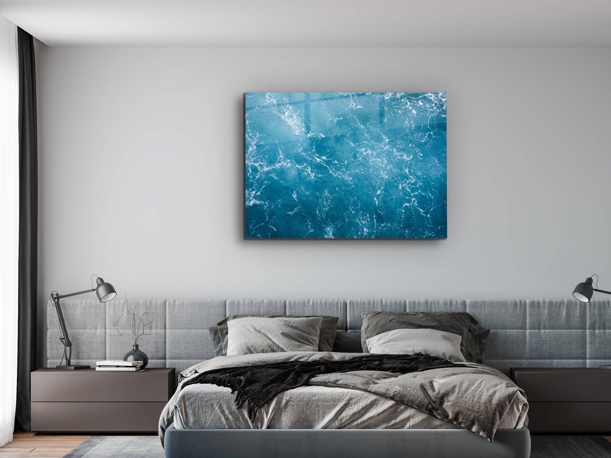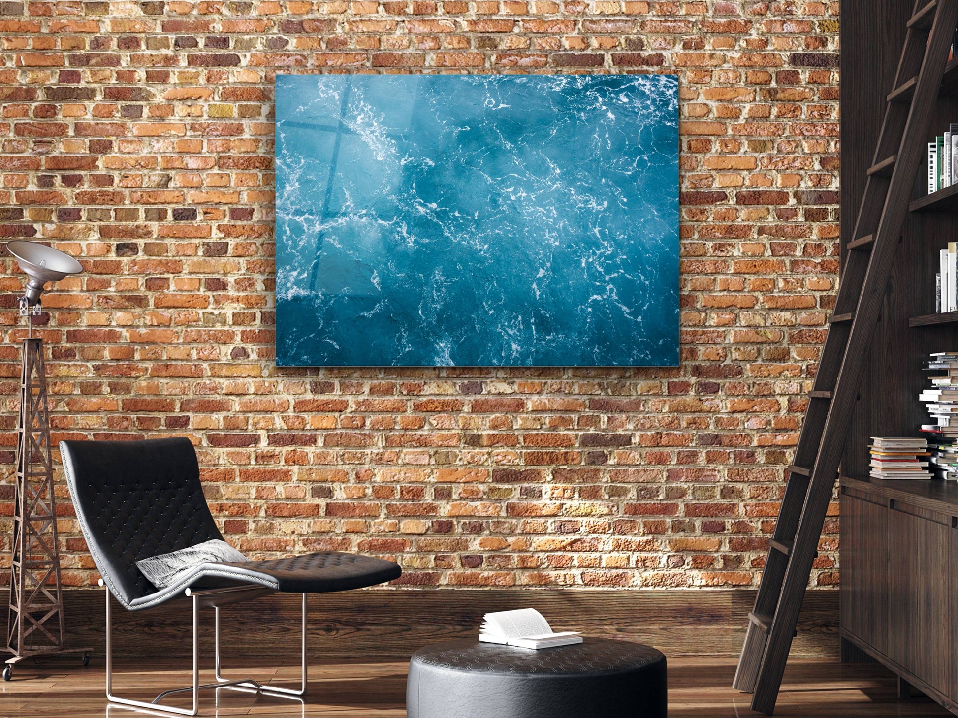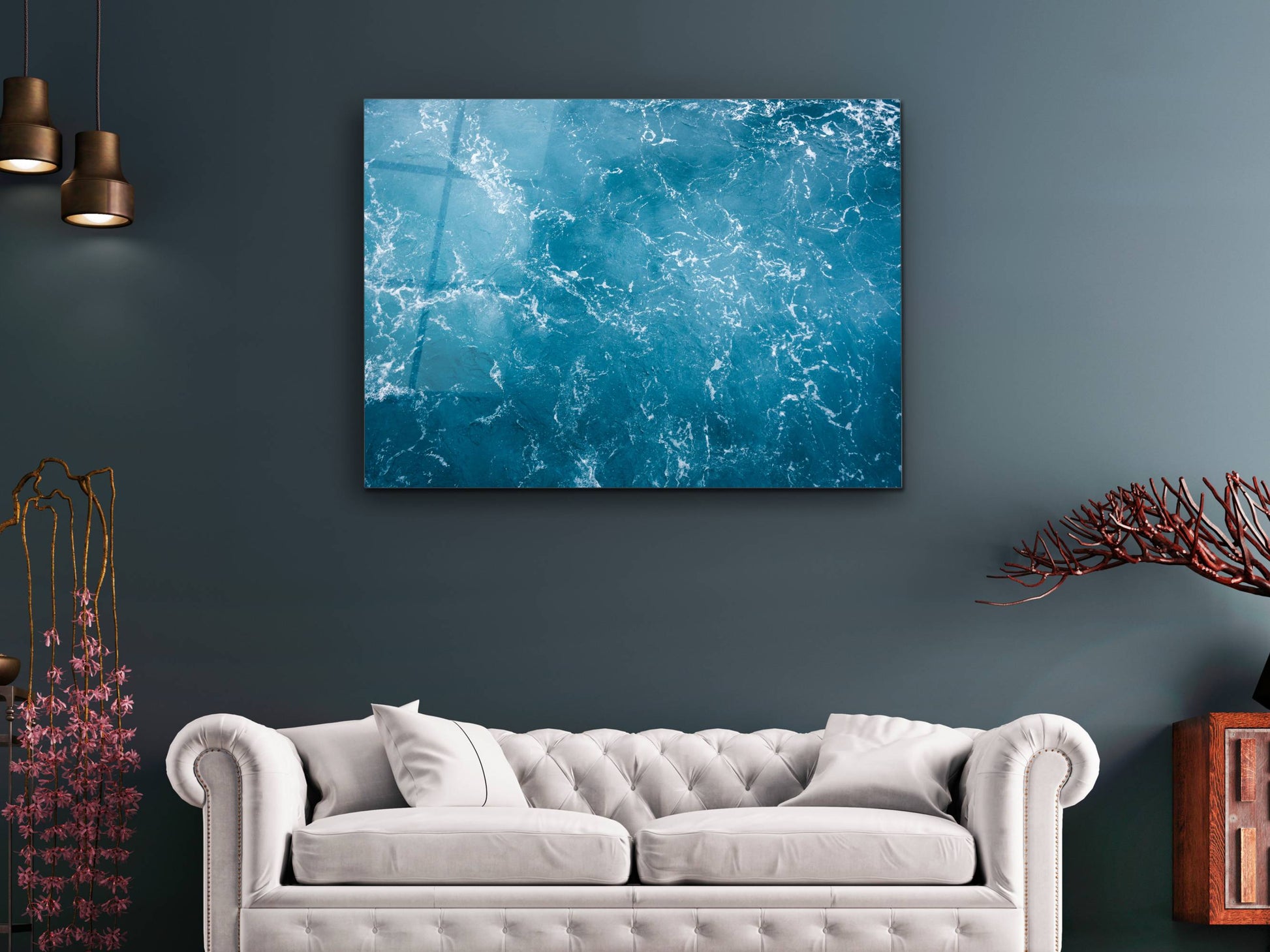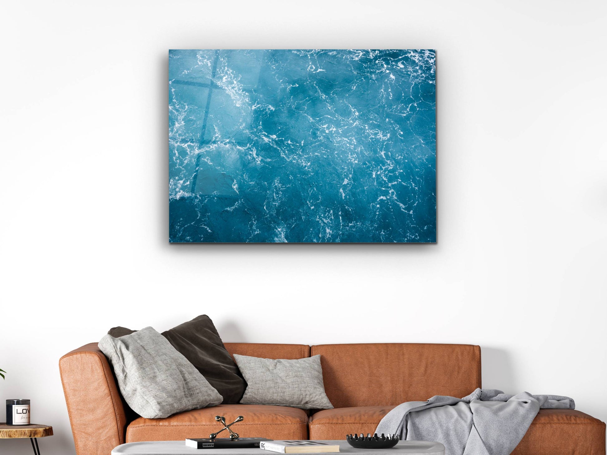 Soyut Mavi Deniz Cam Tablo - Dekoratif Tablo