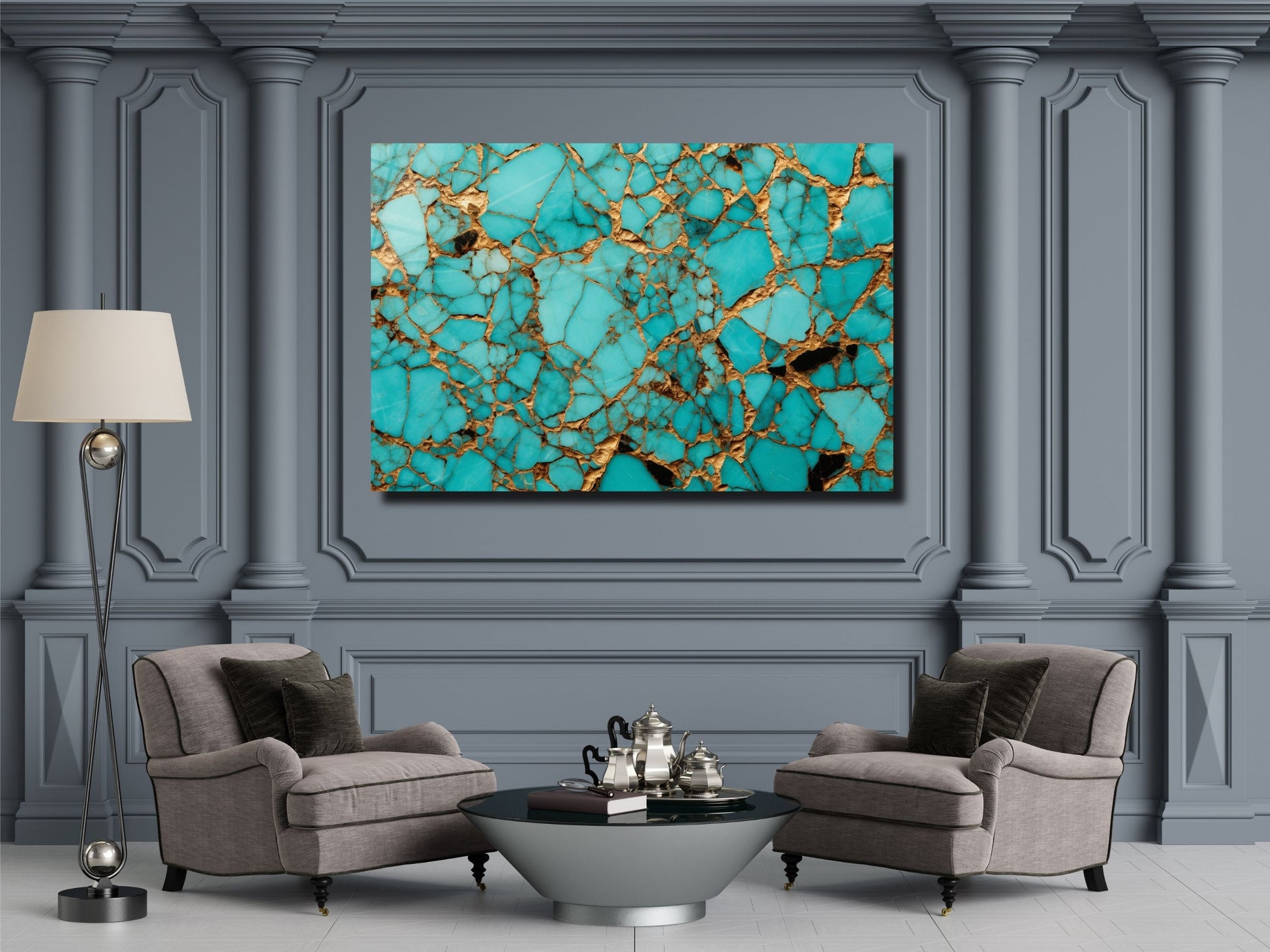 Soyut Mermer Desen Cam Tablo - Dekoratif Tablo