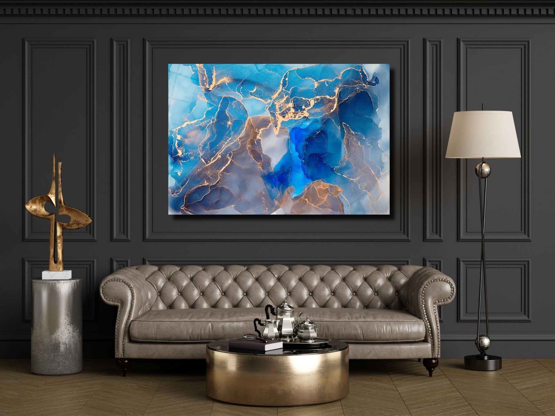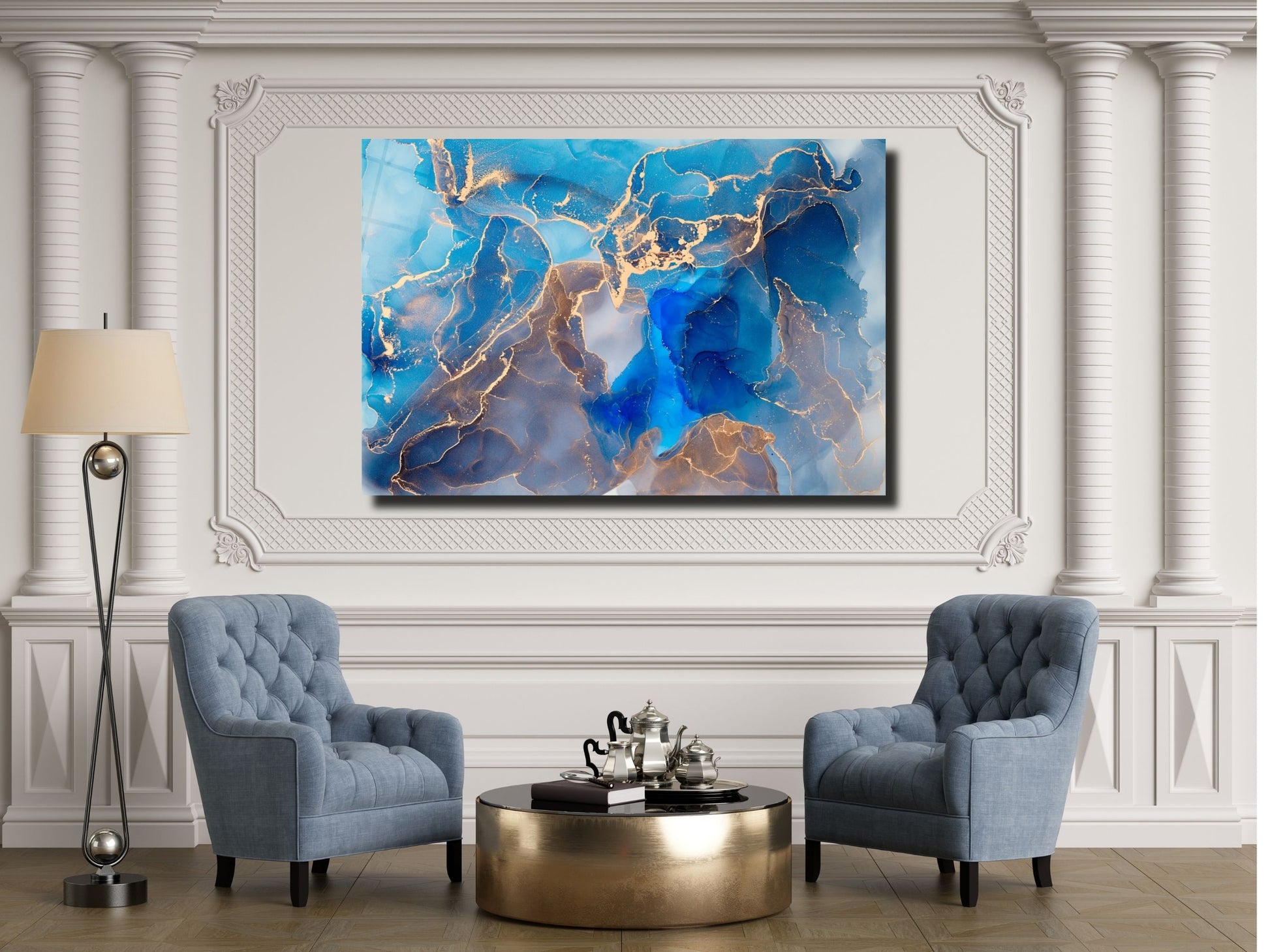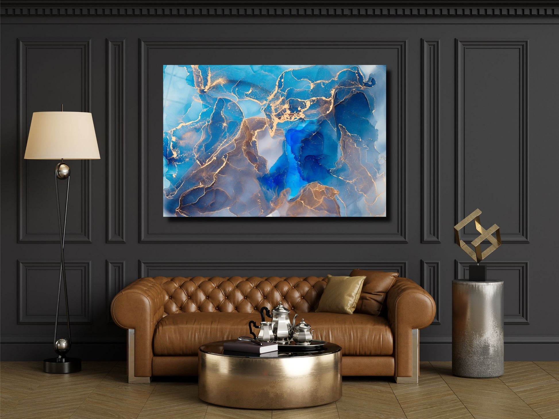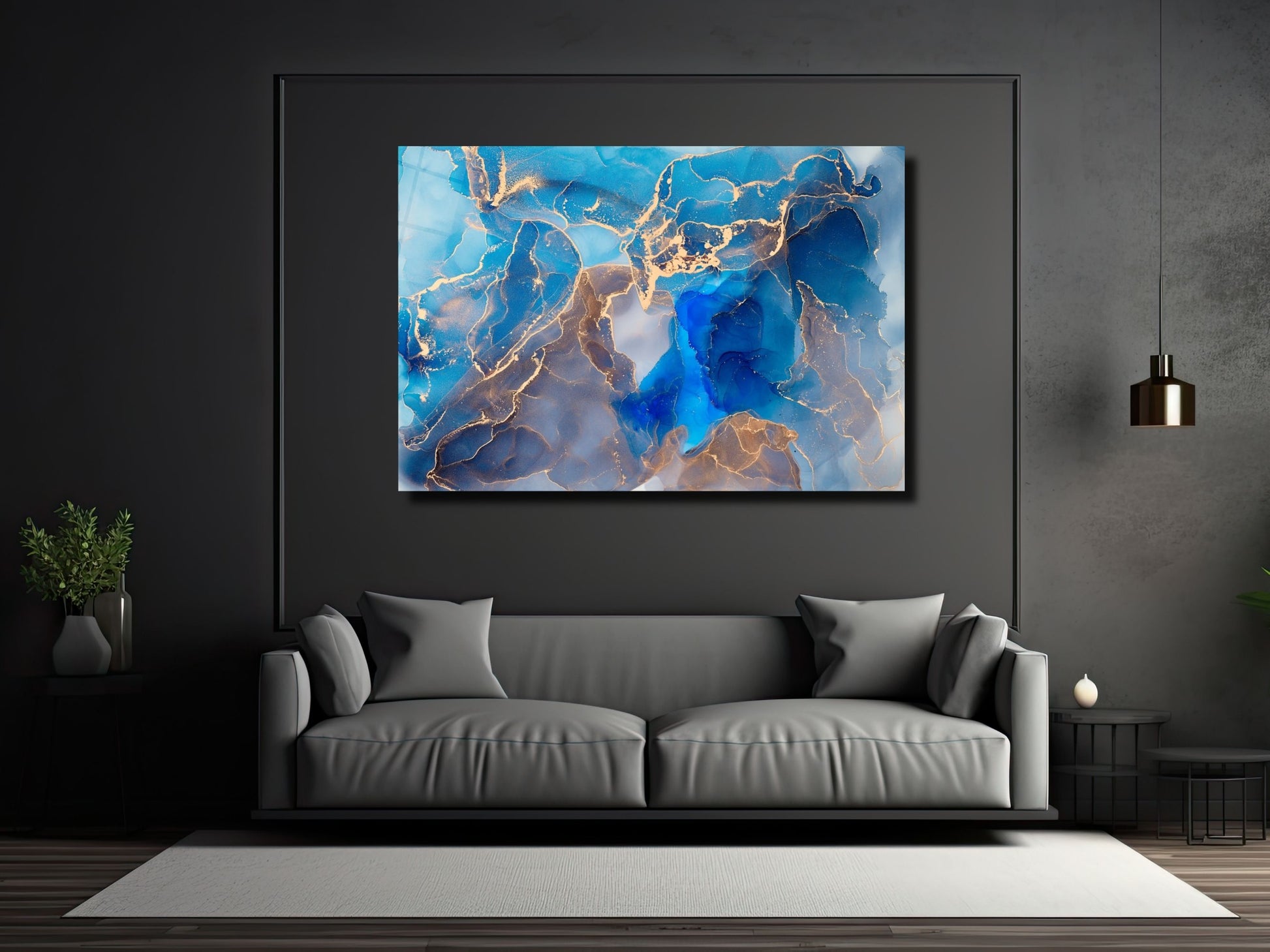 Soyut Mermer Desen Cam Tablo - Dekoratif Tablo