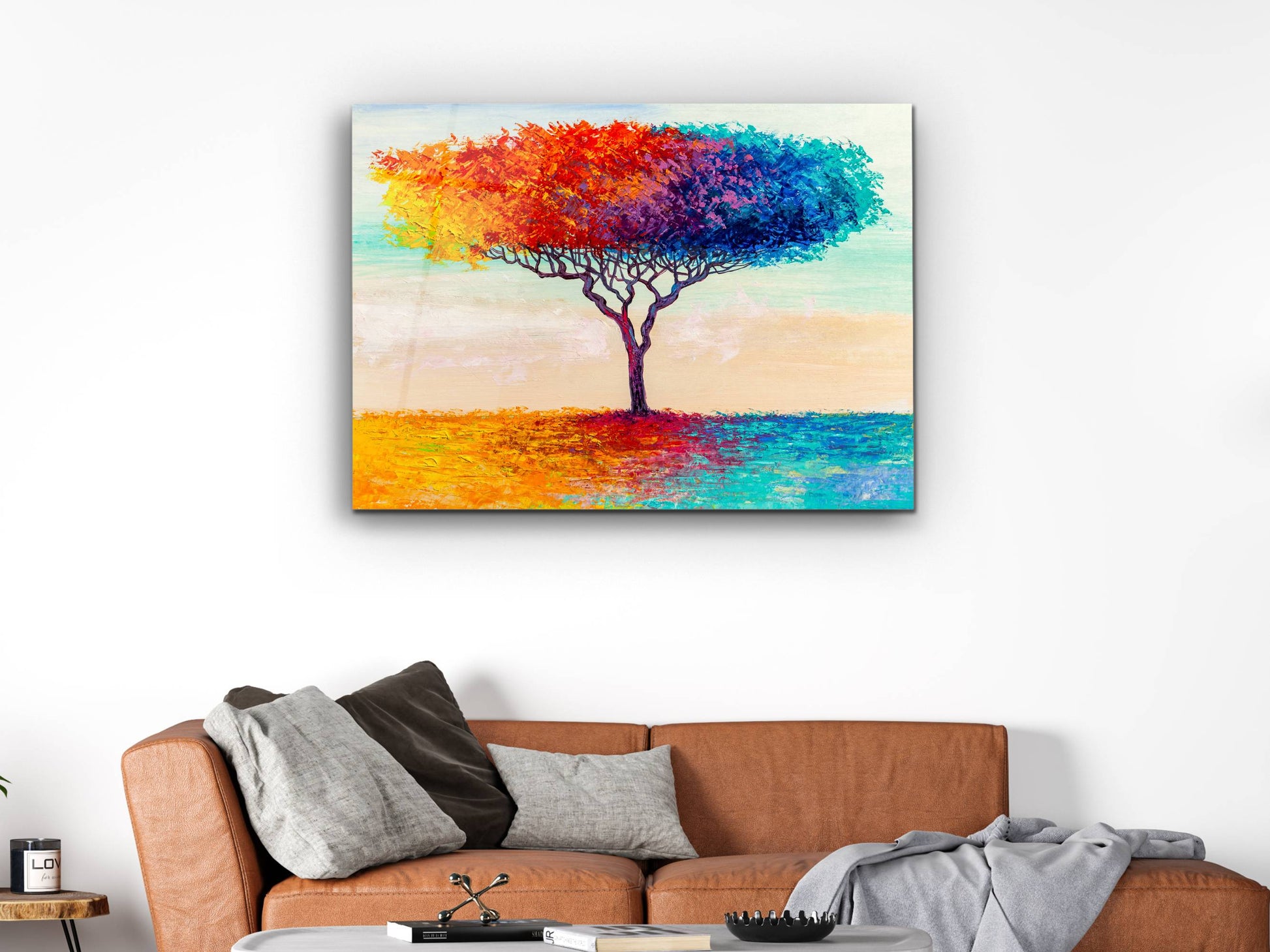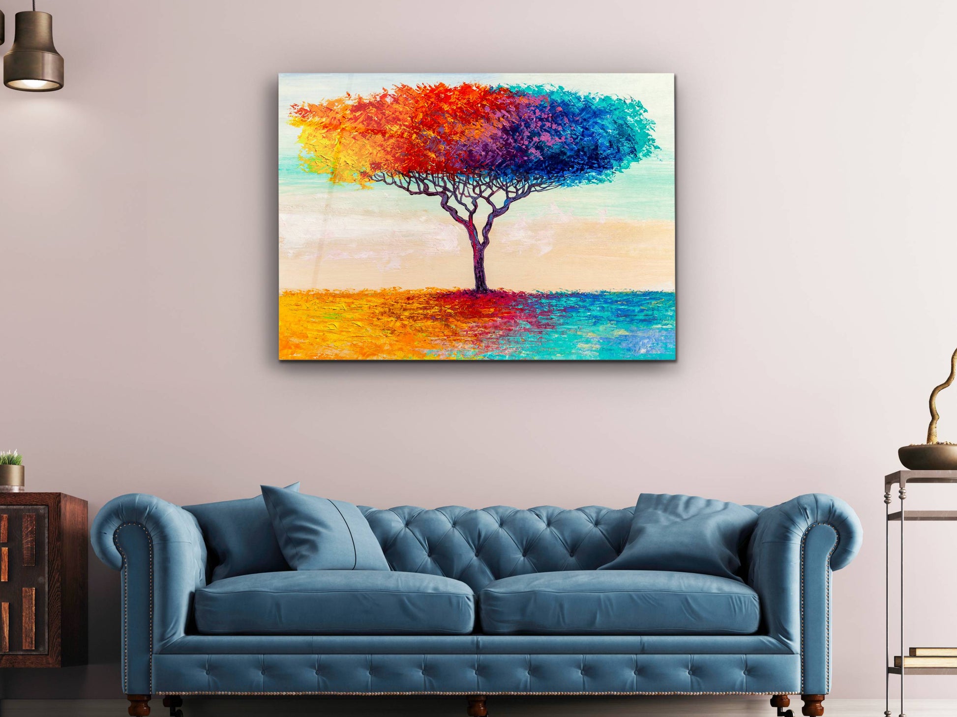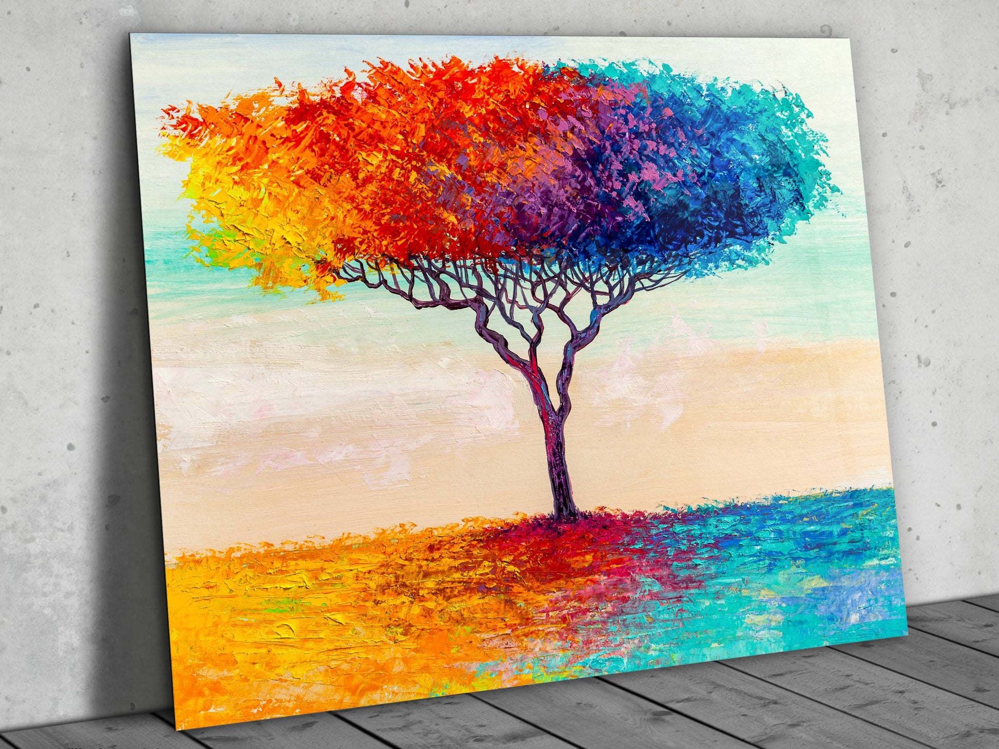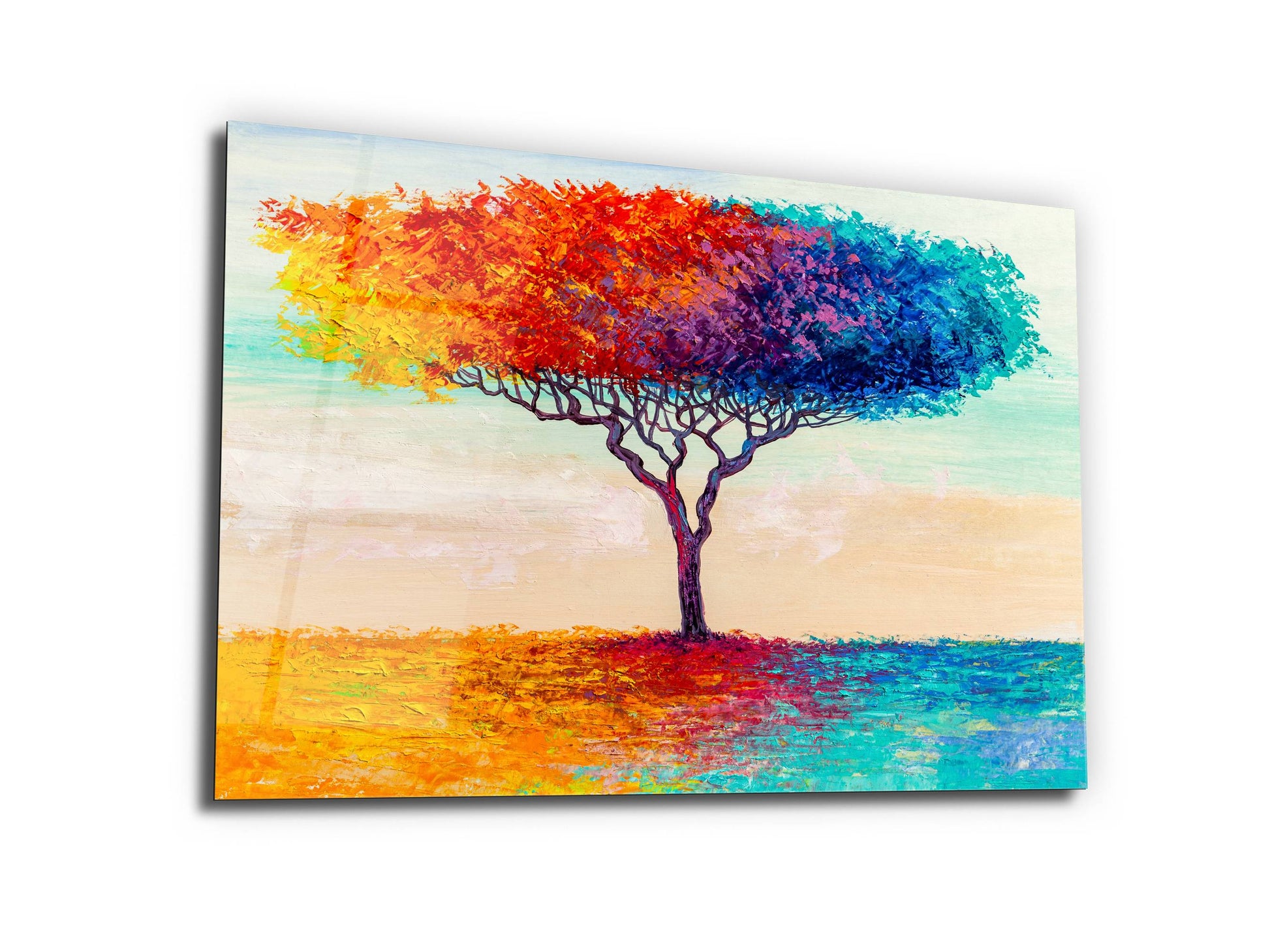 Soyut Renkli Ağaç Cam Tablo – Modern Dekoratif Ev ve Ofis Tablosu
